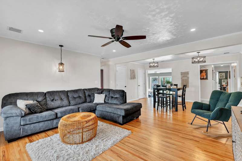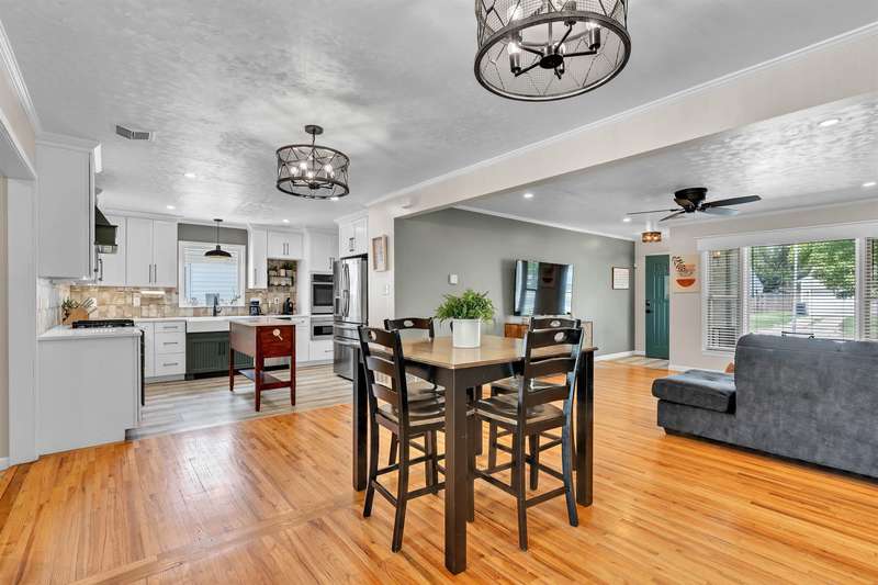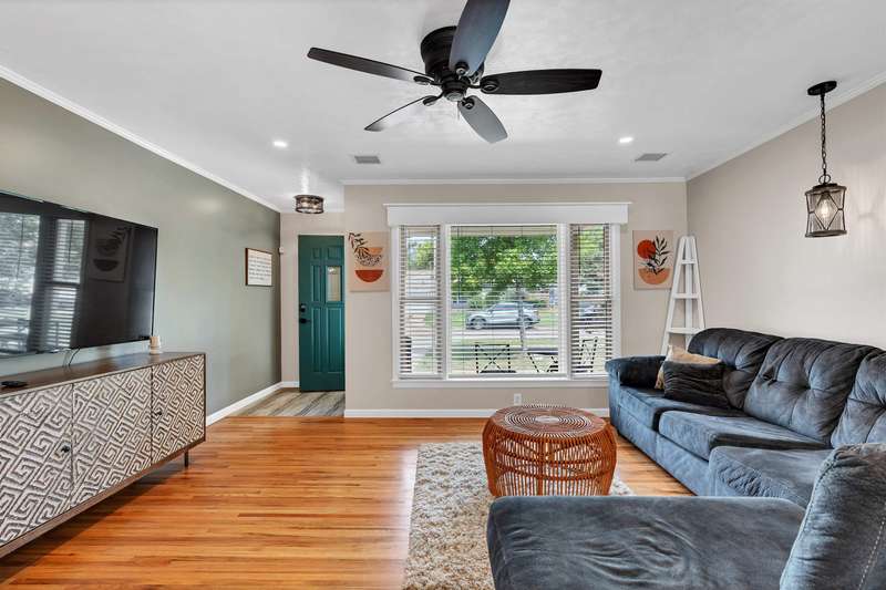 Back on the MarketNo Fault of the Seller! Don't miss this exciting opportunity to own a beautifully updated home on a charming, tree-lined street. This hidden gem offers 5 spacious bedrooms, 3 full bathrooms, and a 1-car garageperfect for flexible living and hosting. Step inside to discover original hardwood floors, an updated kitchen, and a thoughtful layout featuring two bedrooms and a full bath just off the main living area. Beyond the kitchen, you'll find three additional bedrooms, including a private primary suite with a full en-suite bathroom and nearby main floor laundry for added convenience. Enjoy the outdoors in the fully fenced backyard with a large storage building and a bright sunroom, ideal for plant lovers or relaxing all year long. Recent updates include a new roof (2022), upgraded electrical and plumbing, and stylish luxury vinyl tile flooring throughoutmaking this home truly move-in ready. Schedule your private tour todaythis one is a must-see!