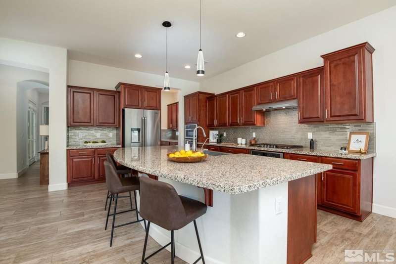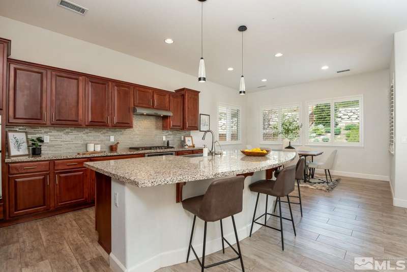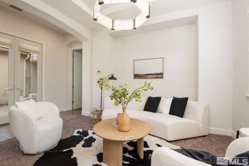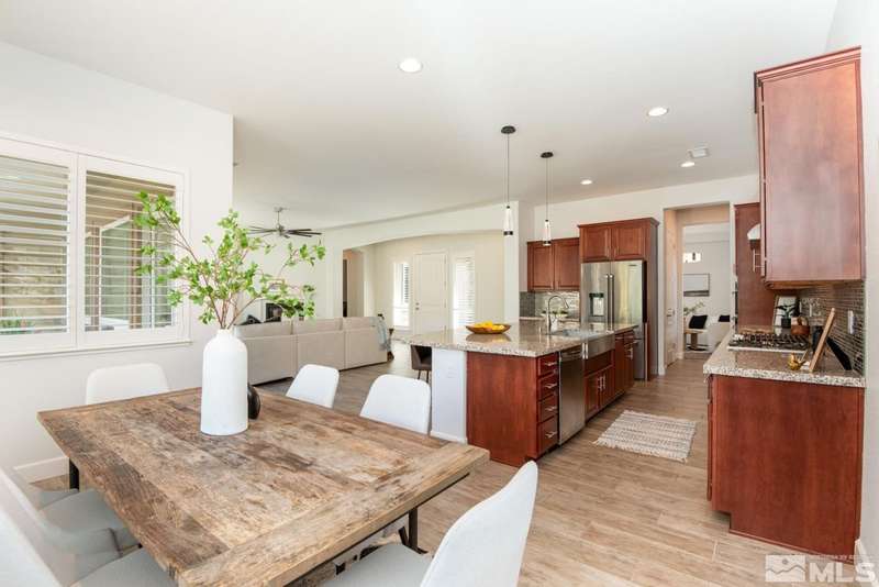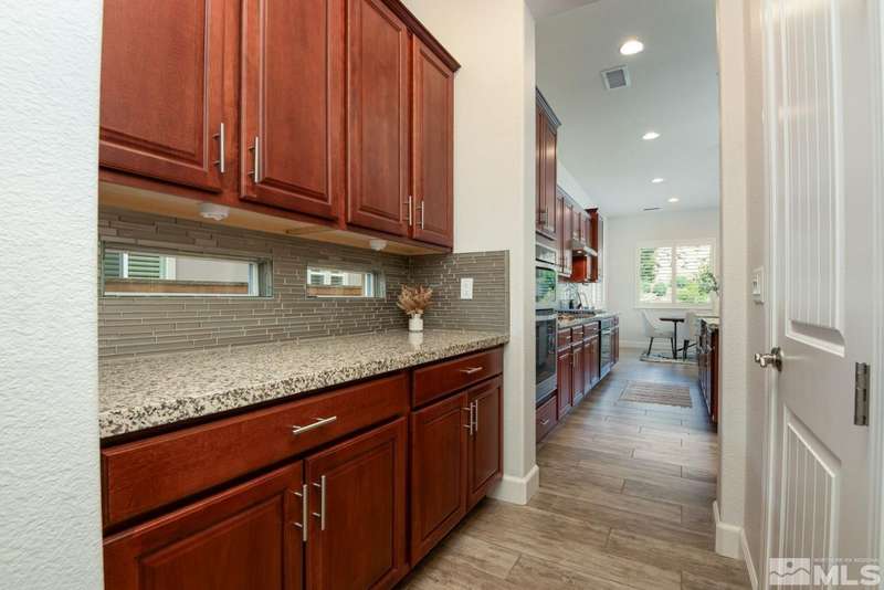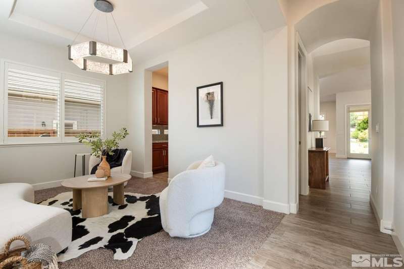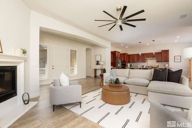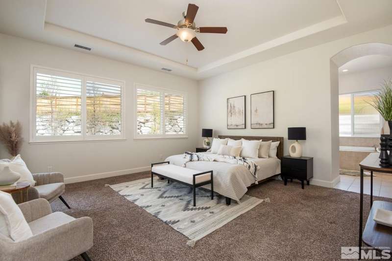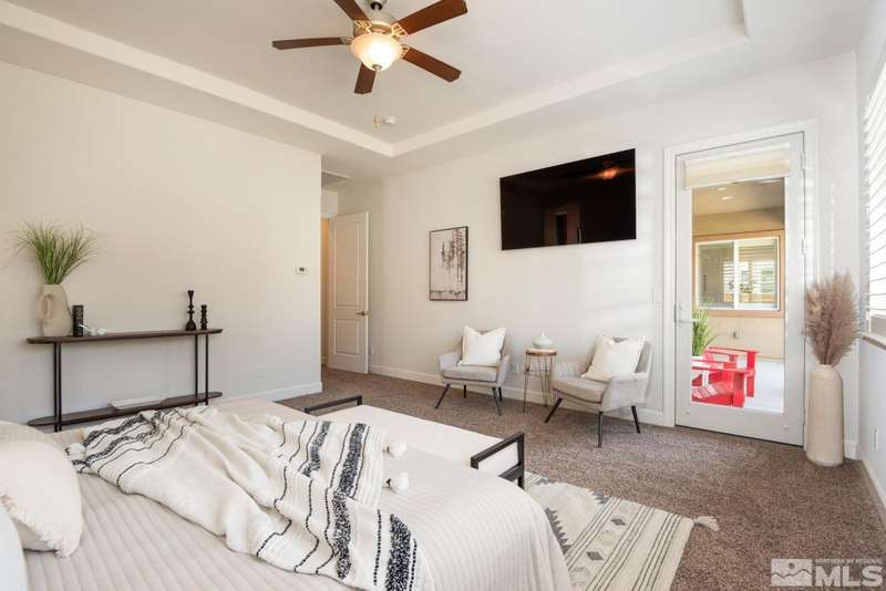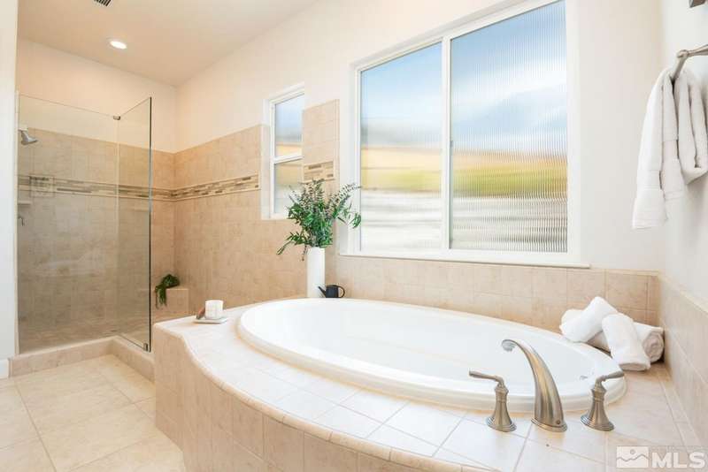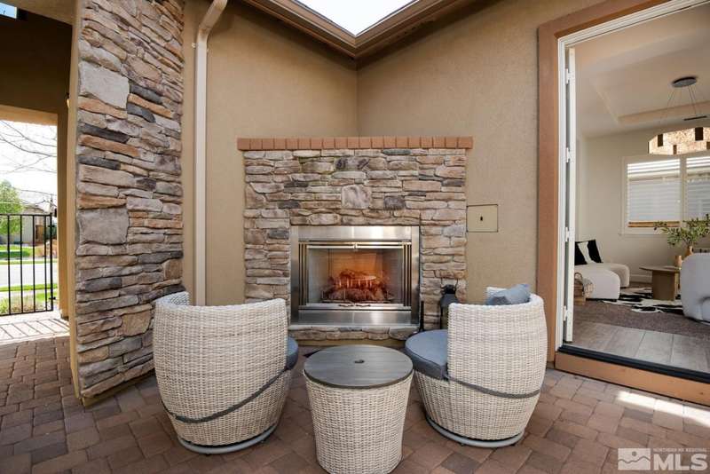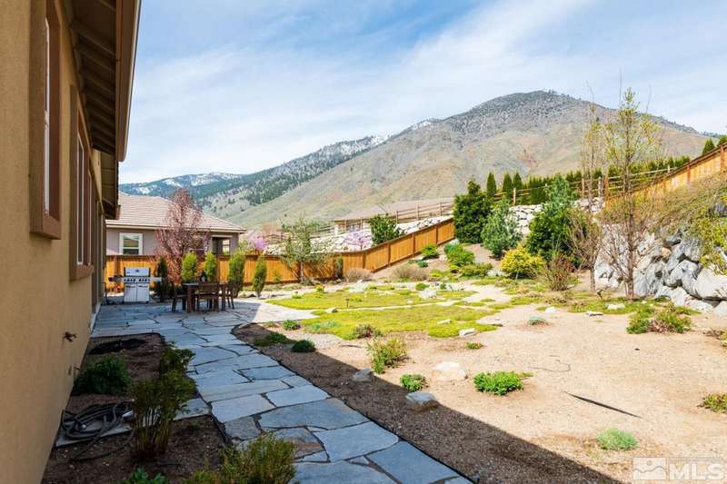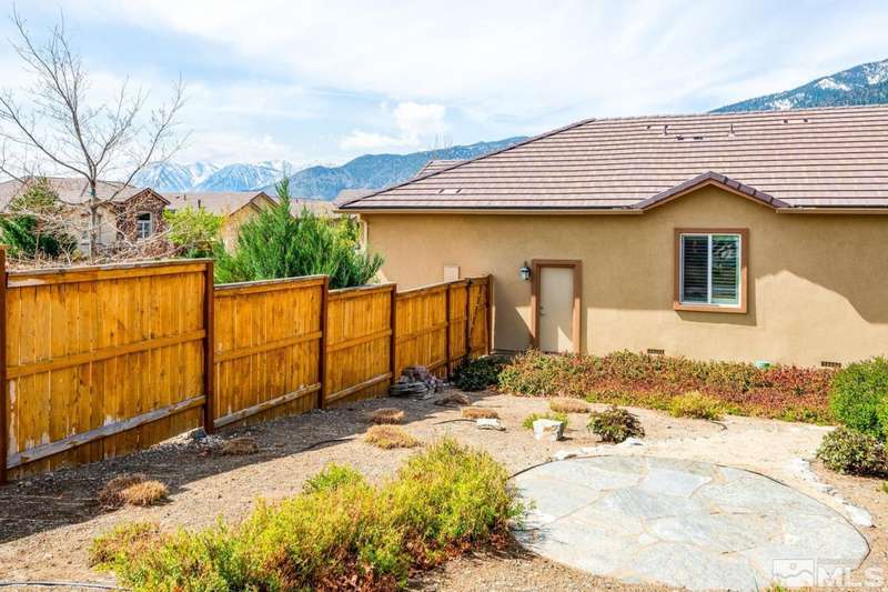 Welcome home to this beautifully built Legacy home at the Genoa Lakes Ranch Course in Genoa, NV. Here you can enjoy luxury amenities of living in the Carson Valley, just minutes from Lake Tahoe, world class entertainment, and Reno. This updated 3 bedroom, 3.5 bathroom home near the golf course is everything you've dreamed of, including views of Jobs Peak! Relax in the expansive primary suite with garden tub and walk in closet, or entertain in the chef's kitchen with many upgrades in this open floorplan!, This home is full of upgrades including double oven, large kitchen sink, indirect lighting, under counter lighting, closet organizers and a whole house water filtration system including reverse osmosis under the kitchen sink. Don't forget the outdoor fireplace in the courtyard, updated ceiling fans and lights! This HUGE lot adjoins a small piece of common area and backyard is spacious and private with views of the Sierra Nevada Mountain range.
