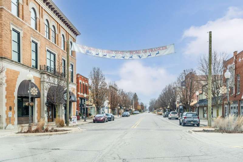This charming, like-new home sits on a spacious double lot just one block from historic downtown Three Oaks. Totally updated from top to bottom, featuring new siding, windows, roof, furnace, ON-DEMAND hot water, central air, and new 200 AMP ELECTRICAL. The inviting eat-in kitchen boasts all-new stainless-steel appliances. Situated on a spacious corner lot, the property includes a wonderful concrete patio perfect for outdoor gatherings and the DOUBLE LOT provides generous parking and entertaining areas for your guests. This prime location is an easy walk to restaurants, galleries, theaters, and unique shopping experiences. Plus, Lake Michigan beaches are just a short drive away.