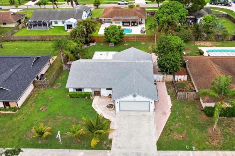 No HOA home offers 3 generous bedrooms and 1 den/flex room that easily becomes a 4th bedroom or home office, gym, game room, etc. SAVE BIG on insurance costs with a 2023 roof + FULL hurricane impact windows & doors. OVERSIZED lot with massive yard- fully fenced. Inside, an open and split floor plan provides room to spread out. Did we mention the upgraded floors, granite countertops, and garage door?Enjoy an extended driveway for your boat, trailer, or other toys. Walking distance to a beautiful park with swings, basketball hoops, and dog area. Go shopping with Target and Costco just 10 mins away. Royal Palm Beach offers 5 signature annual events and 15+ parks for biking, fishing, golf, picnics, concerts, and more. Welcome home!