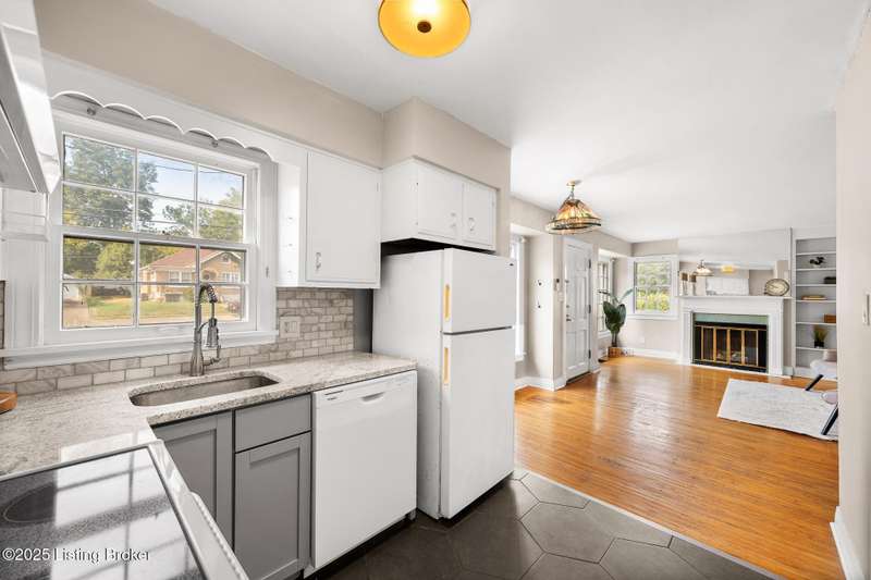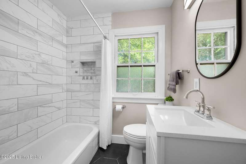 Welcome to this charming cape cod in desireable St. Matthews! Located on a quiet street in one of Louisville's most desired locations, this home has many cosmetic updates as well as new roof, furnace, and AC. The welcoming front porch is freshly painted and illuminated by new exterior lights fixures. Inside you'll find clean hardwood floors throughout the main living space. You'll want to snuggle up next to the cozy fireplace accented by built-in shelving and oodles of natural sunlight from the large, picturesque windows. The main living area offers an open concept for the living room, dining area and the updated kitchen. Here you'll find quartz countertops atop new lower cabinets, a marble backsplash and modern tile floors. There are two bedrooms with updated light fixtures and hardwood floors on the main floor. The full bathroom offers custom tile tub surround with marble tile accents, updated vanity and light fixtures, and modern tile floors that mirror the kitchen for continuity. The second floor offers an enormous living space that can be used as a primary bedroom, play area, or office...the possibilites are endless! 2 closets accent this space with plenty of room for additional storage in the accessible attic areas. The backyard is fully fenced, flat and offers a great space for entertainment complete with storage shed. Call today to view this amazing home!