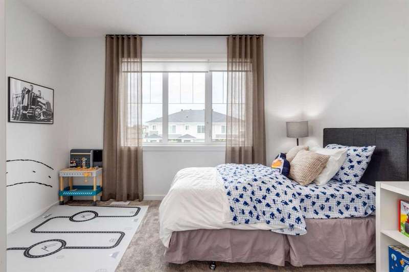 WHEN A HOUSE STARTS OUT AS A SHOWHOME, YOU NOTICE—THE DETAILS ARE SHARPER, THE FINISHES BOLDER. This Homes by Avi build carries the kind of features you rarely see offered together—deliberate, dramatic, and designed to impress. Now, instead of open house hours, it’s ready for its first owner, with possession at the END OF NOVEMBER. The main floor begins with an office that doesn’t apologize for being front and center. Framed in GLASS-PANEL WALLS and finished in a bold black palette with a COFFERED CEILING overhead, it’s designed to be on display—equal parts workspace and showpiece. From there, herringbone-pattern LUXURY VINYL PLANK flooring pulls you through the open plan: past the WATERFALL QUARTZ ISLAND and Silgranit sink in the kitchen, into a dining area that opens through a three-panel glass door to the 14’ x 10’ DECK with gas line. The living room centers on a FIREPLACE FEATURE WALL clad in vertical wood slats stained to match the dark kitchen cabinetry, dramatic and grounding all at once. Upstairs, the BONUS ROOM vaults high, finished with a wet bar and fridge so the space lives just as easily for movie marathons as it does for casual evenings in. The master bedroom takes luxury further: DUAL VANITIES frame a SOAKER TUB beneath a wide window, paired with a glass shower that feels more spa than standard. From there, the flow continues into a walk-in closet fitted with CUSTOM WOOD SYSTEMS and large enough for a central bench—then on to a laundry room finished with COUNTER, SINK, AND CABINETRY that look as considered as the rest of the home. Two more bedrooms, each with their own walk-in closet, and a full bath round out the level. The lower level is fully finished as a LEGAL BASEMENT SUITE, complete with its own kitchen, FULL APPLIANCE PACKAGE, laundry, and private entry. Independent systems—including a sub-panel and second furnace—make it practical and comfortable for multigenerational living, long-term guests, or rental income. This was never a standard build. A SPRINKLER SYSTEM, TANKLESS HOT WATER, 200-amp electrical service, GARAGE MAN DOOR, and AIR CONDITIONING confirm its showhome pedigree, while glass stair railings and designer finishes tie every floor together in one cohesive statement. Set on a SOUTH-FACING LOT in Walden, the location matches the home’s intent. JUST A BLOCK FROM WALDEN PONDS, PATHWAYS, AND PARKS, it gives you instant access to trails and greenspace, while schools, shopping, and dining sit minutes away. Quick routes via Macleod Trail and Stoney keep the rest of the city in easy reach. Showhome polish. Real-life readiness. This one is complete from top to bottom.