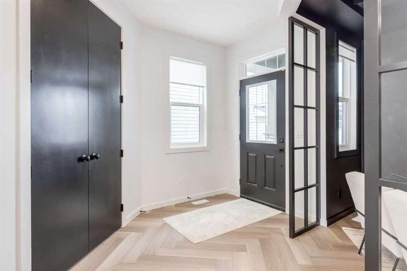 WHEN A HOUSE STARTS OUT AS A SHOWHOME, YOU NOTICE—THE DETAILS ARE SHARPER, THE FINISHES BOLDER. This Homes by Avi build carries the kind of features you rarely see offered together—deliberate, dramatic, and designed to impress. Now, instead of open house hours, it’s ready for its first owner, with possession at the END OF NOVEMBER. The main floor begins with an office that doesn’t apologize for being front and center. Framed in GLASS-PANEL WALLS and finished in a bold black palette with a COFFERED CEILING overhead, it’s designed to be on display—equal parts workspace and showpiece. From there, herringbone-pattern LUXURY VINYL PLANK flooring pulls you through the open plan: past the WATERFALL QUARTZ ISLAND and Silgranit sink in the kitchen, into a dining area that opens through a three-panel glass door to the 14’ x 10’ DECK with gas line. The living room centers on a FIREPLACE FEATURE WALL clad in vertical wood slats stained to match the dark kitchen cabinetry, dramatic and grounding all at once. Upstairs, the BONUS ROOM vaults high, finished with a wet bar and fridge so the space lives just as easily for movie marathons as it does for casual evenings in. The master bedroom takes luxury further: DUAL VANITIES frame a SOAKER TUB beneath a wide window, paired with a glass shower that feels more spa than standard. From there, the flow continues into a walk-in closet fitted with CUSTOM WOOD SYSTEMS and large enough for a central bench—then on to a laundry room finished with COUNTER, SINK, AND CABINETRY that look as considered as the rest of the home. Two more bedrooms, each with their own walk-in closet, and a full bath round out the level. The lower level is fully finished as a LEGAL BASEMENT SUITE, complete with its own kitchen, FULL APPLIANCE PACKAGE, laundry, and private entry. Independent systems—including a sub-panel and second furnace—make it practical and comfortable for multigenerational living, long-term guests, or rental income. This was never a standard build. A SPRINKLER SYSTEM, TANKLESS HOT WATER, 200-amp electrical service, GARAGE MAN DOOR, and AIR CONDITIONING confirm its showhome pedigree, while glass stair railings and designer finishes tie every floor together in one cohesive statement. Set on a SOUTH-FACING LOT in Walden, the location matches the home’s intent. JUST A BLOCK FROM WALDEN PONDS, PATHWAYS, AND PARKS, it gives you instant access to trails and greenspace, while schools, shopping, and dining sit minutes away. Quick routes via Macleod Trail and Stoney keep the rest of the city in easy reach. Showhome polish. Real-life readiness. This one is complete from top to bottom.