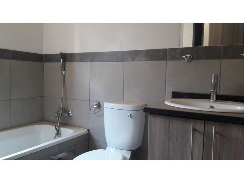 MODERN TWO BED APARTMENT - SAFE, QUIET AND SECURE This modern apartment has the following features: Modern open plan kitchen with undercounter oven and gas hob, granite tops and sufficient cupboard space as well as a breakfast nook. Undercounter space for a dishwasher and washing machine. Lovely lounge opening up to a balcony with a built-in braai. The main bedroom has it's own en-suite, built-in cupboards and it's rather nice and airy. The second bedroom complete with built-in cupboards and a separate bathroom. Apartment tiled throughout and easy to clean. There's a tandem undercover parking with a long berth, comfortably fitting 2 cars. 24 Hour Security Guard