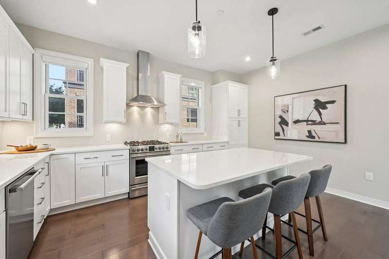 Sophisticated urban living meets modern design at 100 Normandy Avenue in the heart of downtown Columbus. This stunning 3-bedroom, 2.5-bath townhome showcases timeless brick architecture paired with sleek contemporary finishes, offering the perfect blend of character and luxury. Inside, expansive windows flood the open-concept living spaces with natural light, highlighting soaring ceilings, wide-plank flooring, and clean modern lines. The chef's kitchen is designed for both style and function, featuring premium appliances, quartz countertops, and a generous island that flows seamlessly into the dining and living areas?ideal for entertaining.The owner's suite offers a serene retreat with a spa-inspired bath, double vanity, and walk-in closet. The primary suite is perfectly positioned to take up the entire second floor complete with laundry, storage area as well as private balcony. Up to the third level, you will find two additional bedrooms which provide versatility for guests or a home office. A private rooftop terrace with pergola is a true highlight, delivering panoramic city views and the ultimate space for outdoor dining or evening relaxation.Enjoy secure gated entry, a two-car attached garage, and close access to the Short North, Arena District, and riverfront parks. Located in the architecturally pleasing Neighborhood Launch area, which comes with the benefit of a tax abatement. Also, the possibility of assuming the current loan with a rate of 3.375. With low-maintenance living, elegant design, and an unbeatable location, this residence is a rare opportunity to enjoy the best of Columbus in style!