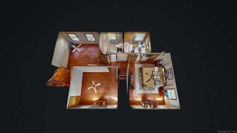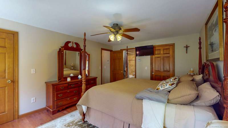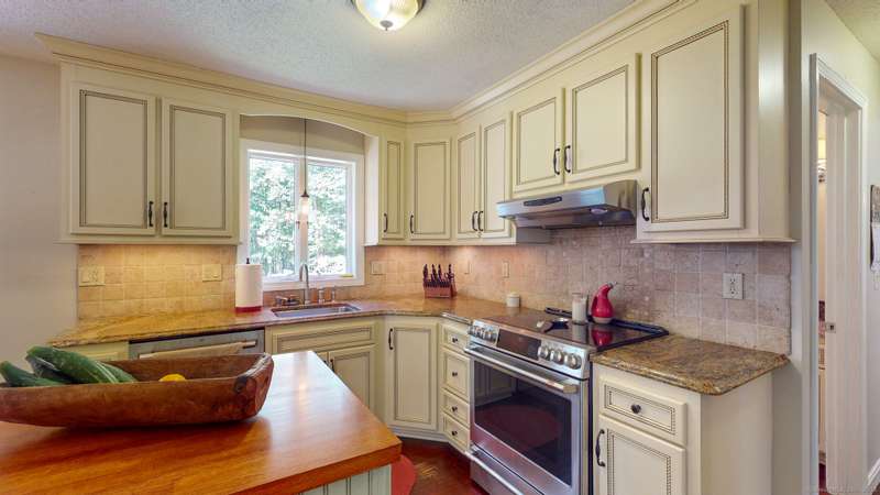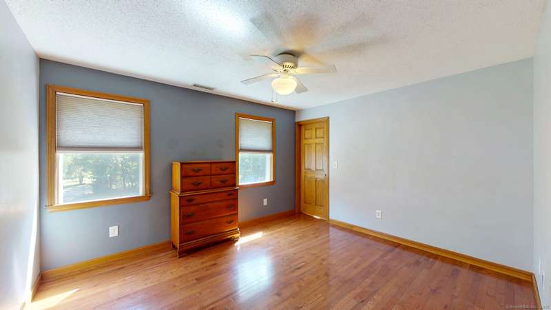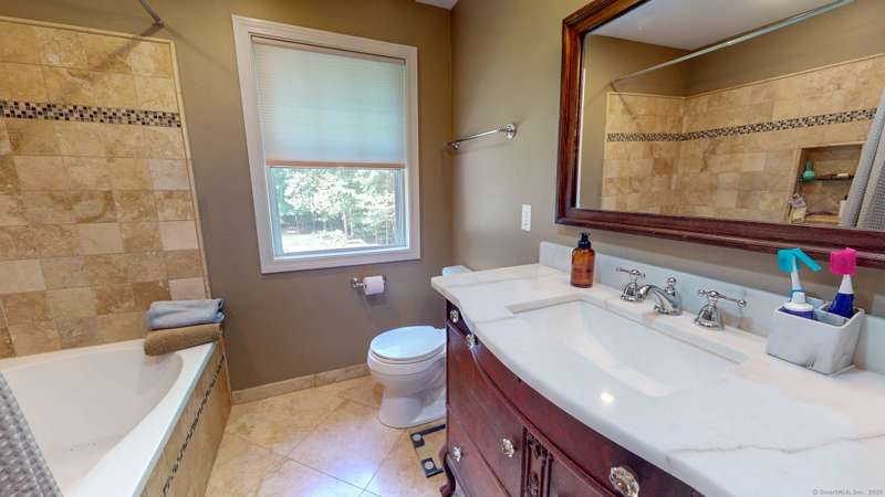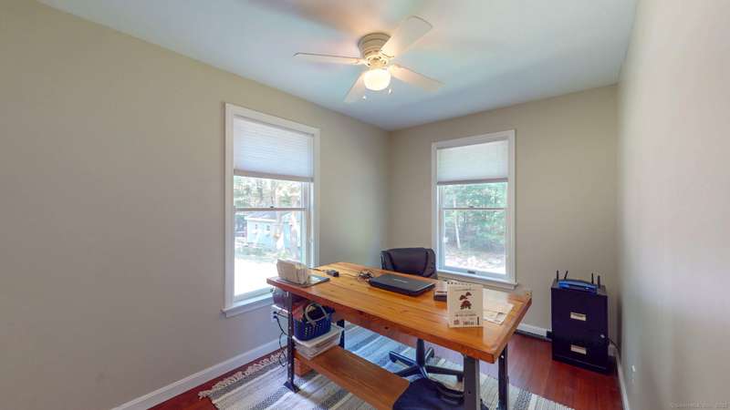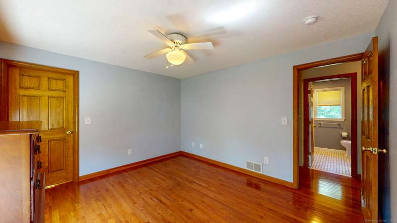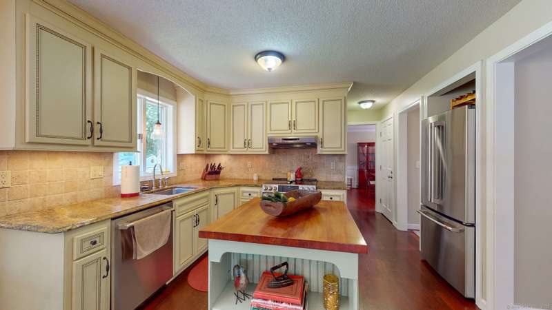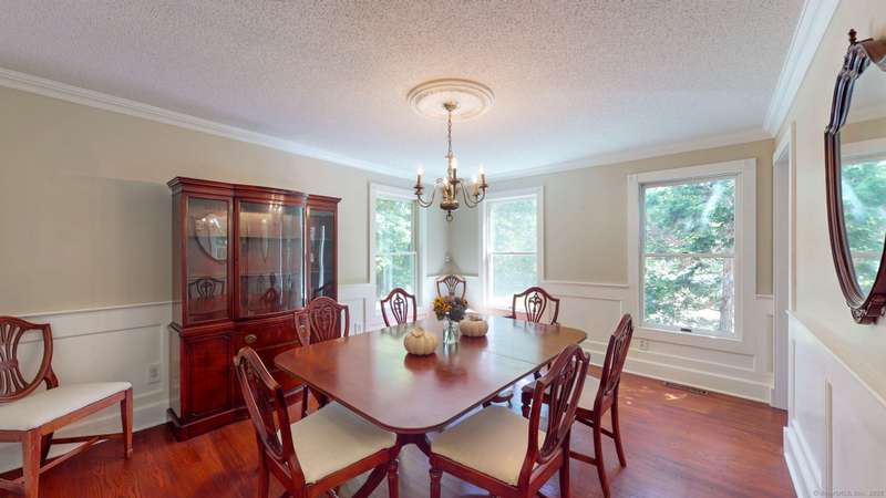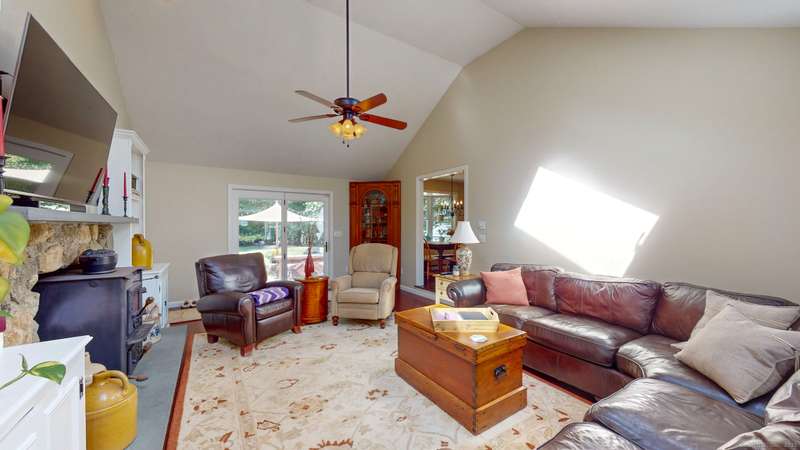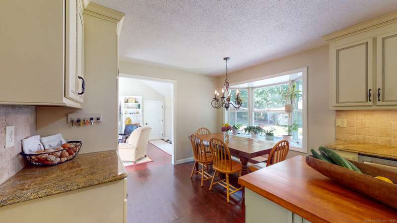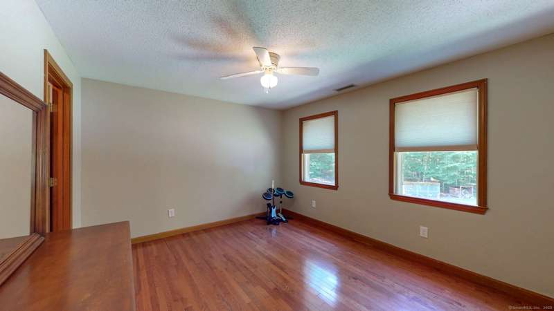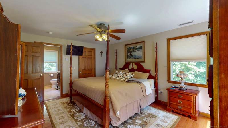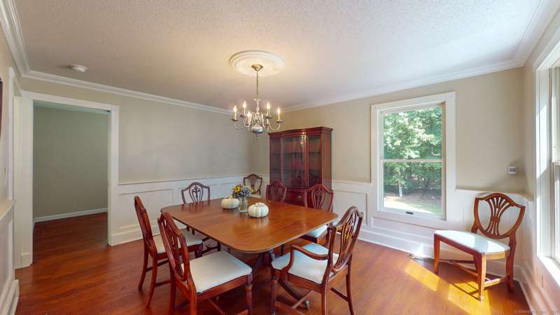 This is not your typical colonial! Set on 3.3 acres bordering state forest, this home offers both privacy and versatility. The recently remodeled eat-in kitchen is the heart of the home, while the family room-featuring skylights, a bow window perfect for plants or pets, and a wood-burning fireplace with insert-creates a warm and inviting space. The first floor also includes a formal living room, dining room, and office, giving you plenty of options for everyday living. Upstairs, each of the three bedrooms boasts a walk-in closet. The primary suite includes a full bath with air jet tub. Hardwood floors run throughout, and the lower level includes a finished room for even more flexibility. The outdoor space is truly exceptional-you may never want to go inside! Enjoy a 20x20 screened-in porch with ceiling fan and TV, a beautiful patio with koi pond, and an amazing firepit for gatherings. Gardeners will appreciate the fenced raised-bed garden, while hobbyists will love the detached garage