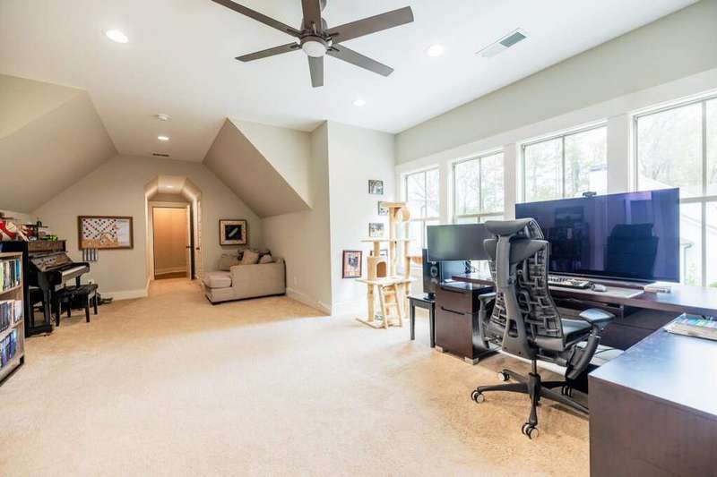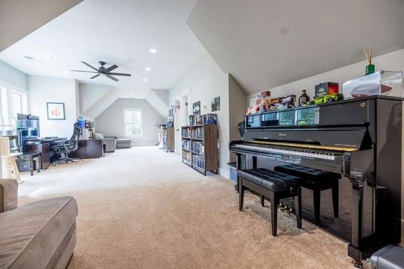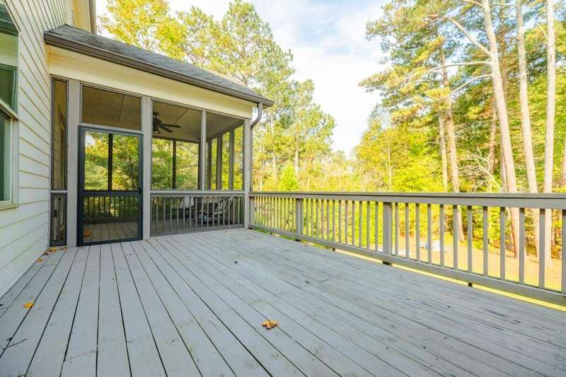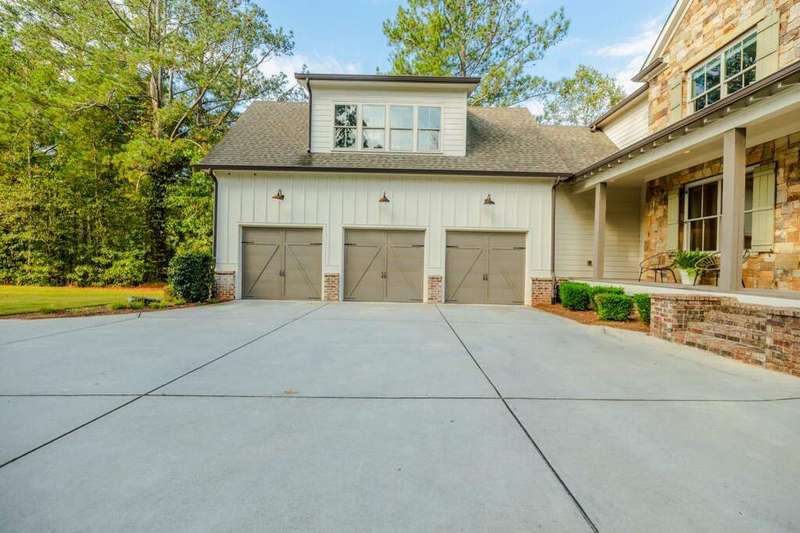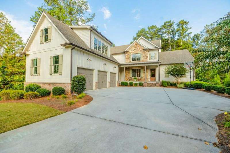 This 5-bedroom, 5.5-bath home offers a perfect balance of elegance and easy living. A welcoming front porch overlooks lush landscaping, setting the tone for the inviting interior where heart pine floors, beamed ceilings, and thoughtful upgrades create an atmosphere of warmth and refinement. The open-concept layout is ideal for both relaxed evenings and lively gatherings-enjoy the fireside family room with custom built-ins, entertain in the formal dining room, or prepare meals in the chef's kitchen with 6-burner gas range, double ovens, built-in microwave, and a generous island with seating. The main-level owner's suite is a serene retreat with vaulted ceilings, spa-like bath, and a custom walk-in closet. A second main-level suite offers flexibility for guests or a private home office. A well-planned mudroom and laundry with smart steamer add convenience to daily life. Upstairs, three additional bedrooms, two full baths, a large bonus/media room, and a finished suite with full bath provide abundant possibilities-au pair suit, hobby room, or a comfortable movie lounge. The unfinished daylight basement opens to a flat backyard-ready for gardening, entertaining, or the addition of a pool. Enjoy peaceful views from the expansive deck or screened porch. Additional features include a 3-car garage with fresh epoxy flooring, whole house generator, smart home technology, irrigation system, and integrated audio. Located minutes from all things Milton (Scottsdale Farms, Matildas Music Under the Pines, 7 Acre Barn & Grille, etc) his home offers both tranquility and convenience-perfect for those who appreciate timeless design, quality finishes, and room to live life their way.