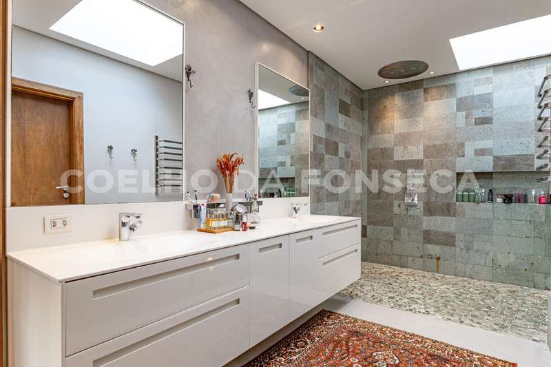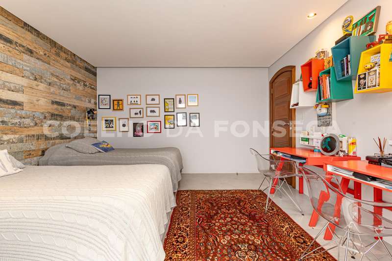 Piso térreo: Sala integrada ao living, produzindo um grande ambiente social com espaços amplos, ideal para fazer recepções. 2 lavabos, cozinha gourmet e uma cozinha interna. Piscina aquecida, escritório e brinquedoteca.