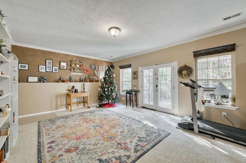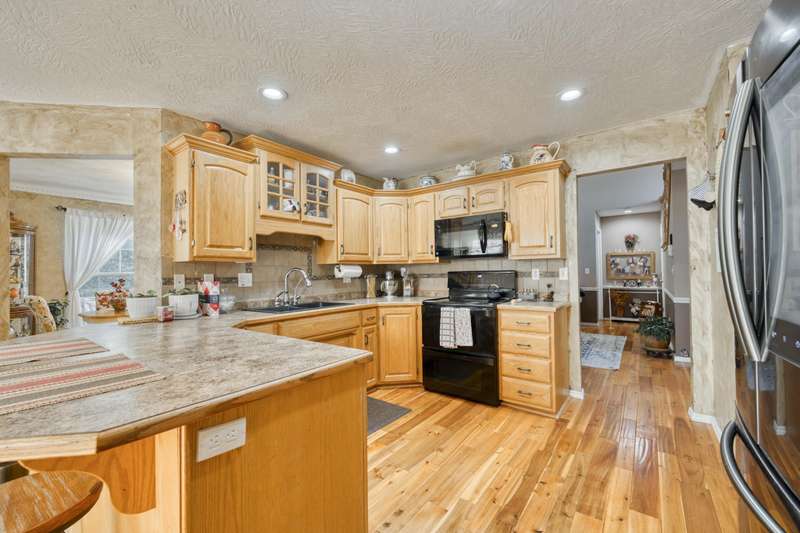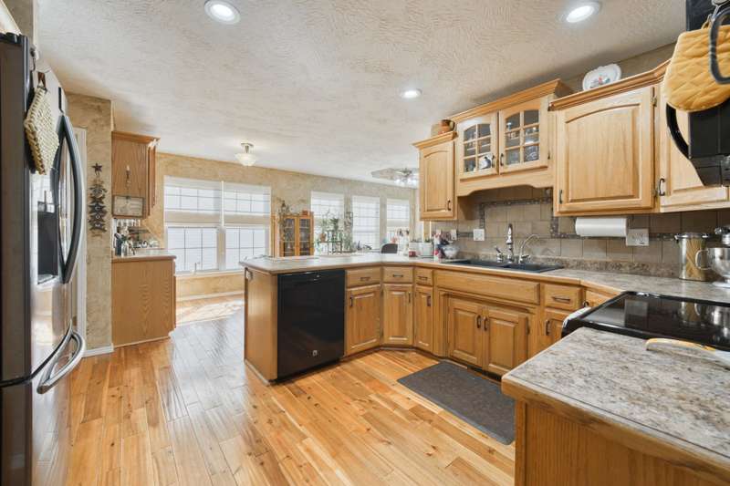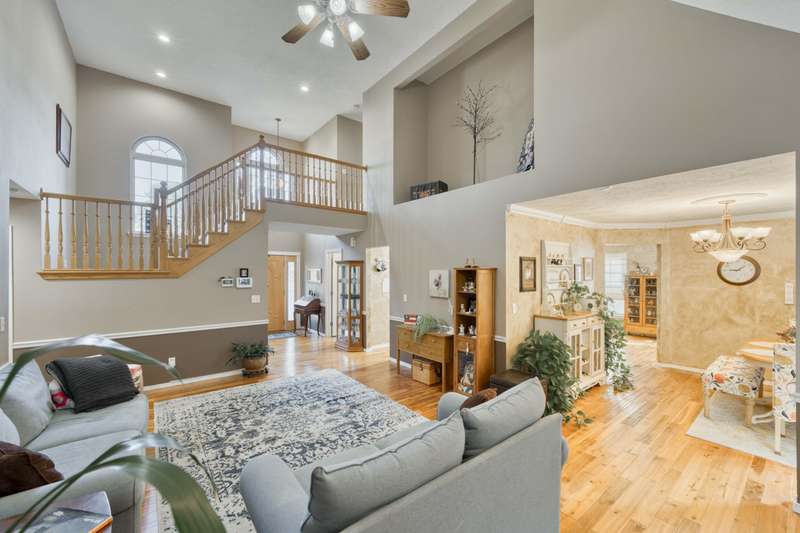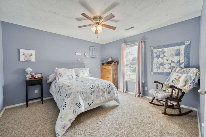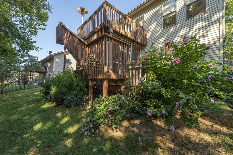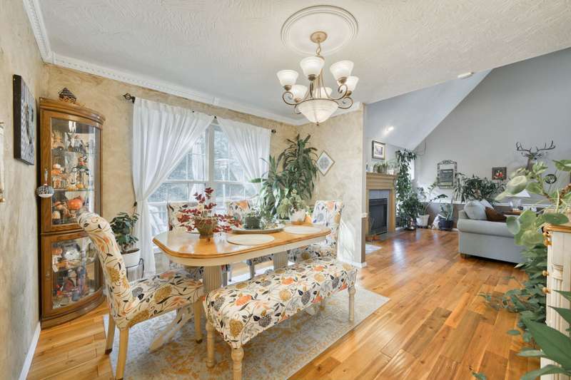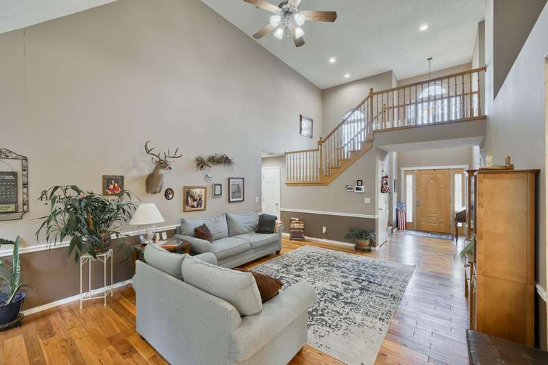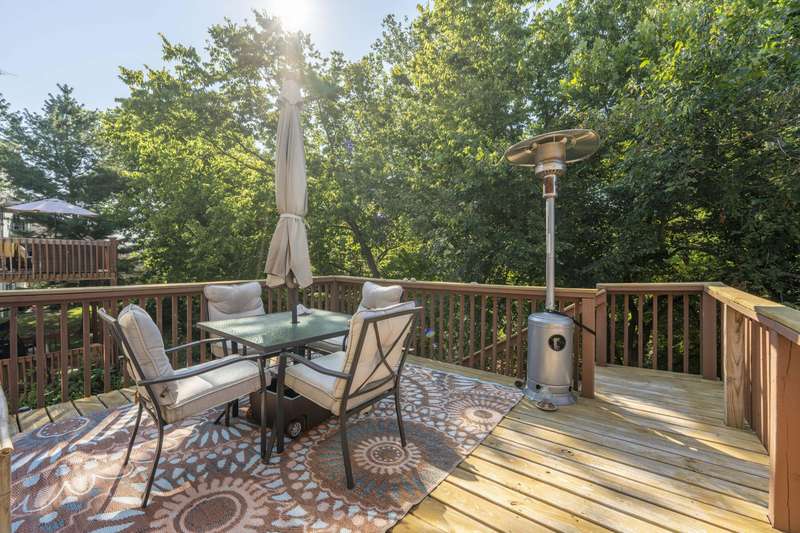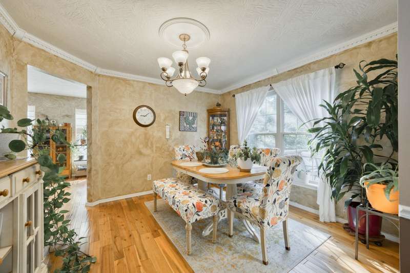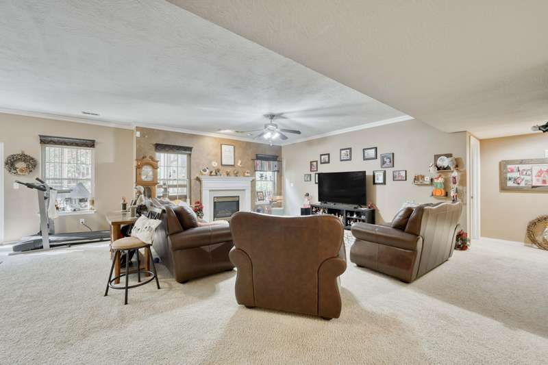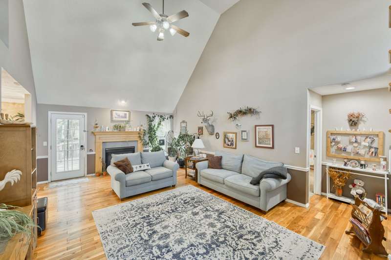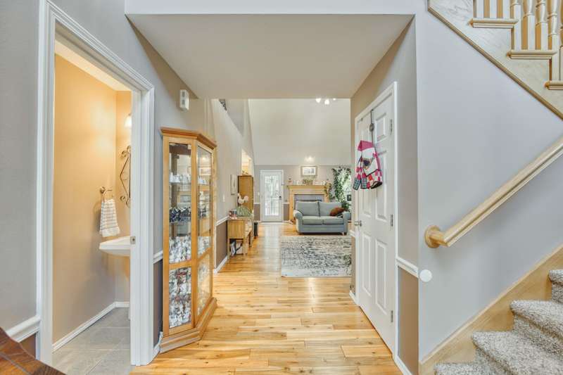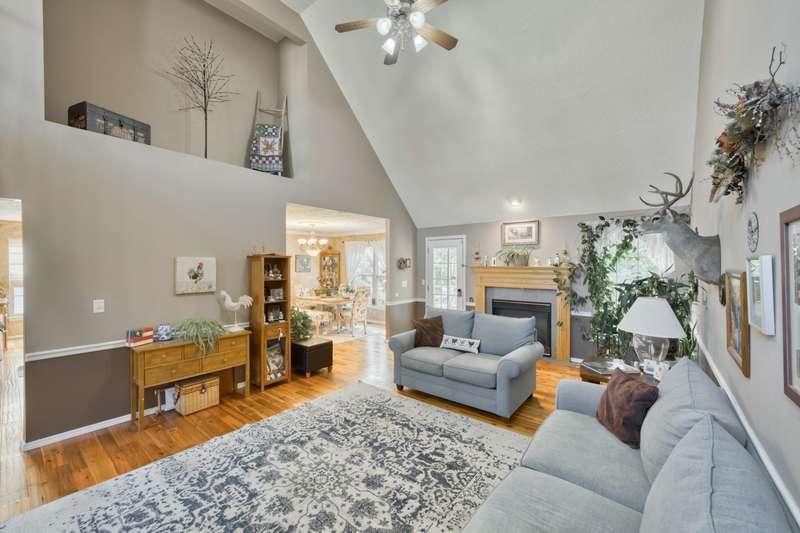 This exquisite story and a half residence, nestled in The Brookes subdivision, offers a blend of elegance and modern comfort. The interior boasts stunning 3/4 inch acacia wood floors throughout, complemented by soaring ceilings and a gas fireplace in the inviting living room, perfect for cozy evenings. A formal dining area provides an ideal setting for entertaining.The well-appointed kitchen features a convenient breakfast bar, a pantry cabinet, and an additional dining area. Retreat to the main level master suite, a luxurious sanctuary complete with a dual vanity, a spacious walk-in shower, a jetted tub, and a large walk-in closet.Upstairs, two generously sized bedrooms share a full bath with a dual vanity, providing comfort and privacy. The finished walkout basement expands the living space, offering a second living area with a fireplace, an additional bedroom, a full bath. It's also pre-wired for surround sound, perfect for home entertainment, and includes unfinished storage/shelter space.Outdoor living is a delight with two wood decks and a fenced yard that offers privacy and direct access to a serene wooded area and Ward Branch Creek. Enjoy the convenience of a prime location, with easy access to schools and nearby walking and biking trails.