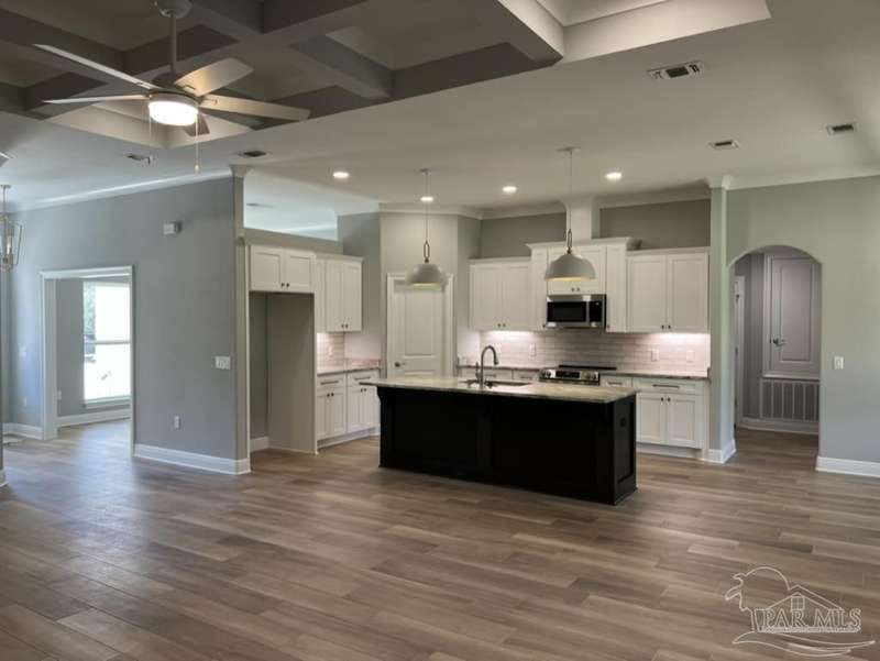 NEW Custom Built Home in Holley By The Sea,Enjoying all the Club House amenities including :Pools,Fully Equipped Gym,Tennis Courts,Waterfront Park & Deeded Access to Santa Rosa Sound .This luxurious 4 bed/3 bath Tri split floor plan is estimated to be complete late Oct 25 ~Desirable Corner Location within HBTS..with easy access to Navarre Beach, shopping and Hwy 98 to Hurlburt Field AFB.This Stunning Robbins Builders Custom Home~offers trend setting design & features~Greeted by a walk in foyer open to the Formal Dining and Office with double glass doors/sweeping through to your open floor plan ~Large Gourmet kitchen enjoying shaker cabinets with crown molding beautiful Quartz counter tops~Tiled Back splash~Under mount sink~S/S appliances~large walk in pantry ~center island with open flow to the breakfast nook and family room, wood plank staggered tile through the foyer, dining room, main living area, laundry and bathrooms. Large Master with trey ceiling & ceiling fan. Master bath offers a large tiled walk in shower /separate soaking tub~ double vanity with picture frame mirrors & huge walk in closet.Two additional bedrooms are a great size with ~ ceiling fans and Jack & Jill bathroom ~ step in tub/shower & WC with separate closet /vanity areas.Third additional bedroom is separate from the other rooms and would make a perfect guest/teen suite with its own bathroom and access out to the large covered porch.Laundry room & over sized 3 car garage ...ideal for the larger trucks and still plenty of room for all the outdoor toys. Home is situated on a large lot with grassed yard ~sprinkler system~ lawn pump and well with digital programmable timer for easy care. TAEXX in wall pest control system~ Fabric Shield Hurricane protection and dimensional shingle roof for lower insurance premium. Upgrades include crown molding, recessed lighting ,framed mirrors, deluxe lighting package,50 Gallon water heater, garage door remotes, attic drop down stairs~ to name a few....Call today