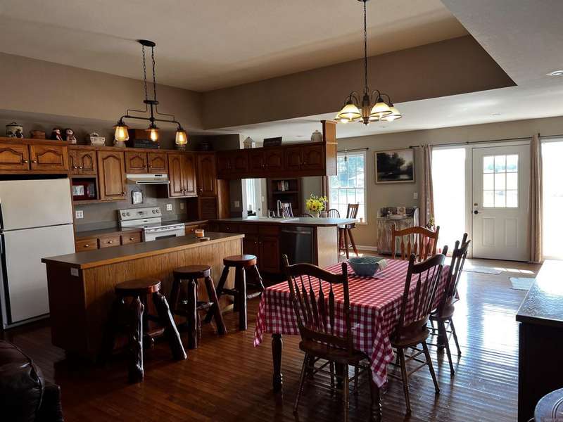 3 bedroom Country home with open floor plan near Heber Springs, on 5.4 acres, watch the sun set on your large covered porch or watch the falling stars if you want to sit deep into the night and watch the sunrise on your back patio while drinking your morning coffee, fenced on 3 sides -90 percent cleared - good grass perfect for a horse or couple of cows or make yourself a large garden. Large mature trees in the yard and a storm cellar for you and your dogs if needed - this home has everything you need to live a quiet peaceful life, 30 x 40 red iron metal shop with power two over sized garage doors