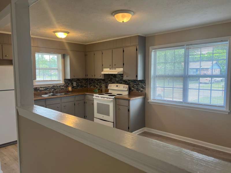 BACK ON THE MARKET AGAIN! No fault of seller again. Don't miss this deal! Priced to sell. Many updates in this step-saving one level! Luxury Vinyl Plank floors in bathrooms and laundry room. Laminate flooring in all other rooms. Kitchen cabinets painted grey, tile backsplash added. Kitchen opens to great room. Bathrooms configured like a jack & Jill bath. Roof NEW this year and new windows. New deck at side door. Storage area in back corner beside deck. Don't miss this charming and affordable home!