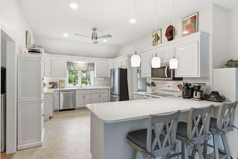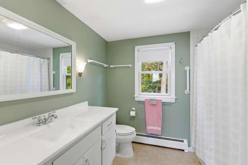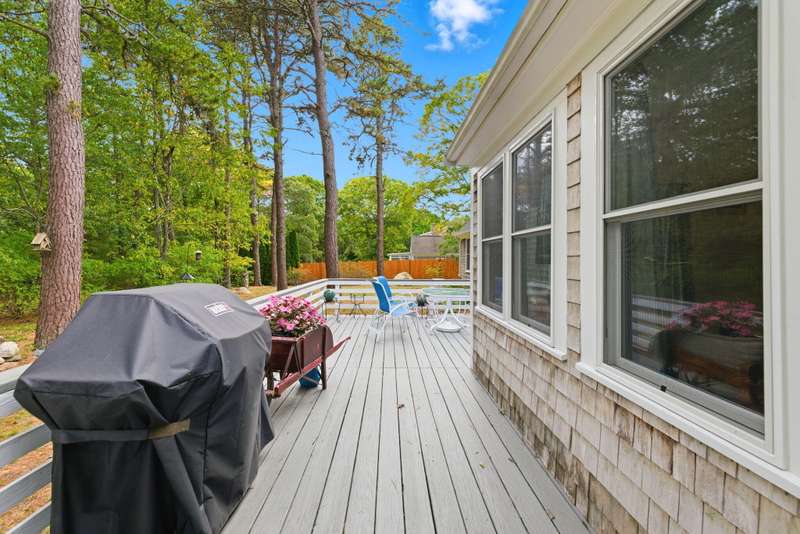 This well cared for home nestled in an established neighborhood in West Falmouth is just one mile from the sugar sand and sunsets at Old Silver Beach. Discerning buyers will appreciate the renovated kitchen with vaulted ceiling, open to a family room, inviting you outdoors to a generous deck and level backyard for entertaining and recreation. The main floor continues to the living room with wood burning fireplace for cooler months, first floor primary with renovated en-suite bathroom, home office or formal dining room, mudroom entry, laundry, and half bath. Upstairs, two bedrooms and full bath. Gleaming hardwood floors, interior and exterior painting (2019-2025), new gas boiler and water heater (2024), whole house generator (2023), updated bathrooms (2021) all windows, slider and garage door replaced (2019) just to name a few improvements. Immaculate one car garage, full basement and shed offer storage and convenience. Daily Brew, Epic Oyster, Old Main Mercantile, Bucatino's, Chappaquo