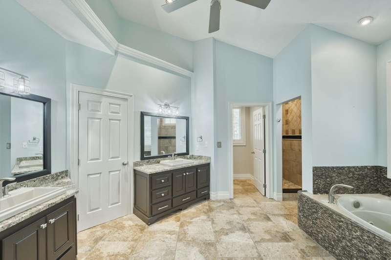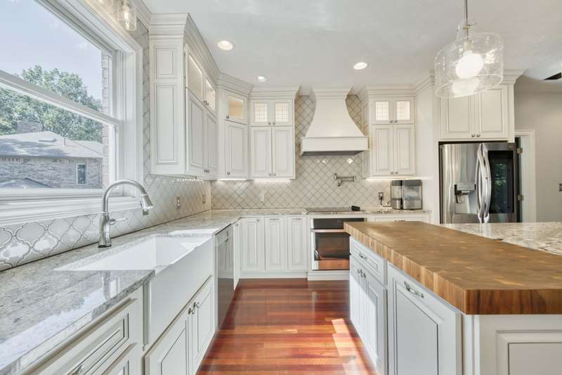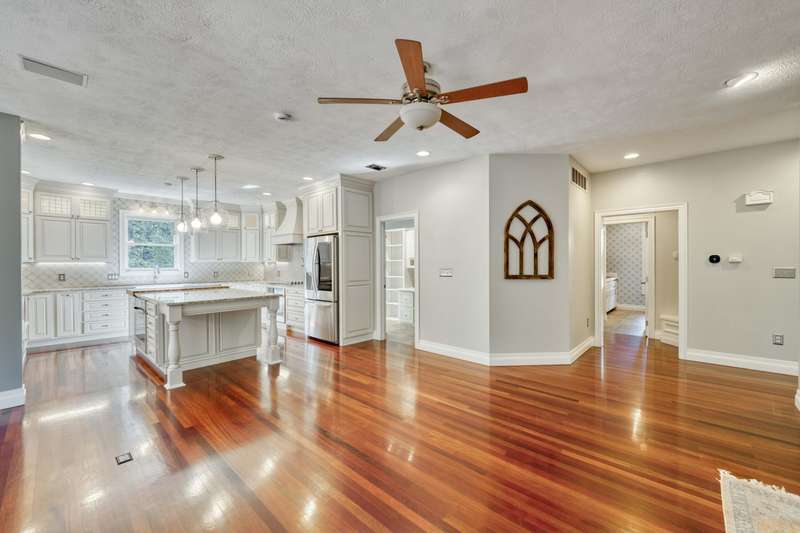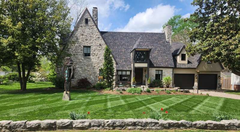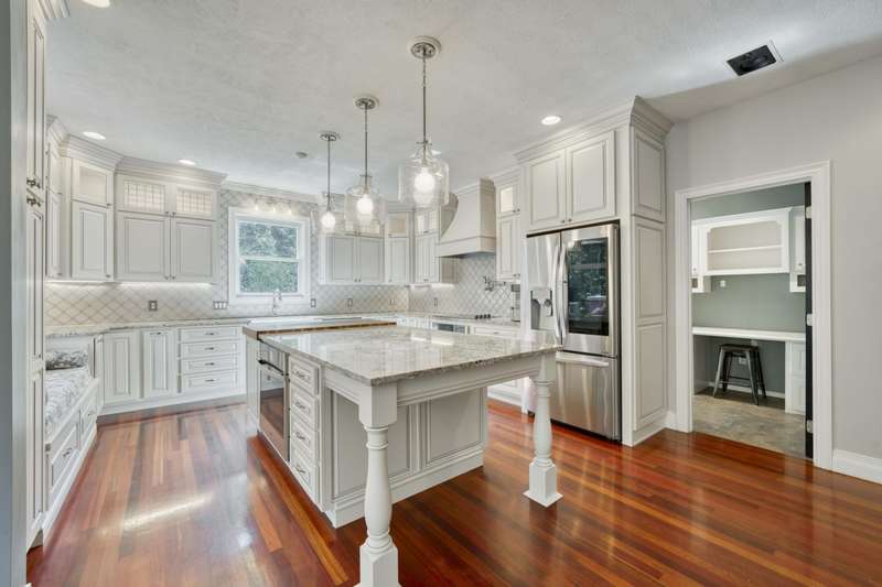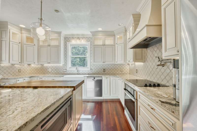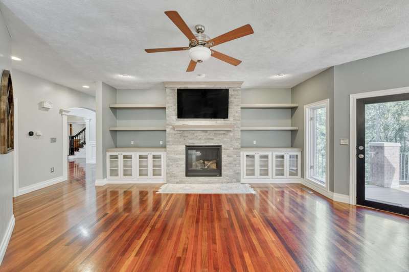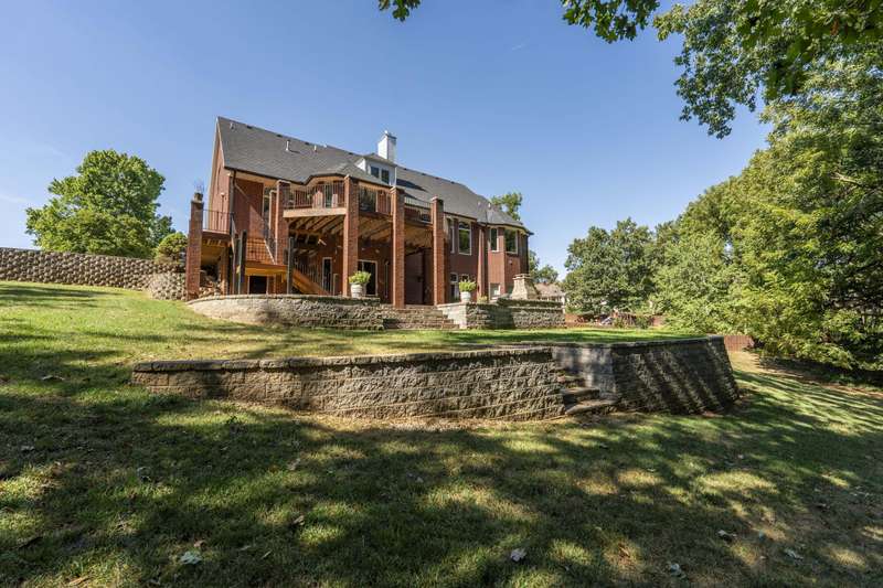5100 S. Bellhurst Ct., Springfield, MO. - Situated on a gorgeous 1 acre lot with mature trees, this stately two story 5 bedroom 3-1/2 bath home with finished walkout basement offers wonderful indoor and outdoor living spaces. Extensive remodel and updates include: totally new kitchen in 2020 includes new cabinets, granite and appliances!!! New roof in 2020 and new exterior deck in 2023! Main level includes study with fireplace, primary suite, formal living room with fireplace and large windows to enjoy the views, kitchen/hearth room with unbelievable walk-in pantry, formal dining room and side entry 3 car garage. Upstairs offers 2 bedrooms with jack-n-Jill bath plus bonus playroom area. The lower level features another family room and recreation room with wet bar and two additional bedrooms. The home includes great storage areas, outdoor patio with an additional fireplace, partial inground sprinkler system and abundance of walk-in closets. Truly a fantastic family home in a quiet cul-de-sac location. Kickapoo School District.
