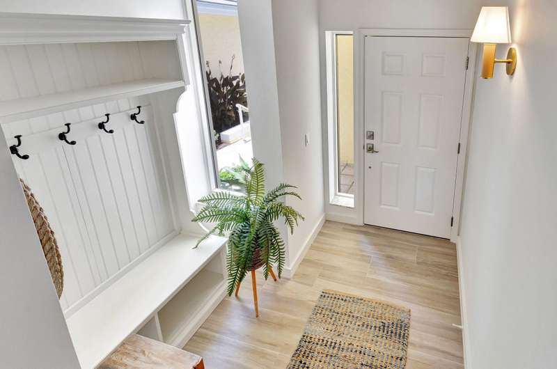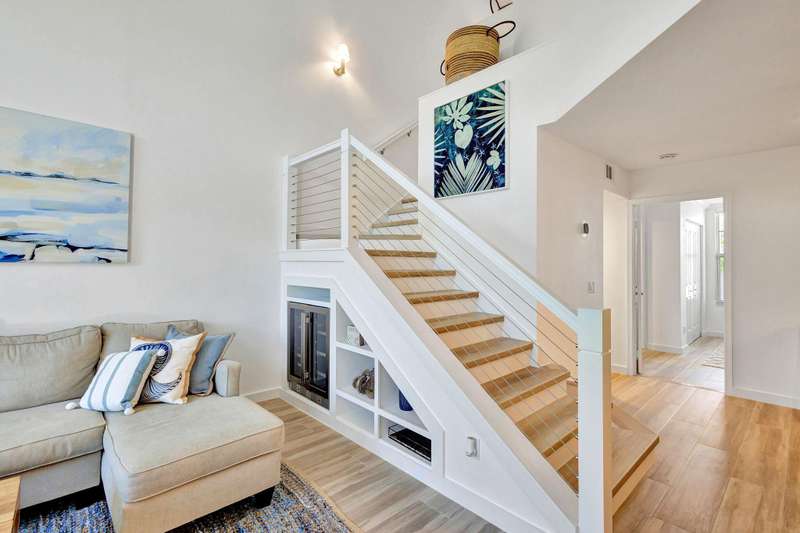 Newly renovated condominium ideally located just 300 feet from the beach within a secure gated community. This residence features 2bedrooms, 2 bathrooms, and a 1-car garage. Recent upgrades encompass a kitchen with granite countertops and stainless steel appliances, contemporary bathrooms, new flooring, paint, fixtures, and impact windows throughout. The expansive great room highlights a shiplap accent wall and a modern stair railing with a built-in wine cooler beneath. The spacious master bedroom suite includes a loft, a stunning bathroom, and a walk-in closet offering ocean views. Sea Colony amenities feature tennis and pickleball courts, a clubhouse with a pool, hot tub, pool deck, and gym, as well as private gated beach access. Conveniently situated near restaurants and shops.