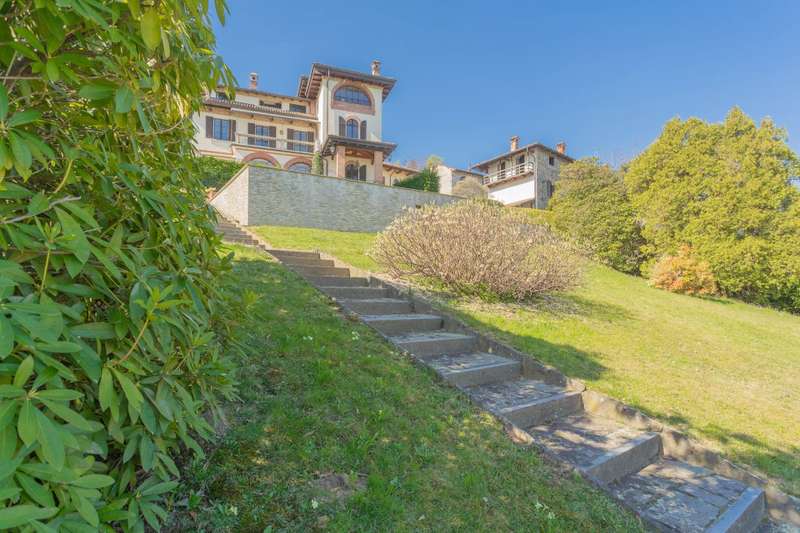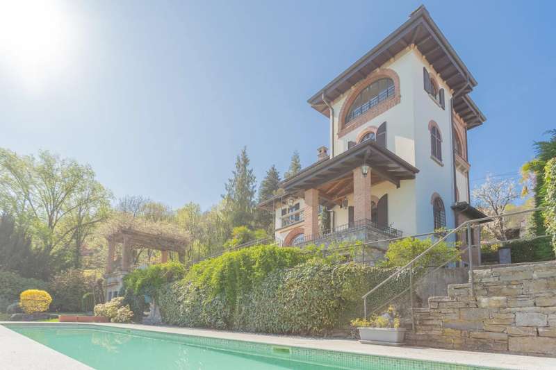 Luxurious Art Nouveau villa in the hills of Lake Maggiore. The historic villa is surrounded by a 10,000 sqm park with a swimming pool and an annexe. From the property one can appreciate a beautiful view of the lake and its mountains. The manor house underwent a complete renovation 12 years ago, and a few years later a beautiful 18.5 x 3.5 metre swimming pool with counter-current swimming was created. The villa measures approximately 290sqm plus the annex of approximately 210sqm. There are three floors of the villa for sale in addition to the basement. On the main floor there is a large living room with a fireplace, an adjoining room, the eat-in kitchen with a central island that accesses the covered portico, and a guest bathroom. The first floor houses a master bedroom with bathroom and wardrobe, and a single bedroom. On this floor from both bedrooms there is access to the terrace from which one can appreciate the beauty of the park and the view of Lake Maggiore. Continuing on to the second floor there are two bedrooms with another bathroom, and a small open space overlooking the staircase. In the basement there is the cellar used as a laundry room and the boiler room. Outside there is also the technical room. The outbuilding is completely in need of renovation, it is located to the side of the property and is characterised by the pleasant rustic image of the buildings of that period. On the ground floor it has a kitchen, living room with fireplace and a toilet. On the first floor two rooms and a bathroom. On the second floor a bedroom and a bathroom and in the attic an interesting space for another bedroom. The property is on three floors above ground, including the attic turret. The park is planted with typical Lake Maggiore essences such as azaleas, hydrangeas and roses. It has a structure like the characteristic Italian gardens, with clearly delimited areas. Close to the border, this elegant property for sale is crossed by a stream that gives it harmony and peace. This is an ideal property for those who like to have an oasis of peace and tranquillity, but at the same time can reach Stresa in a few minutes. In fact, the centre of the famous town is only two kilometres away. Once reached, one can choose a pleasant restaurant or bar to enjoy an aperitif by the lake. It is also very pleasant to take a walk along the lakefront where you can admire the three Borromeo islands. They can be visited from spring to autumn. Particularly recommended is a visit to Isola Bella where you can enter the palace and its wonderful gardens.
