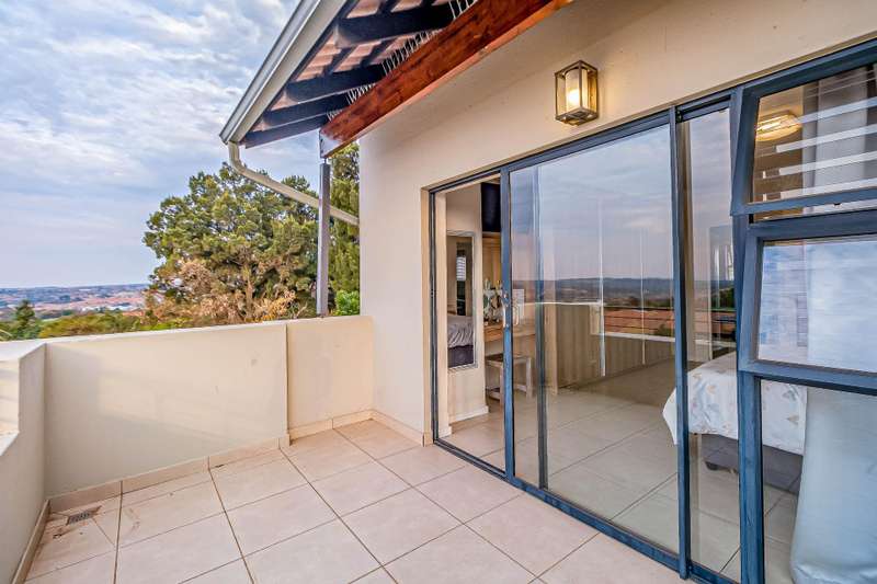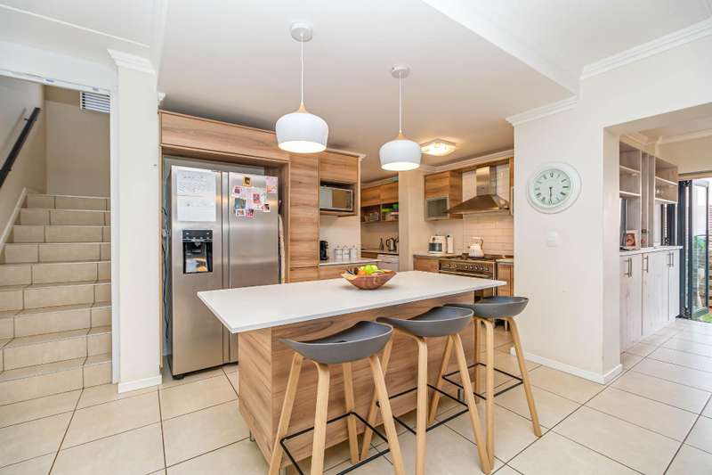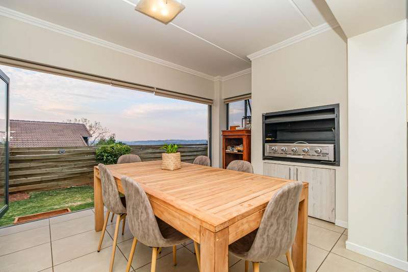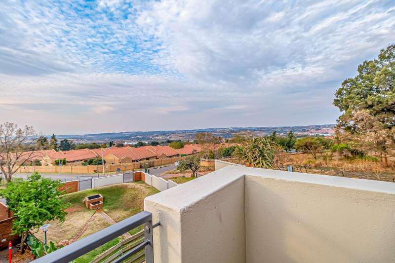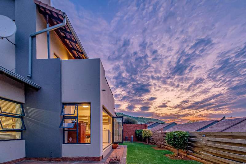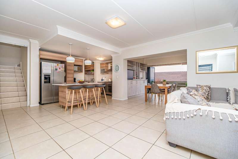 Situated in a sought-after, well-managed complex in Amorosa, this immaculate home occupies a desirable corner stand, offering extra privacy and beautiful views. The property features a double garage with direct access into the home, as well as additional parking space for guests right in front of the unit. Inside, you are welcomed by an open-plan lounge and dining area filled with natural light. The enclosed patio, fitted with stacking doors and roller blinds, creates the perfect indoor-outdoor flow leading to the private garden. The modern kitchen boasts ample cupboard space, a SMEG gas oven and stove, and a separate scullery with room for three appliances. A guest loo is conveniently located on the lower level. Upstairs, a landing area with built-in cupboards provides extra storage. Two generously sized bedrooms share a full bathroom, while the spacious main bedroom offers built-in cupboards, a fitted dressing table, a luxurious full en-suite bathroom with double vanity, and a private balcony with lovely views. Additional features include modern finishes throughout and fitted blinds in most rooms, making this home move-in ready. LEVIES BREAKDOWN: LEVY R1436 RESERVE FUND R1231.50 SECURITY R667 INSURANCE R9.73 CSOS R37.16 GARDEN PQ R132.53 COMMOM GARDEN R278.87 FIRE EXTINGUISHERS R57.50 TOTAL R3 852.73