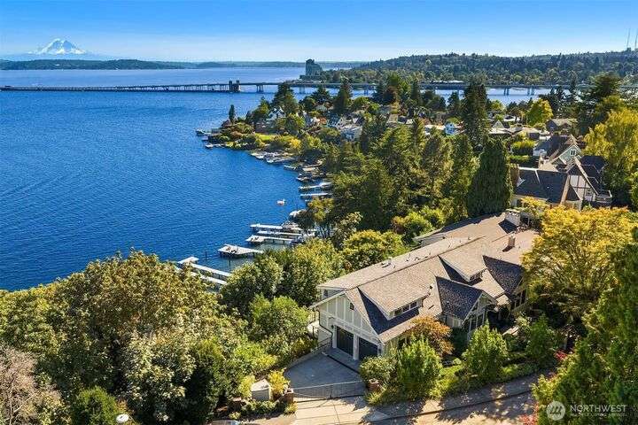 Welcome to Winslow Cottage. A rare opportunity to own one of the most coveted views in Seattle. Sited above Lake Washington with unobstructed views of the lake, Mt Rainier, the Cascades and more, sits a completely restored 1911 English Tudor. Lovingly curated and reimagined for today’s lifestyle. Sun drenched rooms with a deck running the length of house providing al fresco dining at its finest. Indoor & outdoor spaces meld seamlessly. Spectacular Great Room encompasses the chef's kitchen with professional appliances adjacent to inviting dining and entertaining areas. A luxurious primary suite and 2 additional bedrooms plus reading room, laundry and more on the upper level. Media room, office and guest quarters on the lake view lower level.
