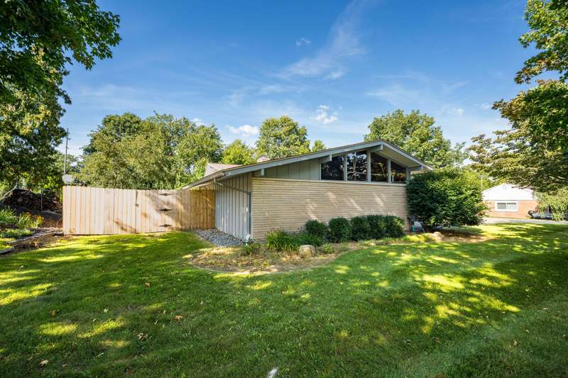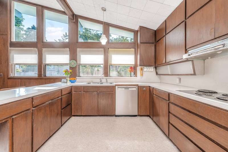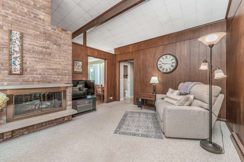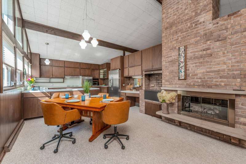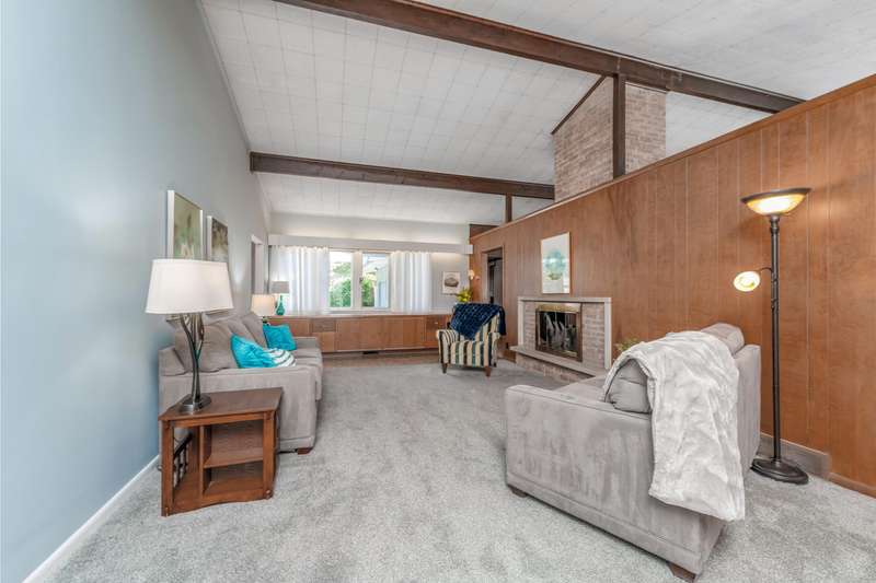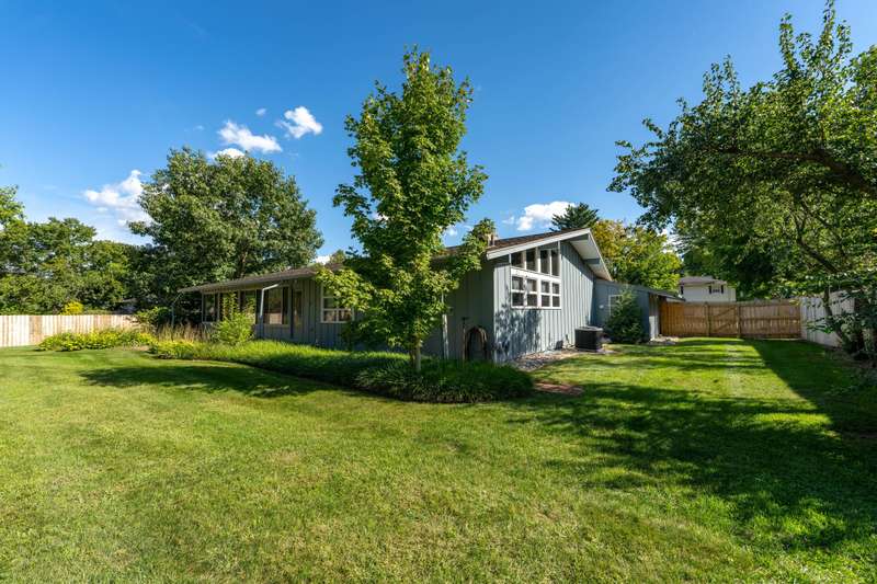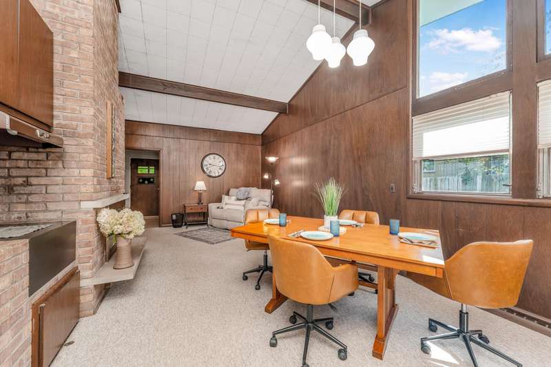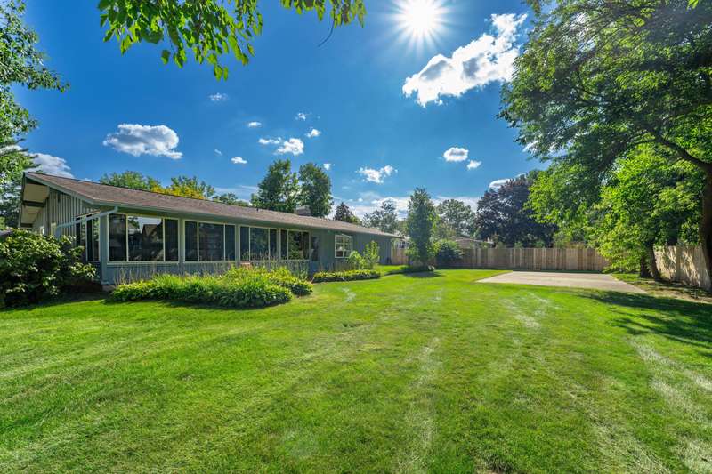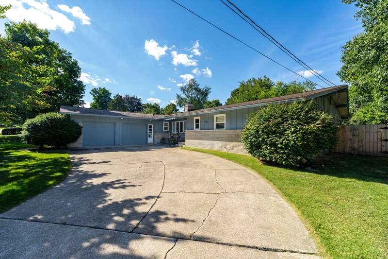 Truly a fabulous, rare find in this sharp, mid-century ranch home in Portage. A few updates will turn this stylish, roomy home into a 'modern' classic. You'll appreciate the huge spaces & the vaulted ceilings throughout the kitchen, hearth room, DR, and FLR w/ a double-sided brick fireplace. The kitchen has 18+ linear ft of counter space and enough cabinets & cupboards for the best of aspiring chefs & entertainers. Loads of daylight wash through picturesque windows in all of these spaces. The expansive 3 season porch is the perfect landing spot for early morning coffee or sunset conversation, & looks out into a wonderful back yard w/ a 1yr old privacy fence & a sports concrete pad! Primary suite has private, double French doors to the porch & dual closets adjacent to a well-appointed bath. 2 addnl bdrms share a newly remodeled 2nd full bath. A 1/2 bath, 1st floor stacked laundry & shoot, basement w/ full laundry & utility sink, and ample built-ins add to this home's unique appeal.