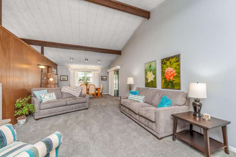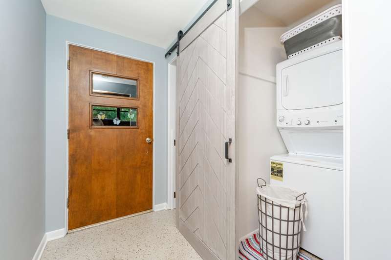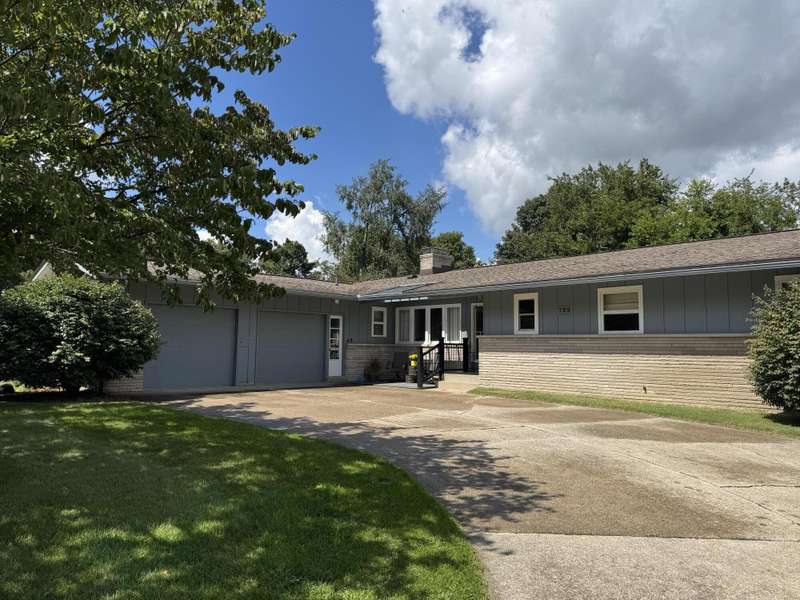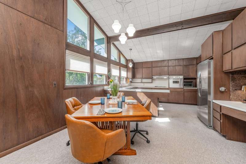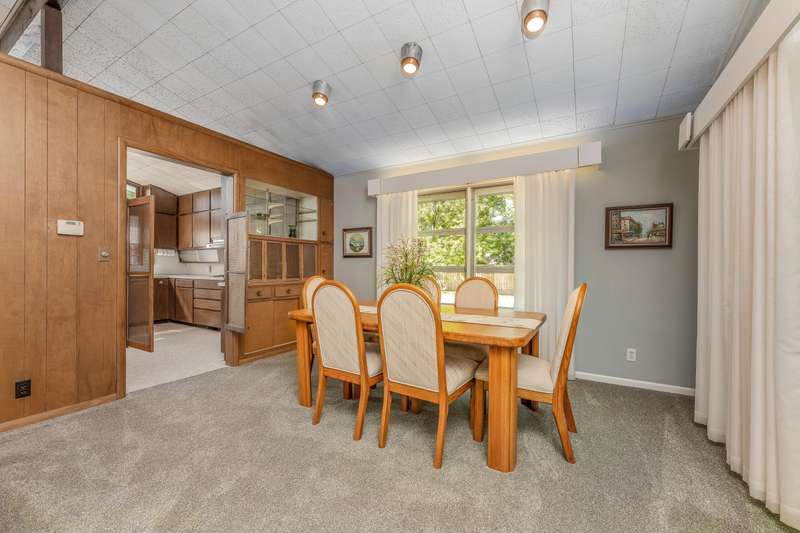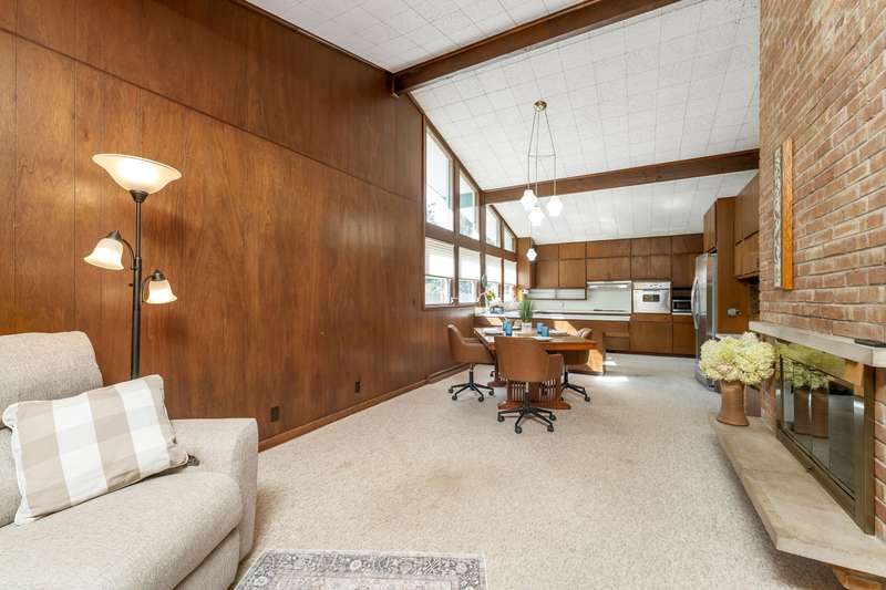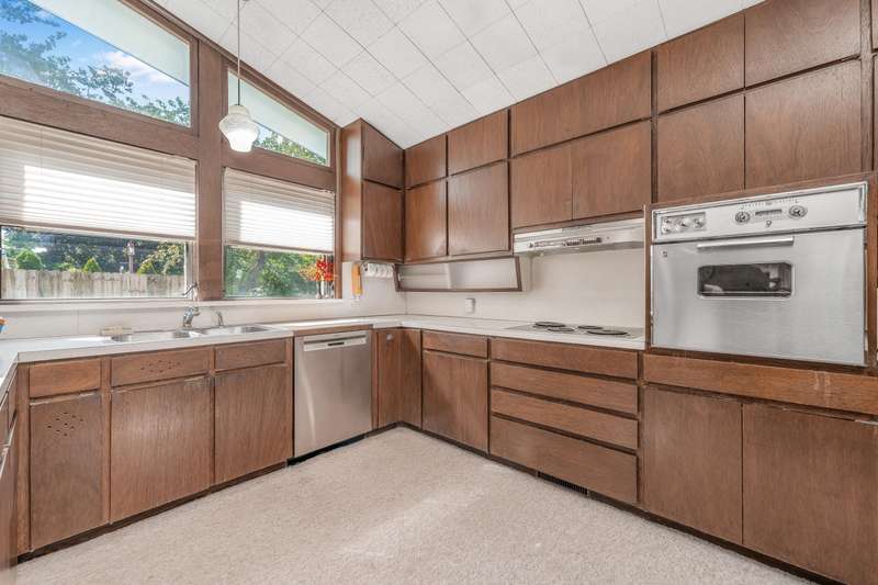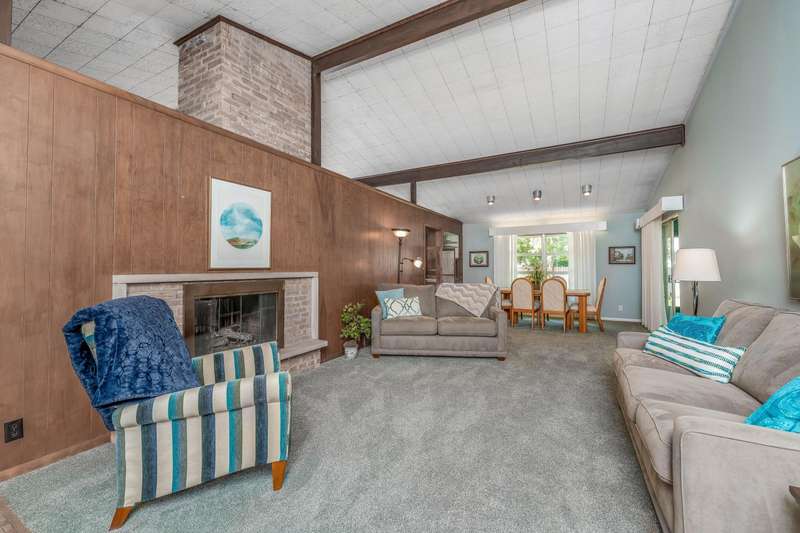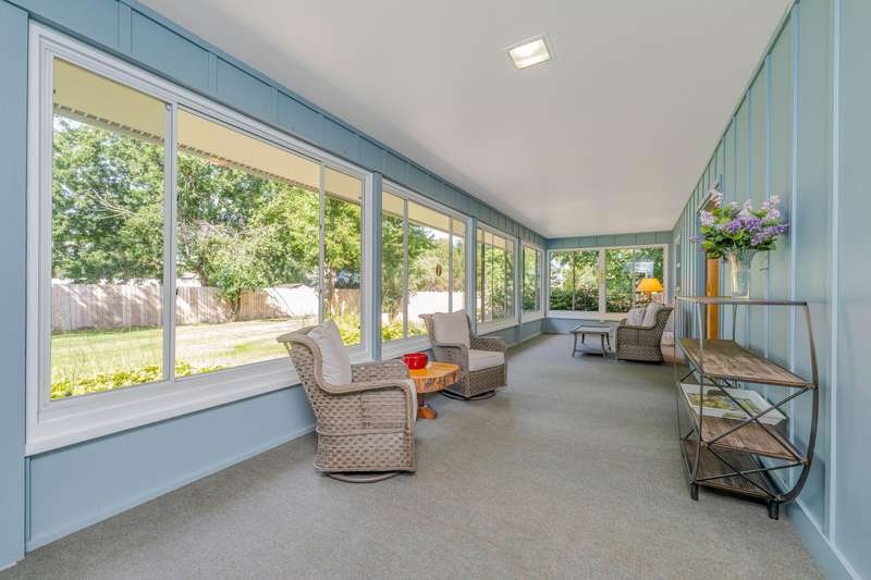 Truly a fabulous, rare find in this sharp, mid-century ranch home in Portage. A few updates will turn this stylish, roomy home into a 'modern' classic. You'll appreciate the huge spaces & the vaulted ceilings throughout the kitchen, hearth room, DR, and FLR w/ a double-sided brick fireplace. The kitchen has 18+ linear ft of counter space and enough cabinets & cupboards for the best of aspiring chefs & entertainers. Loads of daylight wash through picturesque windows in all of these spaces. The expansive 3 season porch is the perfect landing spot for early morning coffee or sunset conversation, & looks out into a wonderful back yard w/ a 1yr old privacy fence & a sports concrete pad! Primary suite has private, double French doors to the porch & dual closets adjacent to a well-appointed bath. 2 addnl bdrms share a newly remodeled 2nd full bath. A 1/2 bath, 1st floor stacked laundry & shoot, basement w/ full laundry & utility sink, and ample built-ins add to this home's unique appeal.