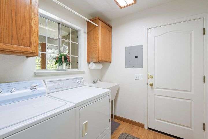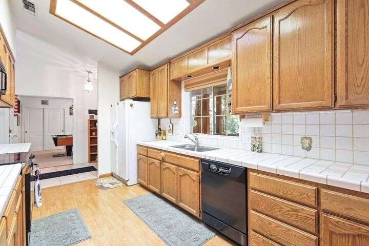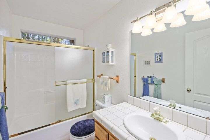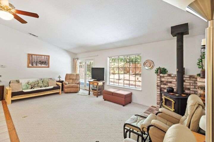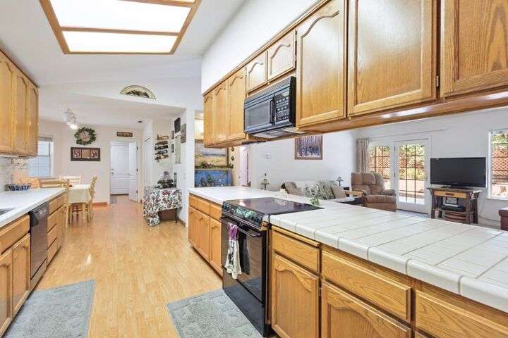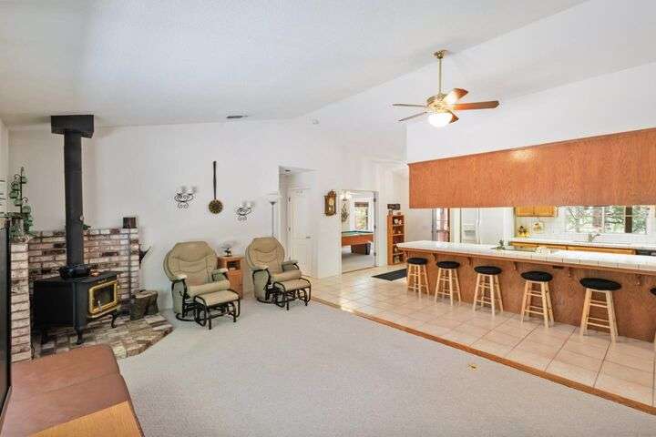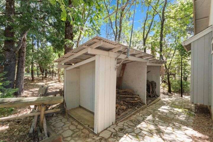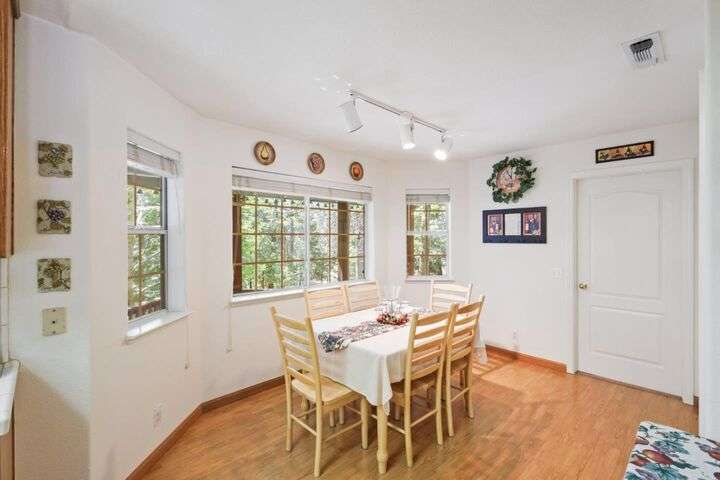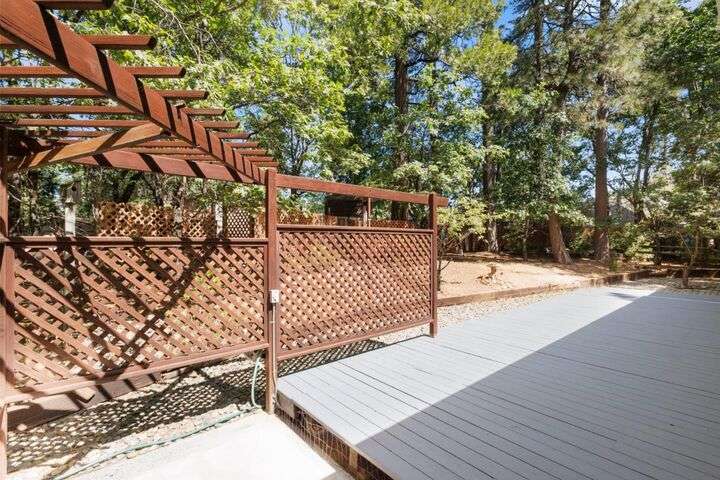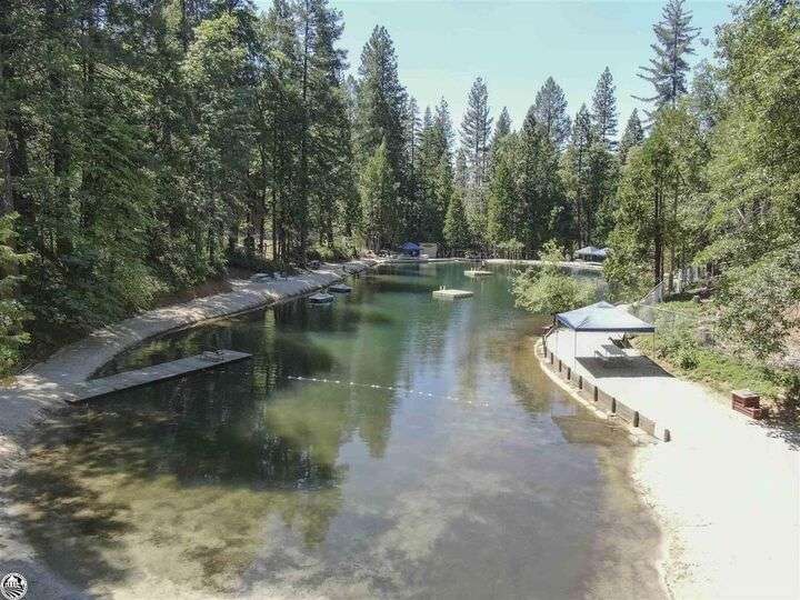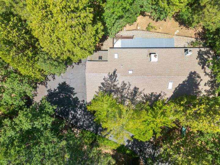 Escape to Cedar Ridge with this beautifully maintained single story mountain retreat, where comfort meets the beauty of the Sierra Foothills. Nestled on a rare double lot totaling 24,642 sqft (0.57 acres), this home offers 3 bedrooms, 2 bathrooms (plus a garage urinal), and 1,780 sqft of inviting living space. Inside, vaulted ceilings and five skylights fill the open layout with natural light, while the kitchen overlooks the living room, perfect for entertaining or everyday living. Large windows frame peaceful views of the expansive lot, bringing the surrounding greenery and fresh mountain air inside. Step outside to a private deck, pre wired for a jacuzzi, ideal for relaxing evenings or gatherings under the stars. The primary suite features a cedar lined walk in closet and double sinks, while the attached two car garage adds convenience. Enjoy nearby water trails and exclusive private access to Dogwood Lake, all just steps from your door. Whether for a weekend getaway or full time residence, this single level retreat offers light, space, and Sierra charm on a fully combined, generously sized lot.