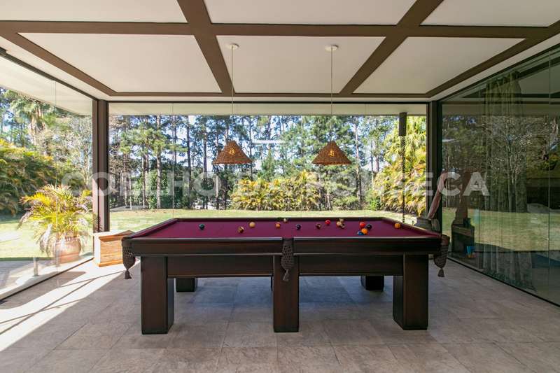 Para você que quer morar no campo a 20 km do centro de São Paulo, em um condomínio seguro com Centro Hípico completo com duas pistas para salto em grama e em areia, dois piquetes, com baias para cavalos, redondel, gerador, portaria blindada com segurança armada 24 horas por dia murado com cerca elétrica SpeedRite, heliponto, lago, quadras e cercado de verde com apenas 40 lotes em 240.000 m2 e situado a 1.000 metros do viaduto da Raposo Tavares, esta é a casa!!! Trata-se da icônica "Casa de Vidro", com espetacular projeto no melhor e mais exclusivo condomínio na Granja Vianna com piscina, sauna úmida, onze vagas de garagem sendo 3 cobertas e um grande jardim . Não é preciso morar distante de São Paulo e longe de todas as facilidades que a região oferece. Oportunidade única naquela que, certamente é a mais bela casa deste empreendimento.