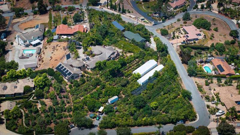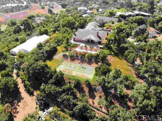 Amazing one of a kind property! This exclusive, serene self-sustaining tropical paradise awaits you! Perfect for a secluded family compound/retreat and those who appreciate the beauty and value of this rare find. Welcome to this spectacular 7,783sf single level estate plus 1,945sf 5BR/3.5BA guest house high in the hills of Vista on 3.88 private acres w/panoramic ocean and mountain views! Mature palm trees line the 400ft long driveway leading to the lush tropical setting of pure oasis. The resort-style indoor salt-water pool is housed in a 2,300sf building w/soaring ceilings, skylights and large windows w/sweeping views! The pool house has a dual heat and air system, air changes every 7 minutes, a dressing room, full bath and is climate controlled via solar panels. A dramatic rotunda connects the pool house to the main home. The flow of the home is ideal for large gatherings and entertaining. Features include beautiful wood inlaid floors, open beamed ceilings, a large chef's kitchen w/granite, maple counters, Travertine floors and a 1,000sf play room or convert to another master suite or guest quarters. Large multi-level 6,000+sf decks overlook the lighted sand volleyball court. The true beauty of this property is the amazing grounds like no other boasting more than 600 mature subtropical fruit trees from around the world. Also included is your own 1,500ft well and 60 panel electric solar system. The property has an extensive water irrigation system including three 5,000 gal reserve water tanks with full delivery system. Separate meters for the house, guest house and well. Currently an exotic fruit nursery, the 10,000+ potted fruit trees are available for purchase if desired. The year round warm and temperate Vista climate compliments this fantastic estate!