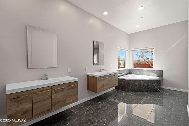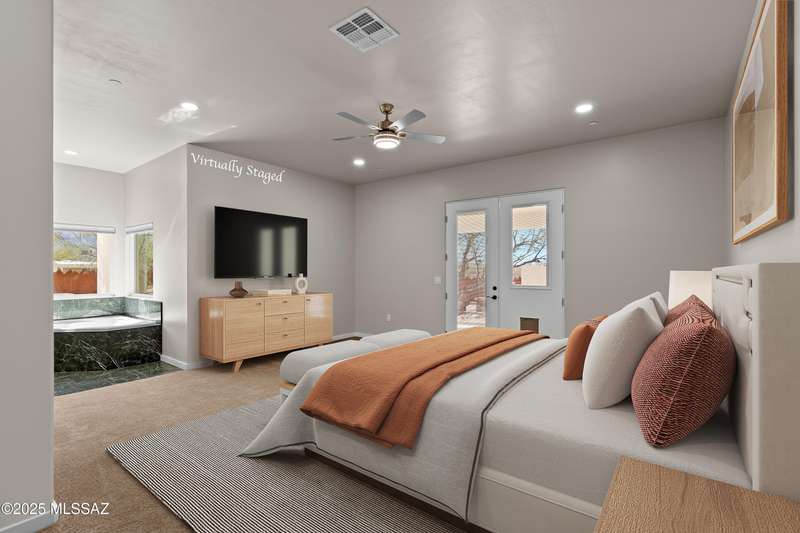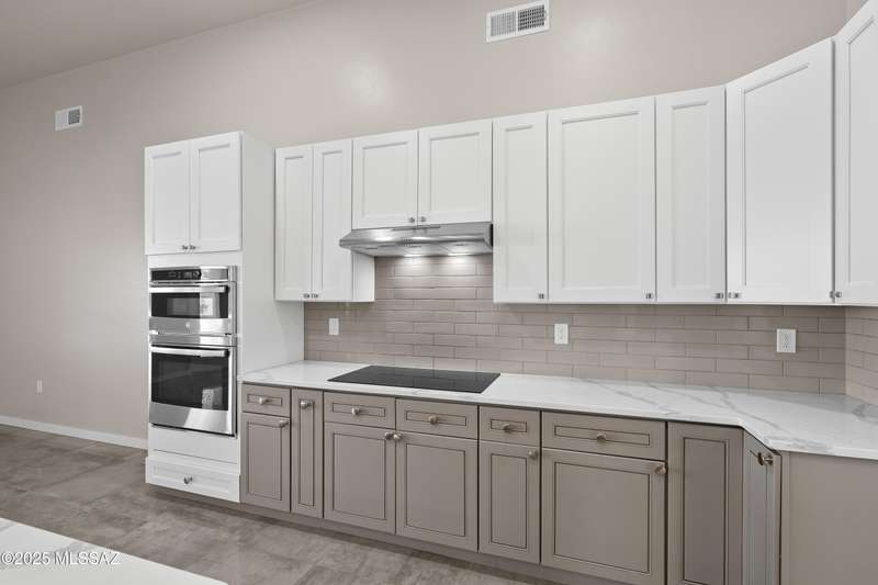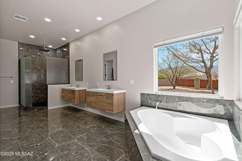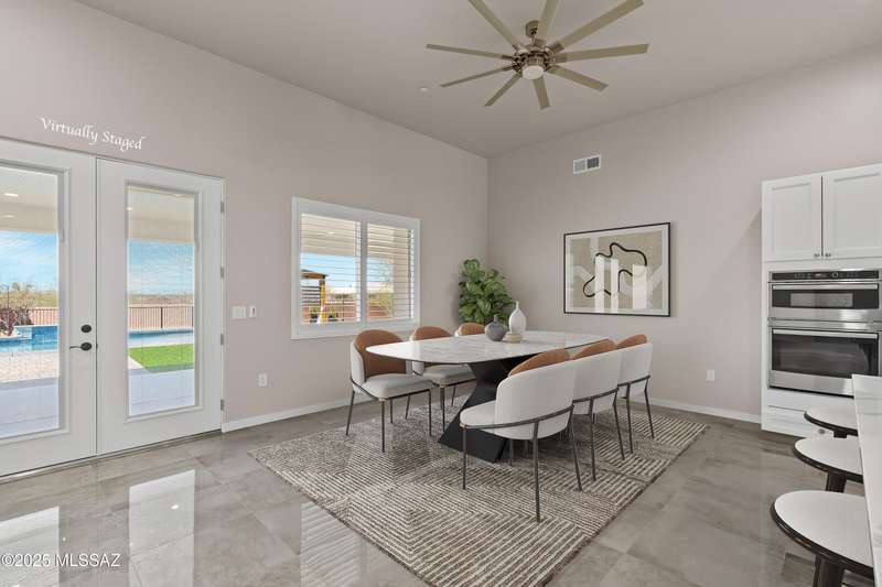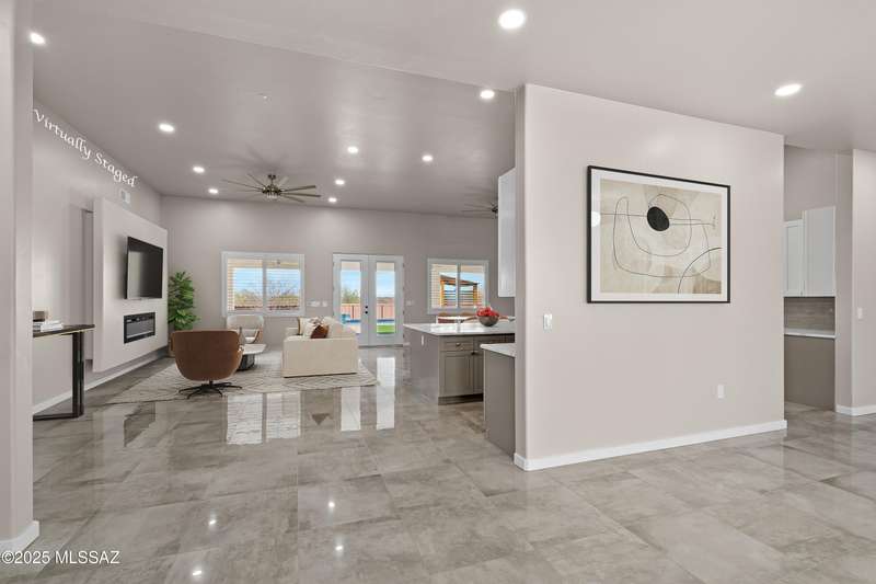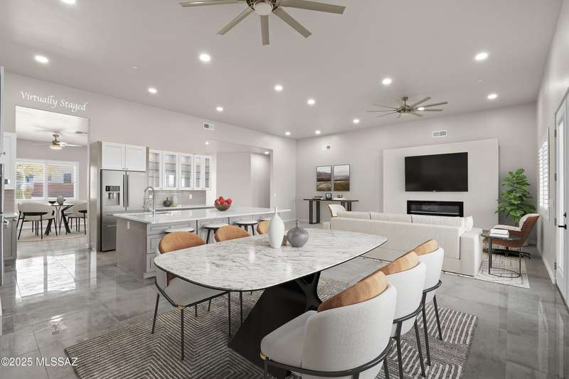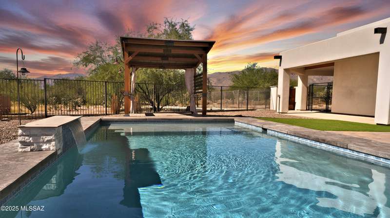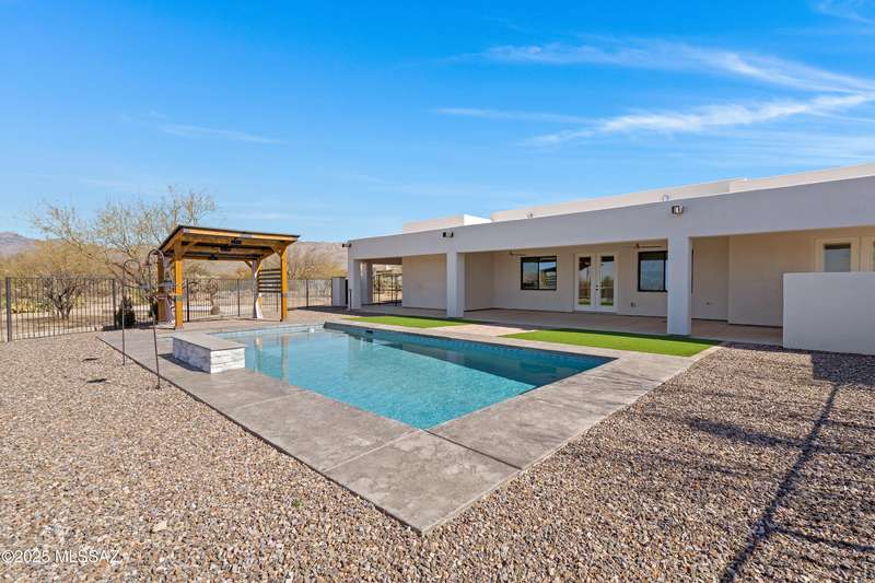 STYLE MEETS FREEDOM! The ultimate luxury lifestyle set on a manicured acre of land. Expansive great room sports a stylish fireplace w/variable lighting. No HOA to hinder your enjoyment. Extensive walls & fencing create a personal playground w/designated yards. Ideal for pets, projects, & toy parking. HAVE ALL THE FUN STUFF AT HOME! Entertain w/ ease under a massive cov patio overlooking the waterfall pool w/view of trees, mtns & desert sunsets! 36-in tile mimics the look & feel of polished Carrara stone. The chef's dream awaits: Maple cabinets on 2 sides of the island, Calacatta Quartz, Induction Cooktop, Convection Oven & Micro. Prepare to be Impressed: Owner's suite offers plenty of wall space, spa-quality rain shower, wall-mounted vanities, corner soaking tub & enormous walk-in closet!
