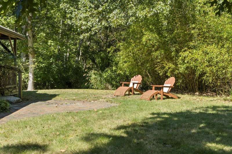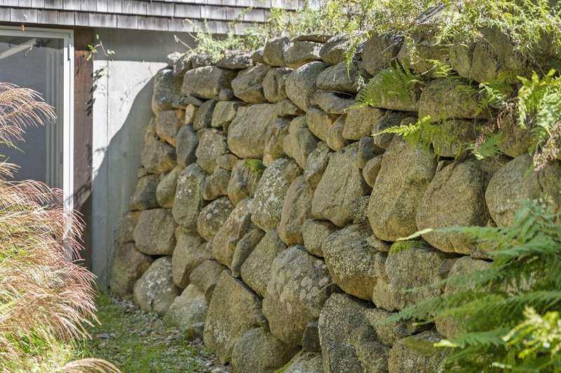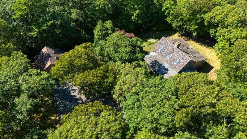 Set on 3 acres of natural beauty, this 1968 s/f post-and-beam home offers a tranquil and inviting setting surrounded by stone walls, serene gardens, and the glacial erratic stones that distinguish the Chilmark landscape. The main residence features three levels of living. A chef's kitchen with a Viking gas range and pantry overlooks the open floor plan, awash in natural light with wide-plank floors, leading seamlessly through living and dining areas with French doors to a dining patio and sundeck. Past a fieldstone fireplace is the music room and a first-floor primary suite with a full bath featuring handcrafted artisanal tile, slate floors and soaking tub. Brick patios and winding garden paths extend the living space outdoors, encouraging quiet enjoyment of the landscaped grounds and wooded trails. A partially finished, walk-out lower level with its own stone wall and beach grass entry provides versatile bonus space. Completing the property is a detached 576 sq. ft. studio with a loft, full bath, and deck-ideal for guests, work, or creative pursuits-as well as an oversized barn-style two-car garage with a large loft space above. You'll enjoy coveted Lucy Vincent Beach, as a Chilmark property owner, providing an exceptional opportunity to own a distinctive Vineyard retreat.