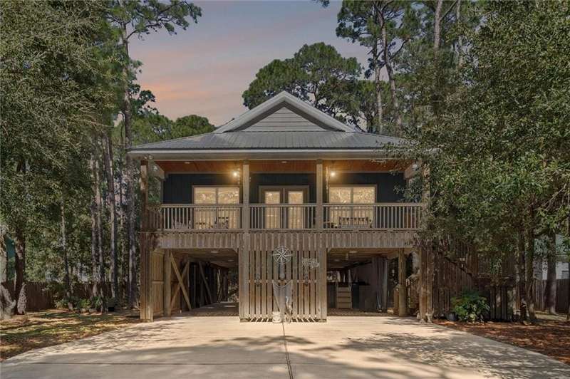 Welcome to a life of coastal comfort on Dauphin Island. This beautiful 3 bedroom, 2 and a half bathroom beach house captures the relaxed charm of the island with laid back coastal living and thoughtful upgrades for modern comfort. Built Gold Fortified by Ron Twilley, the home features an open-concept living area with high ceilings and plenty of natural light flooding in the windows. The kitchen has plenty of cabinet space and a spacious island that's perfect for entertaining or casual family meals. Enjoy your morning coffee or evening sunset on the screen porch, but don't miss the bonus this home has hidden below- an 8x16 Dr. Wellness swim spa, perfect for a low-impact workout or winding down after a day on the beach. Whether you're looking for a full-time residence, a vacation getaway, or an investment property, this Dauphin Island home delivers the best of coastal living for all. Buyer responsible for verifying all measurements and relevant details. Property is being sold fully furnished (excluding personal belongings) including the swim spa downstairs.