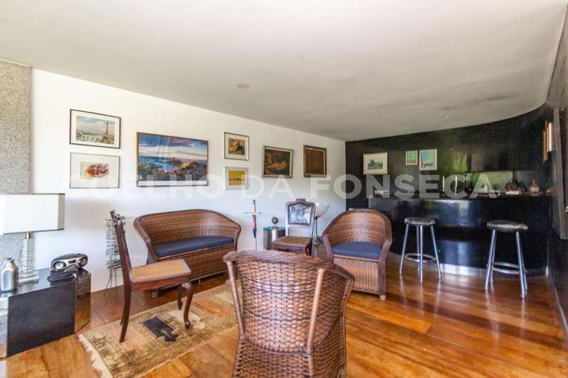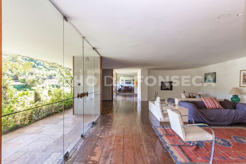 1º sub-solo: amplo living, sala de som, sala de jantar, sala de almoço, jardim com piscina, copa, cozinha, garagem p/ 6 carros