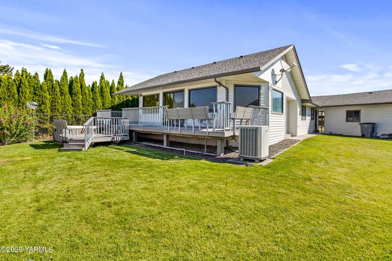 Welcome home to the AMAZING views of 5504 Pear Butte Dr! The vaulted ceilings and picture windows of this custom-built home showcase the gorgeous views of Mt. Adams and our beautiful Yakima Valley! This is a solid-built home that is clean as a whistle! There are 3 bedrooms and two bathrooms, and the main focus is the large, open concept kitchen, dining and family room which open to the composite deck where you can enjoy the panoramic views. The home offers large closets, a gas fireplace, hot tub (with new filter and cover), spacious 3 car garage plus gated, RV parking (and dedicated power). Some of the updates include the primary bathroom with a jetted bathtub and tile shower, roof, LVP flooring, hot water heater, furnace, refrigerator, seamless steel siding and gutters. With a fully fenced yard and underground sprinklers, this home is easy to maintain. Call for your private tour today!