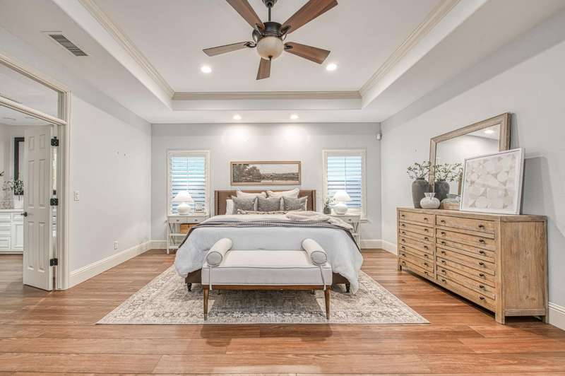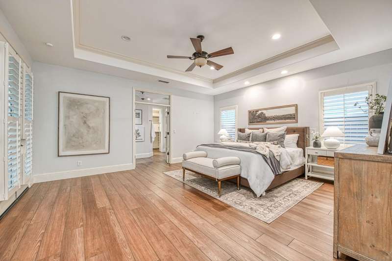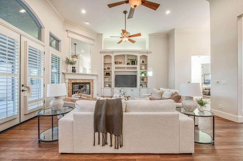 Set in the heart of Harlan Ranch, this Image-built residence marries timeless craftsmanship with contemporary comfort. Recently renovated, the home offers 5 bedrooms and 3 baths across approximately 3,759 square feet of beautifully balanced living space, each detail thoughtfully curated to invite light, ease, and elegance.A grand entryway opens into the living room, where high ceilings and expansive windows bathe the interiors in natural light. The seamless transition to the kitchen underscores the home's open-concept design, creating a space equally suited to quiet mornings or lively gatherings. Anchored by a striking Quartzite island, the kitchen showcases a professional-grade Wolf range, Sub-Zero refrigerator, and custom cabinetry designed with both form and function in mind.In addition to the generous living spaces, the home features a dedicated office perfect for working from home or creative pursuits and a versatile bonus room that can serve as anything from a home gym to a crafter's dream studio.Throughout the main level, tile and hardwood floors offer a sense of continuity and sophistication. The primary retreat redefines comfort, complete with a private fireplace, plantation shutters, and dual walk-in closets with custom built-ins. The en-suite bath evokes a spa-like tranquility, featuring new Quartzite counters, dual vanities, a free standing soaking tub, and a spacious two-person shower lined with fresh tile.Beyond the interior, the backyard unfolds as an entertainer's paradise: a lengthy covered patio overlooks a sparkling pool framed by mature landscaping and an open expanse of lawn. A wrought-iron gated dog run and 40+ owned solar panels with no true-up to date reflect the home's blend of practicality and luxury.At Harlan Ranch, residents enjoy access to parks, walking trails, and community spaces that encourage an active, outdoor lifestyleperfectly complementing the serenity of home.