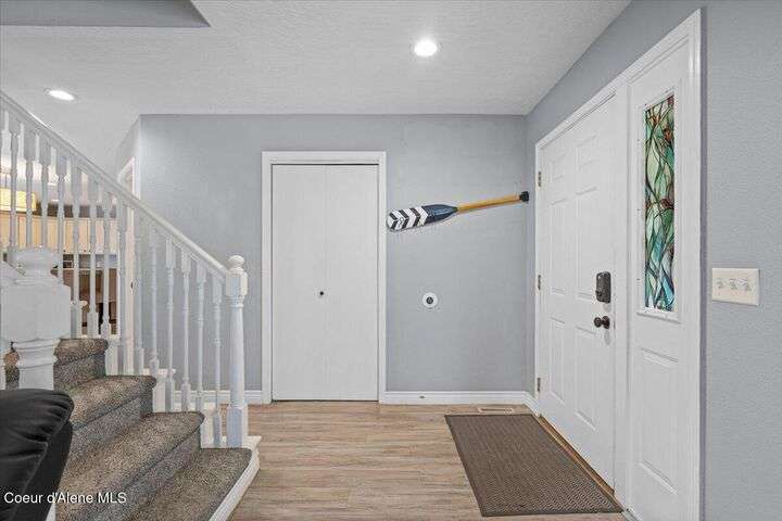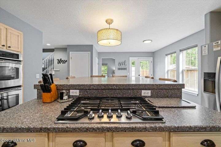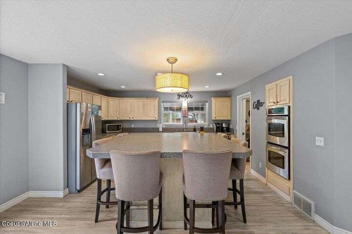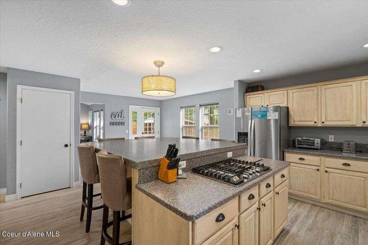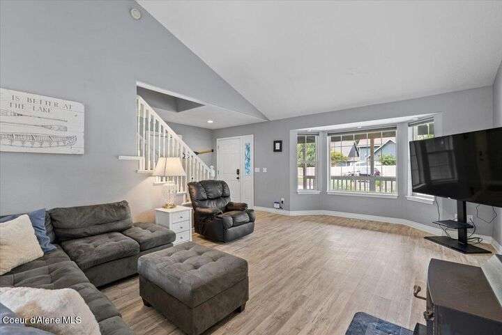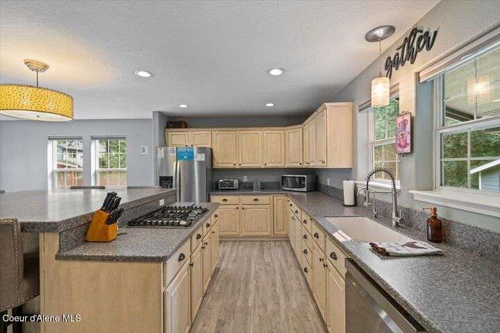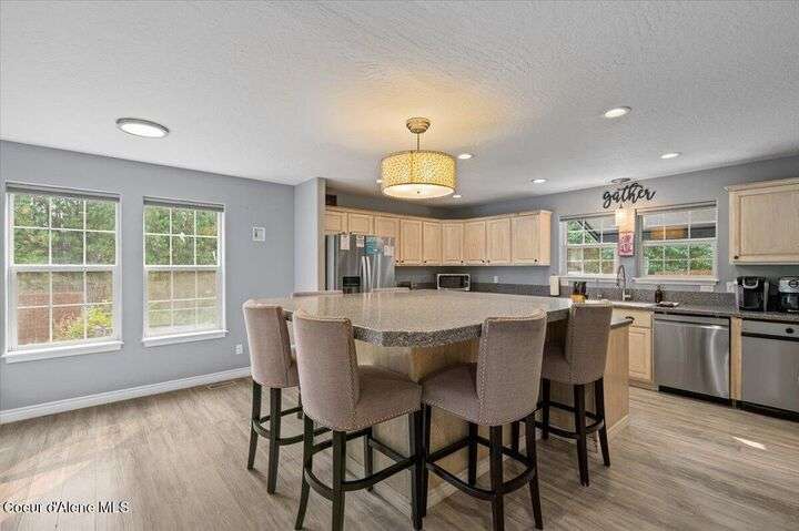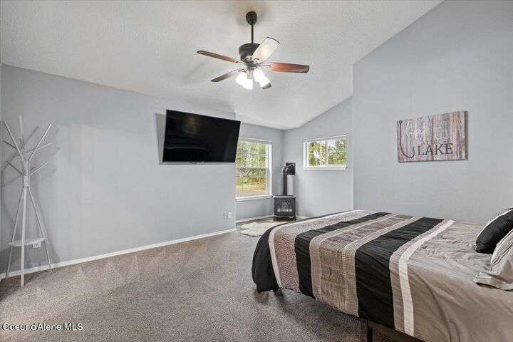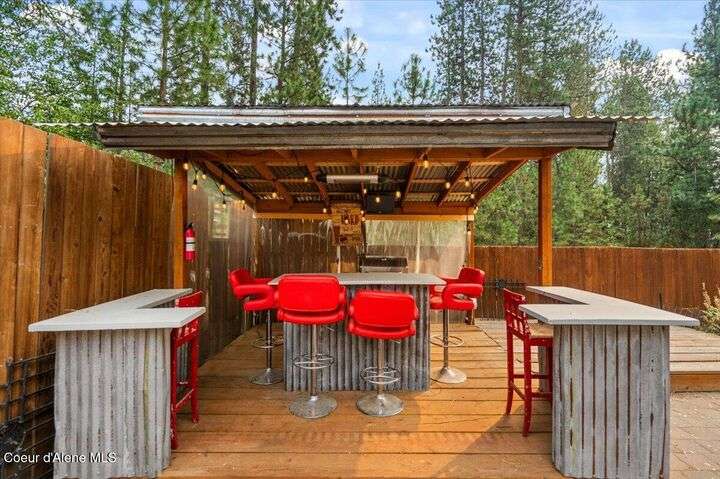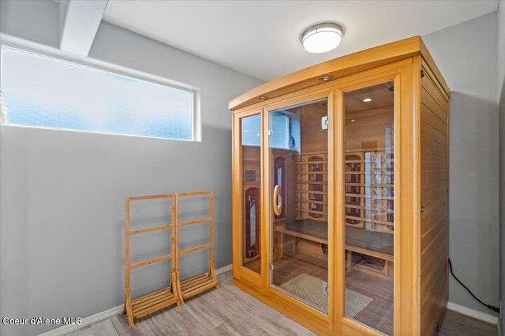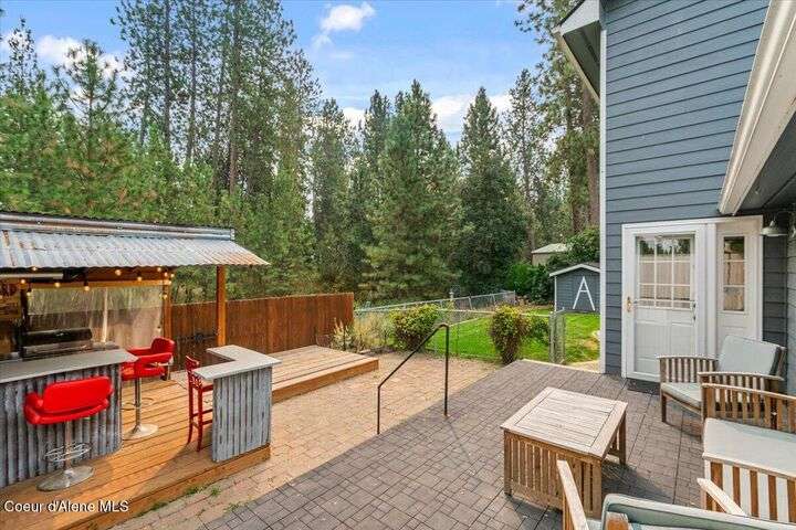 Beautiful home on a half-acre lot with attached Mother-in-Law quarters! With wraparound porch, cozy wood stove in the vaulted ceiling living room and a spacious kitchen island perfect for casual dining, this home blends warmth and character with modern comforts. Master suite feels like a retreat with its cozy freestanding gas stove, sauna in the ensuite bathroom and large walk-in shower. Great entertaining awaits on the patio in the heated cabana complete with bar and lights. Mother-in-law space is a gem of its own with vaulted ceiling, abundant natural light, separate entrance and private patio area. Ideal for guests, family members, income potential, art studio, etc. Both dwellings have been short-term and long-term rentals, providing opportunities for investment. Lot extends behind fenced backyard into the woods for a pretty view and buffer from back neighbor. Home is wired for generator. No HOA fees to pay and just minutes to beautiful Atlas Waterfront Park or downtown CDA fun!