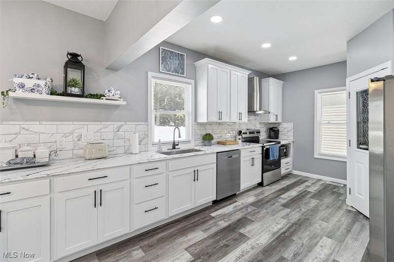 Welcome to this stunning, fully renovated home in the heart of Cleveland's sought-after west side. This spacious property has been transformed from top to bottom with high-end finishes and modern amenities, offering true turn-key living just minutes from Edgewater Beach, Downtown Cleveland, and Lakewood Park. Step inside to an open-concept first floor flooded with natural light, featuring luxury vinyl plank flooring, brand new quartz countertops, all-new soft-close cabinets, modern fixtures, and a full suite of new stainless steel appliances. The space is perfect for both everyday living and entertaining. Upstairs, you'll find convenient second-floor laundry located near the bedrooms, along with two beautifully updated tiled bathrooms, including a luxurious master en suite with walk-in closet. Brand new carpet, vanities, and fixtures add a fresh, modern touch throughout. The third floor features a massive fourth bedroom with double closets and its own mini-split HVAC system, making it ideal as a guest suite, office, or studio. Outside, enjoy your fenced-in backyard, complete with a new metal garage, outdoor fire pit, and a welcoming new front porch that adds charm and curb appeal. Don't miss your chance to own this beautifully updated home in a prime location. Schedule your showing today, this one won't last long!