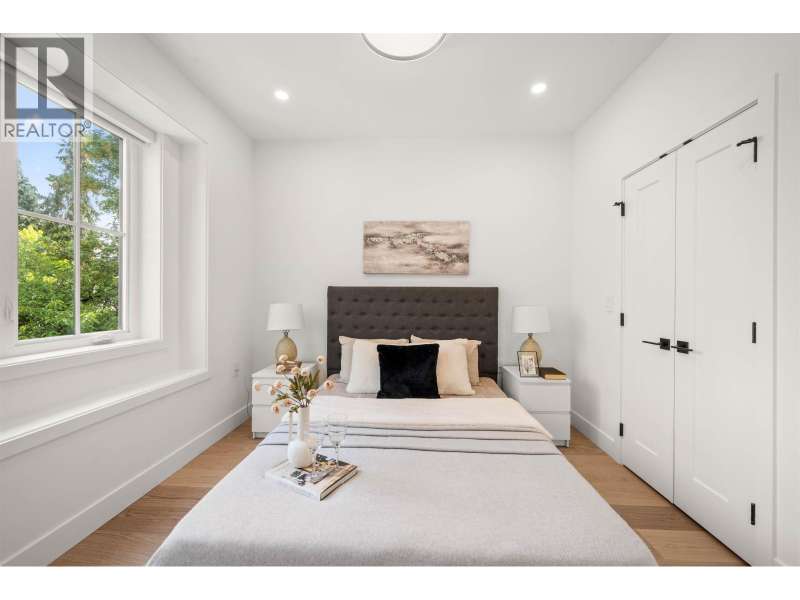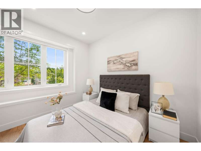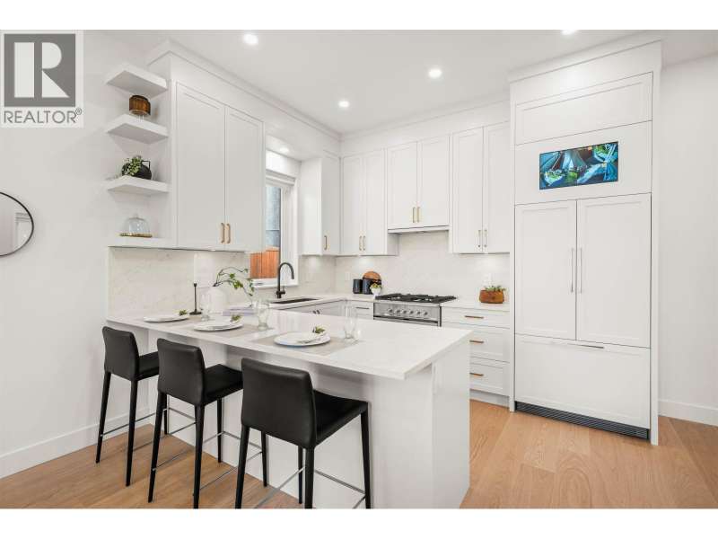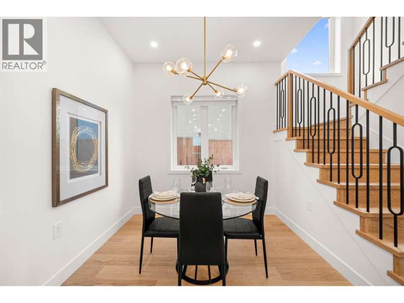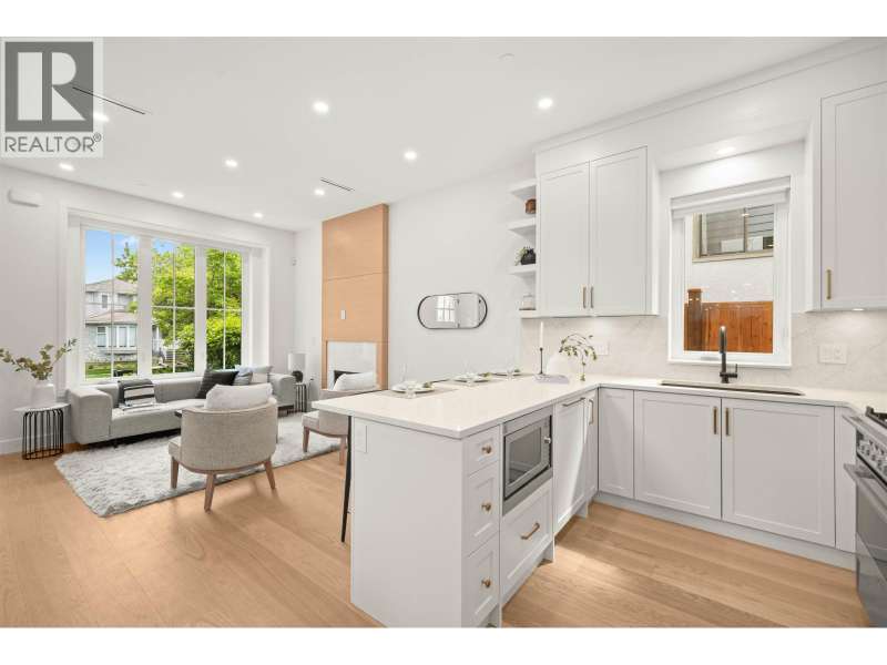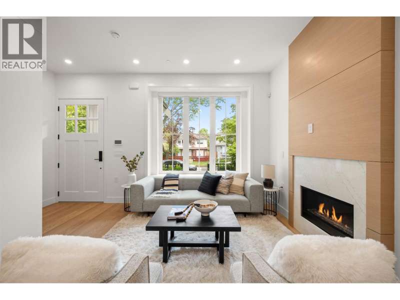Enjoy stunning mountain views from this brand-new front duplex in the vibrant Main Street neighbourhood. Spanning three levels, this home offers 3 bedrooms and 3.5 baths with thoughtful design throughout. The main floor features 10´ ceilings, hardwood flooring, a gas fireplace, Fisher & Paykel appliances, and custom built-ins. Upstairs includes two bedrooms, each with its own ensuite and built-in dressers, while the top floor showcases a private bedroom with ensuite and a balcony overlooking the mountains. Located close to shops, restaurants, golf course, John Henderson Elementary and John Oliver Secondary catchments.Complete with A/C, HVAC, security system, and an EV-ready single garage. (id:58403)