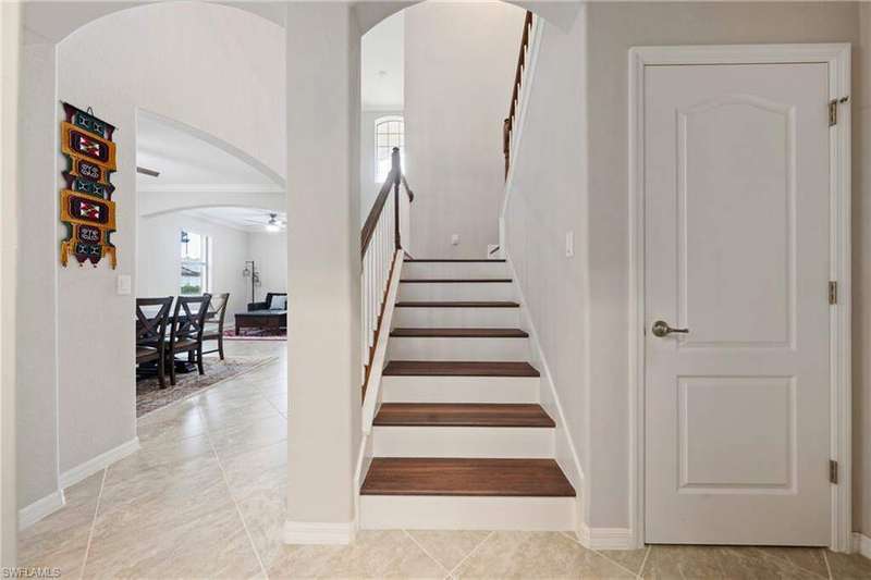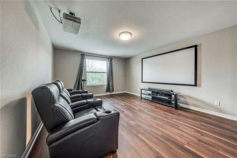 Major Price Improvement! Motivated Seller! The elements of chic sophistication and timeless style merge in this meticulously crafted Monet Carlo Floor Plan, 5 Bedrooms, plus Huge Bonus Room ( Media Room), Small Loft, 3 Full Bathrooms, and a 3-Car Tandem Garage, 2 story home with nearly 3,400 Sf Ft. of Living Space with full storm protection by accordion shutters, in the coveted and centrally located gated community of Raffia Preserve. Tucked away from the noise of Collier Blvd & Vanderbilt Beach Rd, you are greeted by the paver walkway and front foyer with soaring two story ceilings and first impressions of the formal living and dining area. Further into the home sits the gourmet kitchen with granite counters, tile backsplash, upgraded kitchen cabinets, stainless steel appliances, pantry, disposal, and center kitchen island flanked by the enclosed lanai with sliding doors. Additionally, enjoy reverse osmosis water from the kitchen sink and fridge. The seamless flow from the kitchen to the family room allows for the perfect backdrop for any function or occasion! Your out of town guests will appreciate the first floor bedroom and full bath with shower/tub combo and granite vanity. The enclosed lanai and extended pavers is perfect for outdoor entertaining and vision for the pool of your dreams! Upstairs, the enlarged den is currently kept as an at home theater but can be that extra space for even more out of town guests or your home office. An upgraded feature, all the bathrooms in this well appointed home come equipped with upgraded granite and cabinets. The primary bedroom is also large in size with tons of natural light and an abundance of closet space with two walk-in closets, dual granite vanity, separate tub and shower, and linen closet. The remaining three bedrooms upstairs all boast plentiful closet space and tons of natural light. Peace of mind is enhanced with your 3 car tandem garage, luxury vinyl and tile flooring throughout, impact resistant front door, accordion sliding storm shutters, laundry in residence, & custom light fixtures. Enjoy close proximity to the clubhouse with the community pool, community room, & fitness center, basketball, and playground. Centrally located, you are a stones throw away from great shopping and dining off Collier Blvd with Founders Square less than 5 minutes away, Logans Landing less than 10 minutes away, and the pristine beaches of Naples less than 20 minutes from your front door. Raffia Preserve is zoned in an incredible area with A+ schools. Check out why this stunning property will not last long!