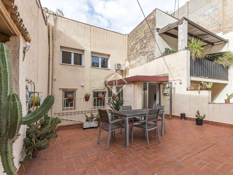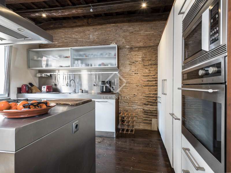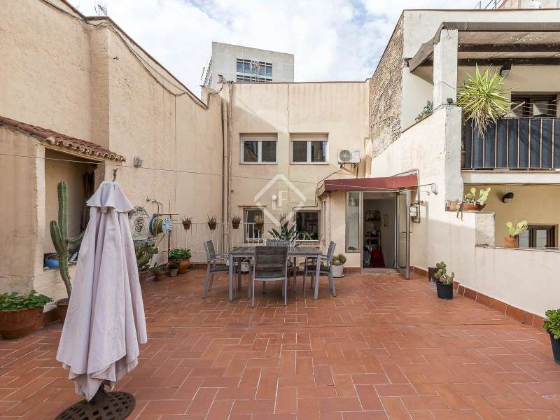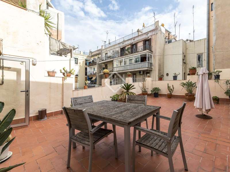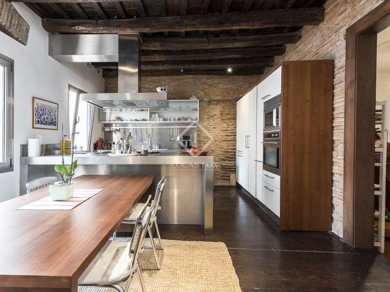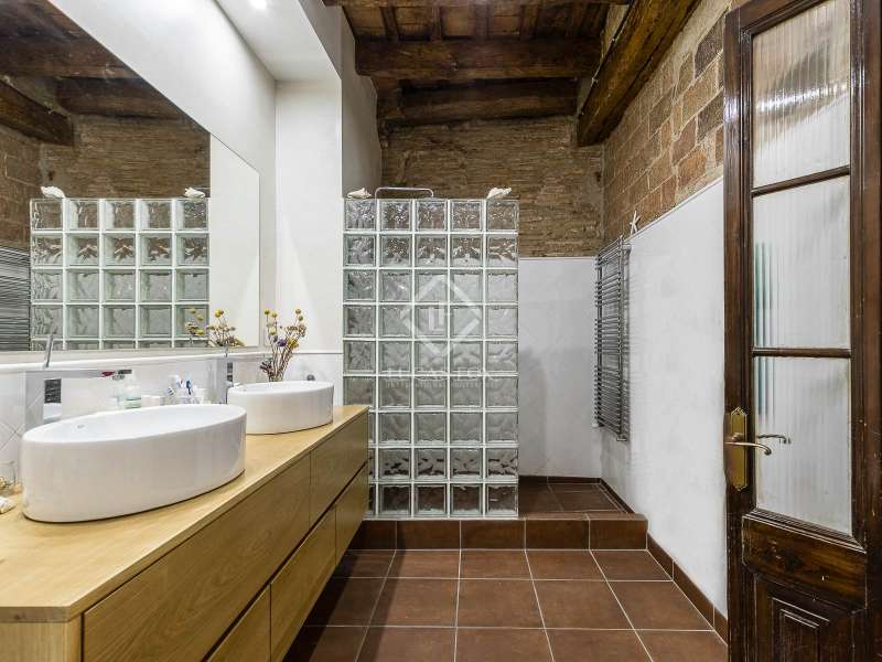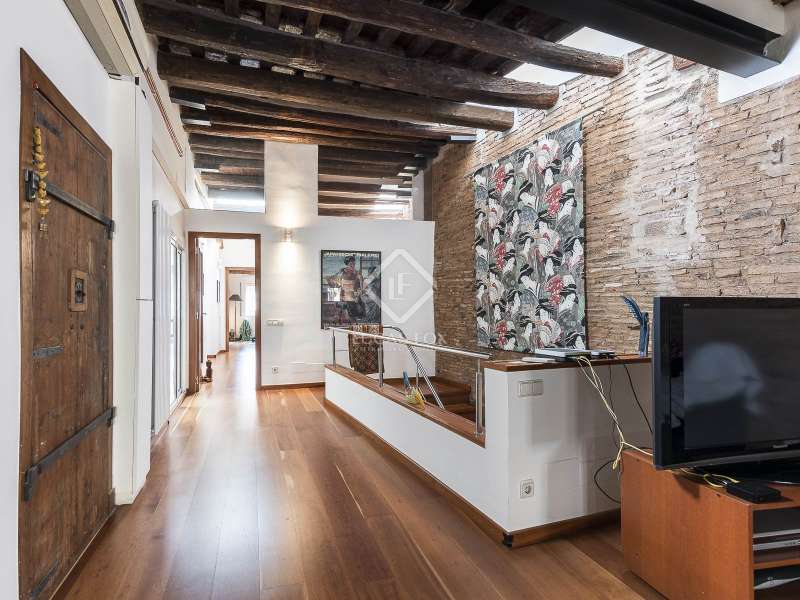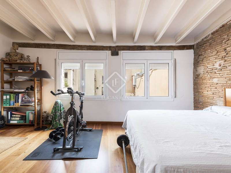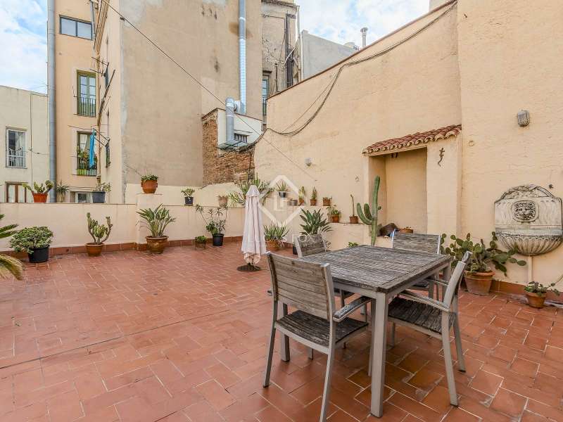 This spectacular duplex located in the heart of Barcelona combines the charm of the original elements with all modern comforts. It has two independent levels, each with its own entrance. The first floor includes two double bedrooms, which are very bright thanks to their large windows. It also has a full bathroom and a study with its own bathroom . From here we access a renovated open kitchen with designer finishes, which has access to the property's large terrace. A staircase from the entrance hall leads us to the second floor , where we have a spacious dining room living room that is very cozy due to its exposed wooden beams and a fireplace that gives it a rustic touch. This floor is completed with the large master suite with a huge dressing room, a full bathroom and beautiful views of the property's terrace. The property is equipped with radiator heating and ducted air conditioning.