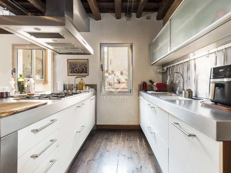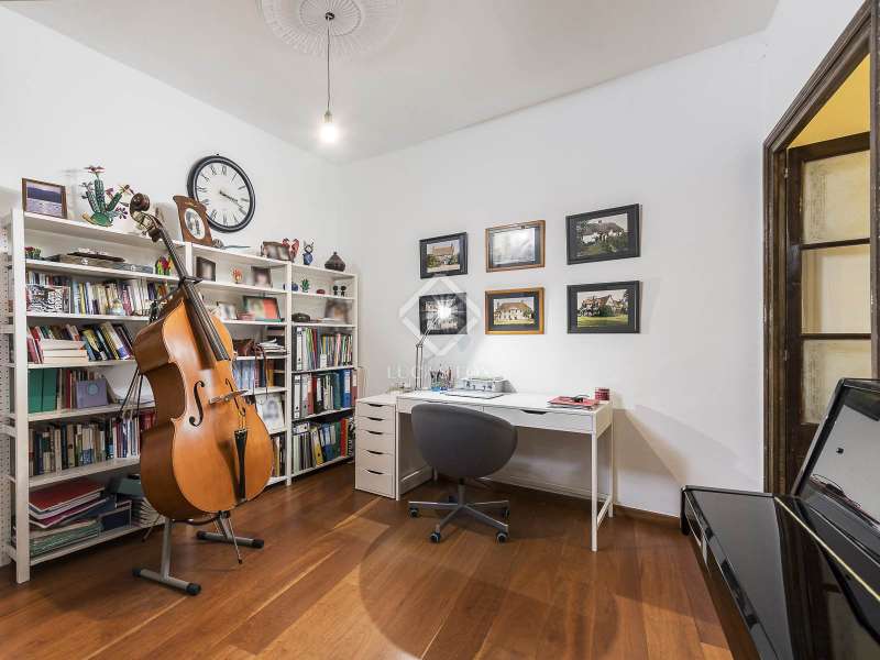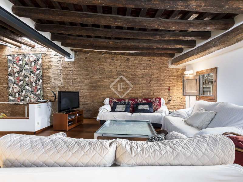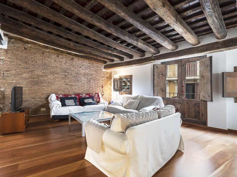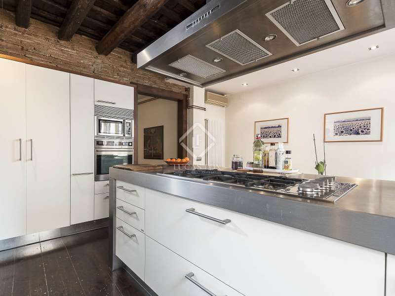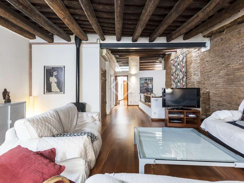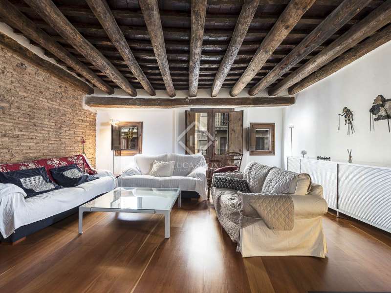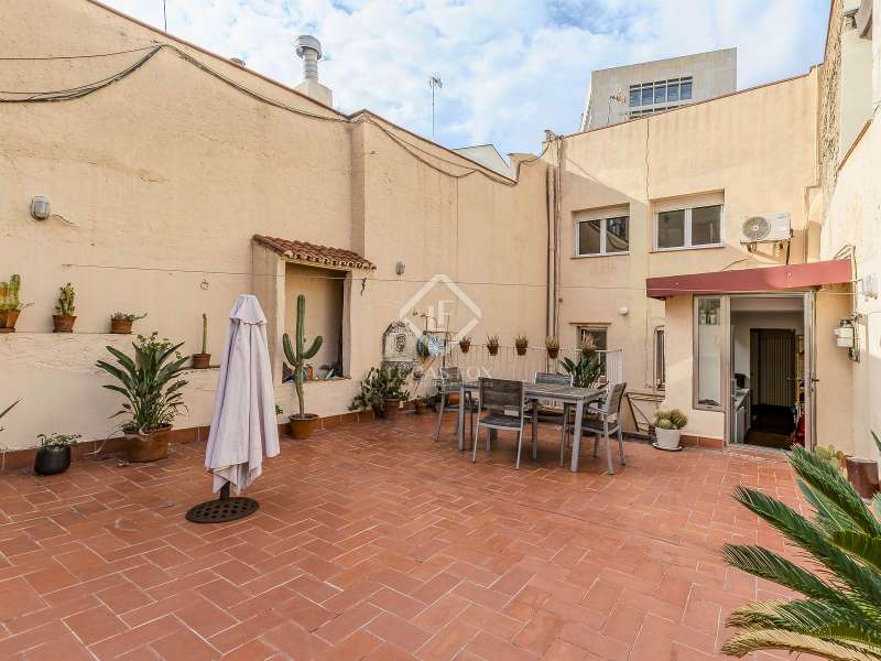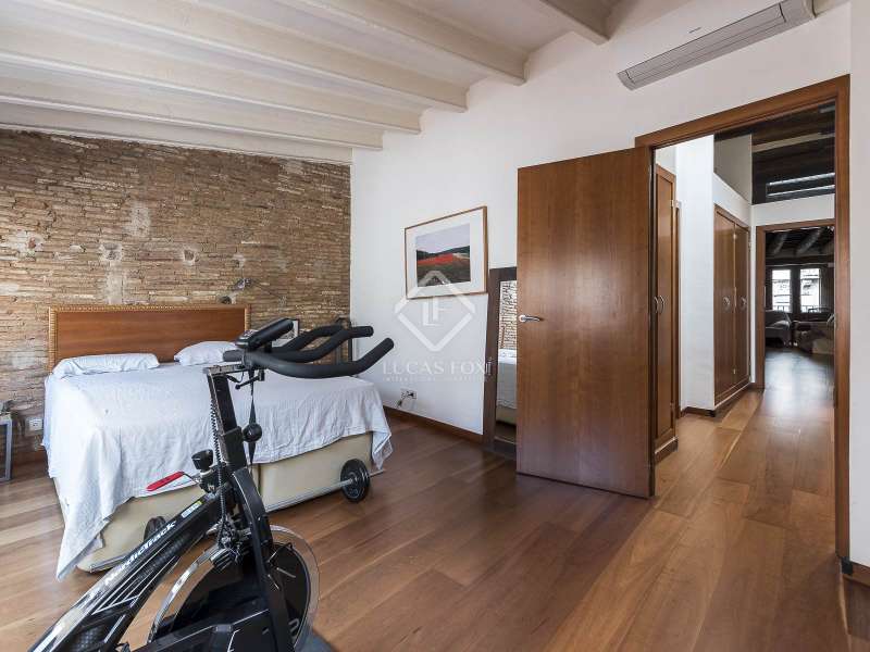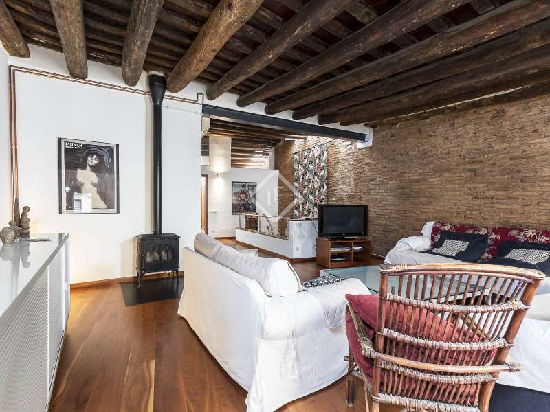 This spectacular duplex located in the heart of Barcelona combines the charm of the original elements with all modern comforts. It has two independent levels, each with its own entrance. The first floor includes two double bedrooms, which are very bright thanks to their large windows. It also has a full bathroom and a study with its own bathroom . From here we access a renovated open kitchen with designer finishes, which has access to the property's large terrace. A staircase from the entrance hall leads us to the second floor , where we have a spacious dining room living room that is very cozy due to its exposed wooden beams and a fireplace that gives it a rustic touch. This floor is completed with the large master suite with a huge dressing room, a full bathroom and beautiful views of the property's terrace. The property is equipped with radiator heating and ducted air conditioning.