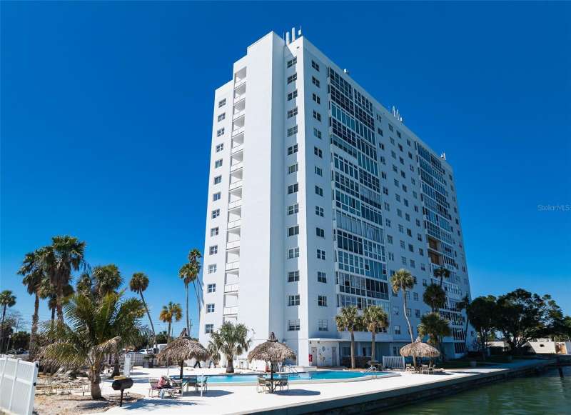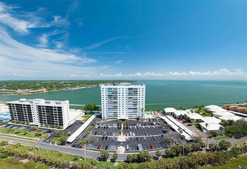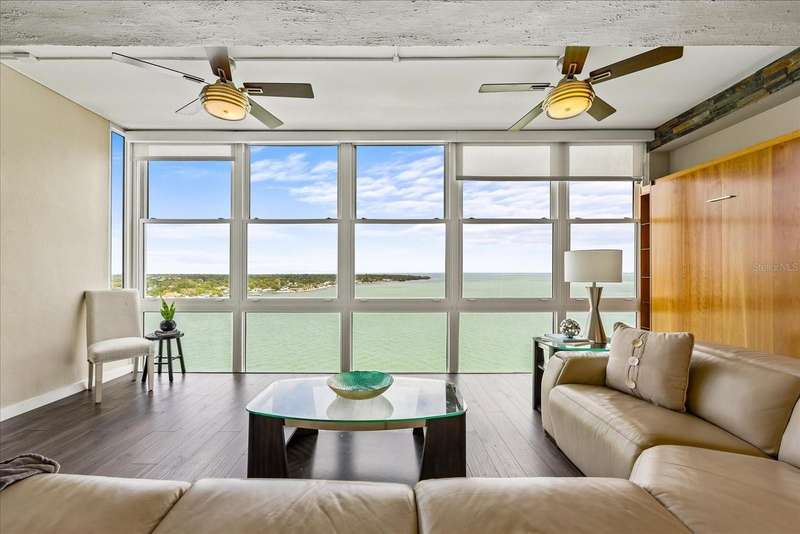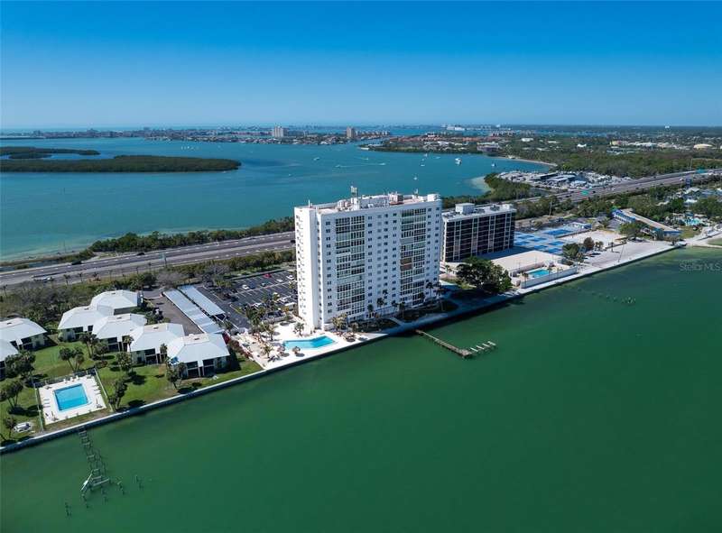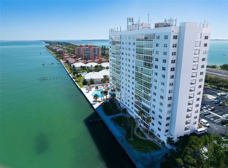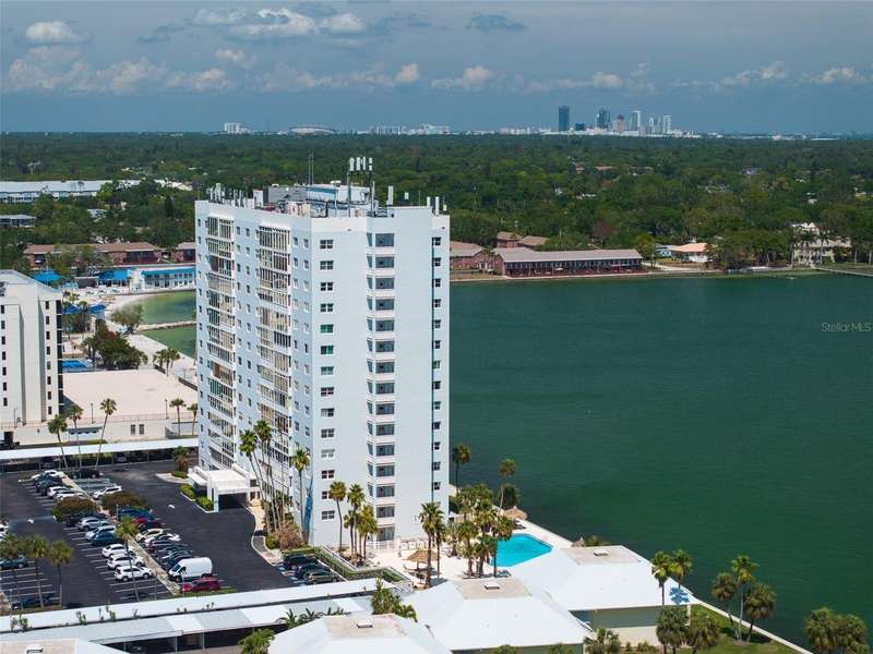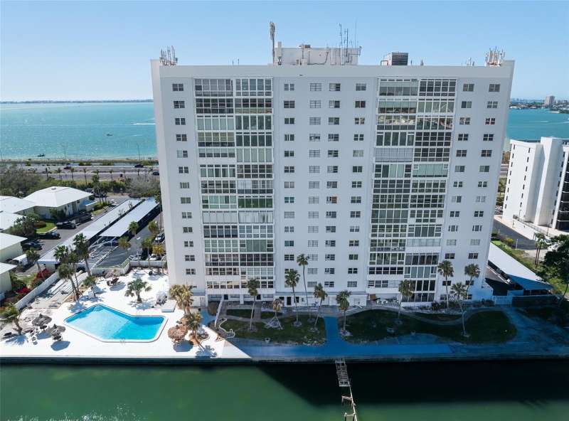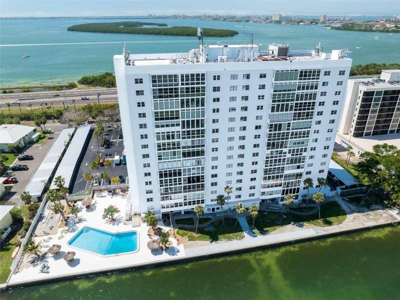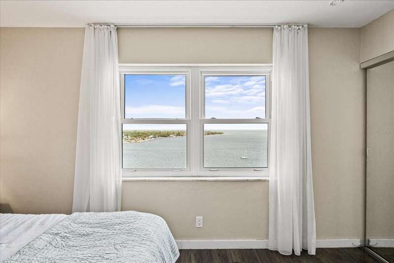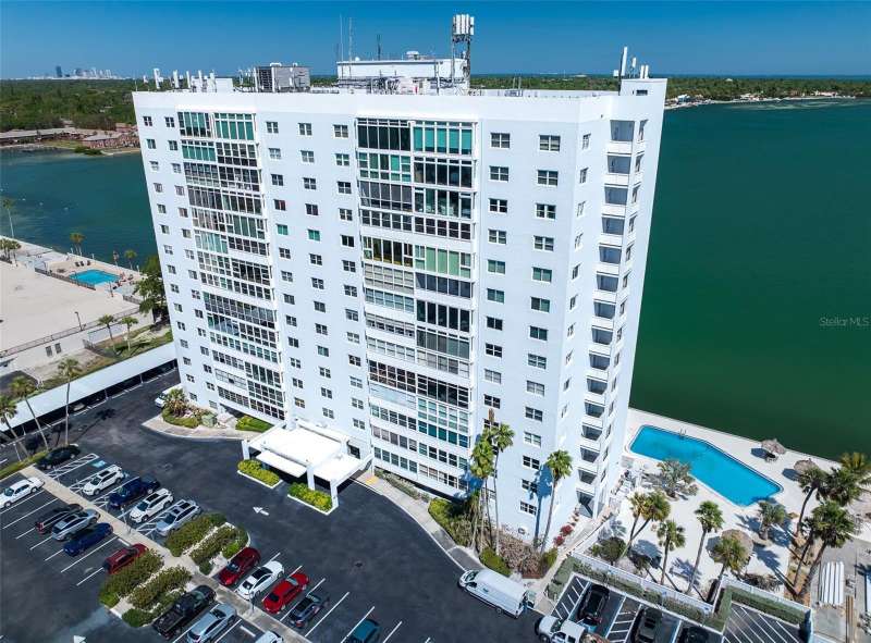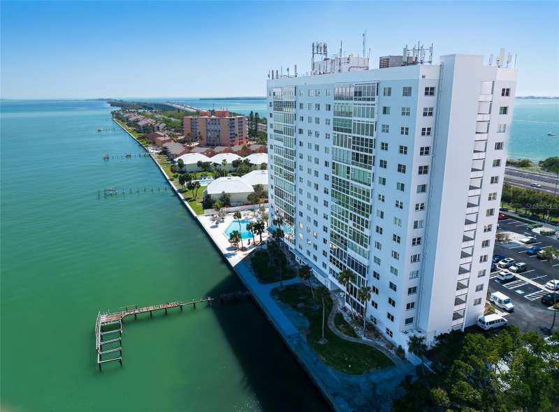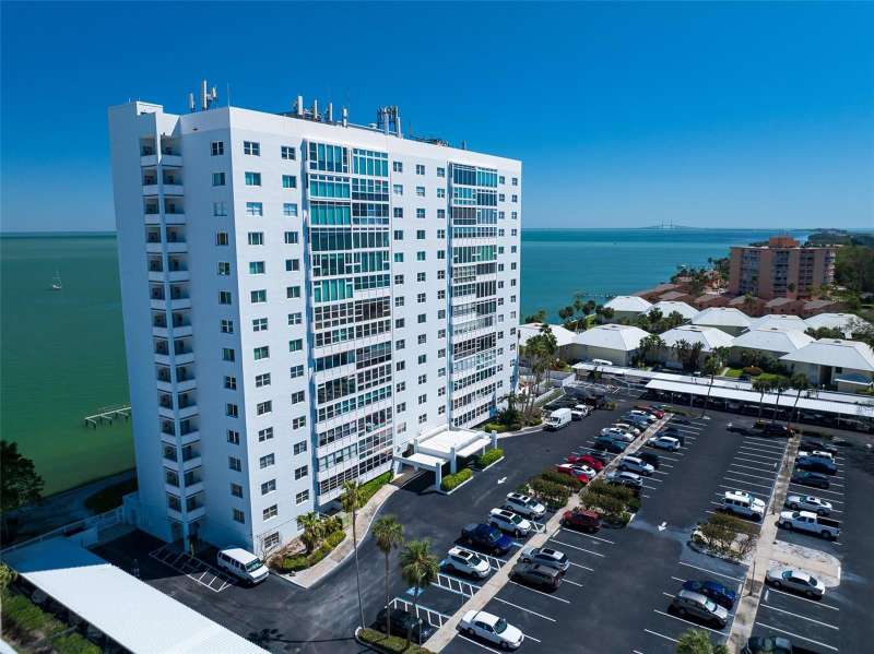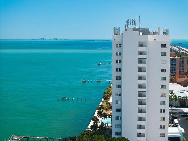 Under contract-accepting backup offers. Penthouse living with magnificent water views under $300,000!!!* From tranquil sunrises to a dazzling sea of stars, this penthouse condo offers an array of stunning Tampa Bay vistas waiting to be discovered. Welcome to an extraordinary retreat, one of the highest residences on Sunshine Skyway Lane, where modern elegance meets unparalleled panoramic views. This tastefully remodeled one-bedroom, one-and-a-half-bath home on the 16th floor boasts floor-to-ceiling windows that showcase 22 feet of remarkable eastward views of Tampa Bay, stretching from the vibrant downtown St. Pete skyline to the iconic Sunshine Skyway Bridge. Natural light pours throughout the home, enhancing the seamless open-concept layout. The kitchen is a delight, featuring ample storage, a sleek wine cooler, and a stunning oversized center island with seating for three. The combination of turquoise and gray hues in the quartzite countertop creates a stunning statement piece that doubles as a practical workspace—ideal for both cooking and entertaining. The spacious master suite is a private waterfront sanctuary, offering wall-to-wall closet space with functional built-in organizers and a practical fold-out desk perfect for remote works, uninterrupted bay views, and a luxurious ensuite bath with an in-unit washer and dryer. A Murphy bed in the living area provides a stylish and comfortable option for guests, while the additional half bath ensures convenience and privacy. With three storage closets inside the unit, every inch of space in this 900 sq. ft. condo has been maximized for effortless living. Additional features include a newer AC system (2022), PGT windows (2016), UV-protected automatic sunshades, LVP flooring, and high-end finishes. Beyond the unit, the building itself is rich in history and unmatched in structural integrity. Originally built by the Army Corps of Engineers, this solid cast concrete and steel residence has withstood the test of time and weather. Residents enjoy a wealth of resort-style amenities, including a waterfront pool, outdoor cooking areas, a fitness center, game rooms, lounges, bicycle storage, and private men’s and women’s locker rooms. The community has been undergoing enhancements since the storms, with a new dock and fishing pier, upgraded common area windows, and refreshed sidewalks set for completion in the coming months! Ideally located just minutes from Fort DeSoto, Maximo Park, marinas, Sunshine Skyway fishing pier, and the world-famous St. Pete Beach. This exceptional penthouse offers quick access to downtown St. Pete in under 10 minutes and the Bradenton-Sarasota area in just 20 minutes. Whether you’re a busy professional or someone who simply appreciates luxury and tranquility at an affordable price, this rare gem provides the perfect balance of urban convenience and serene waterfront living. Don’t miss your chance to own an AFFORDABLE piece of paradise with the most coveted views on Sunshine Skyway Lane.