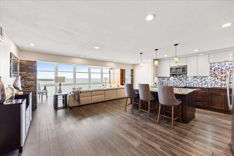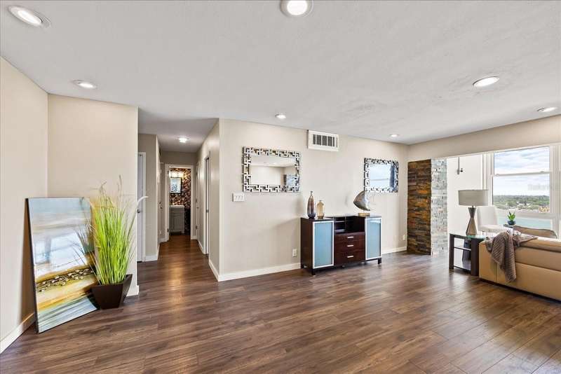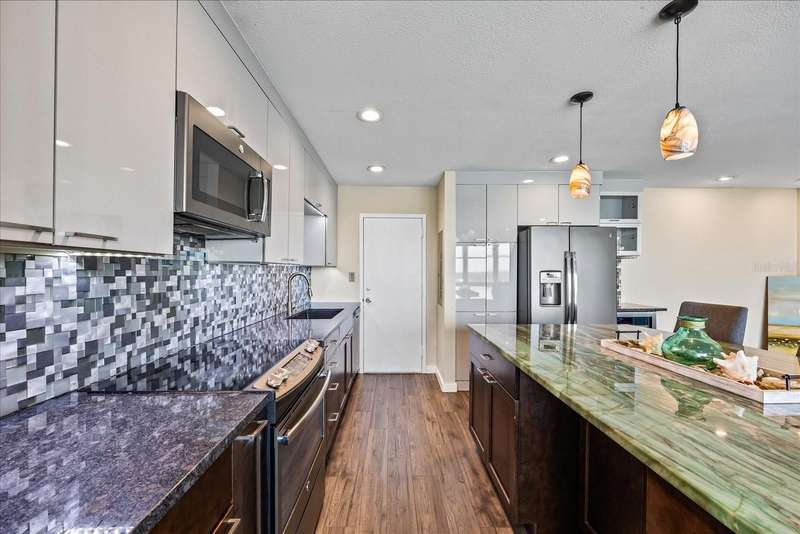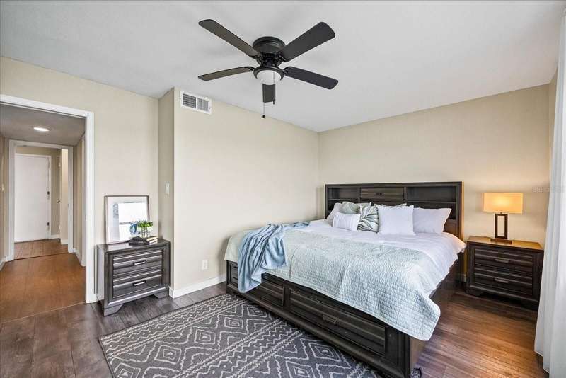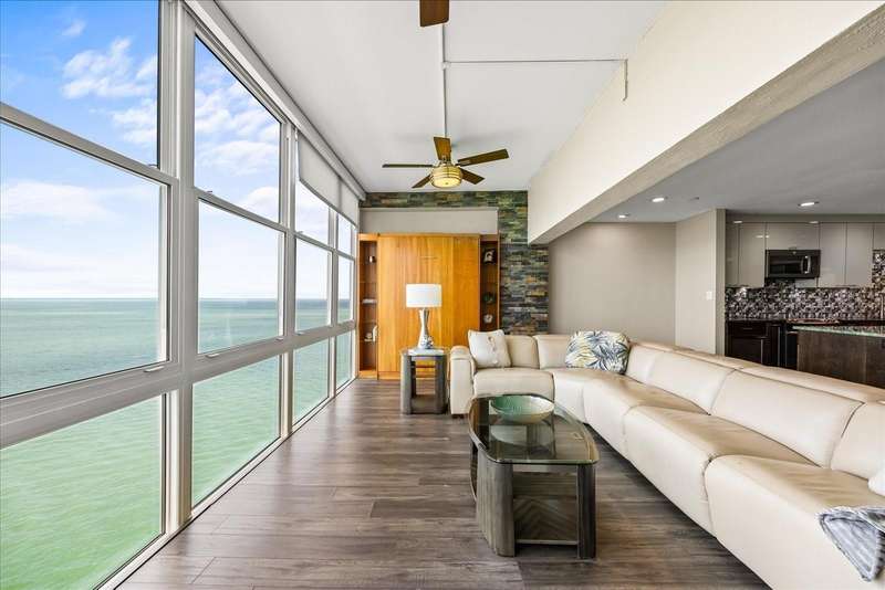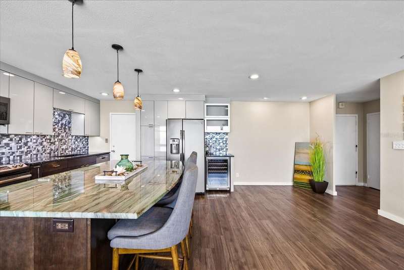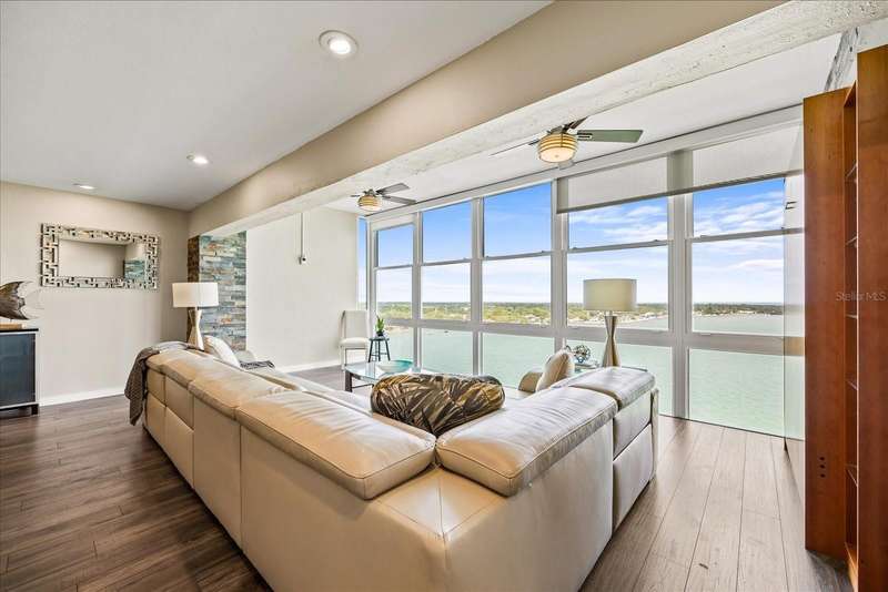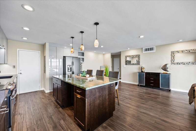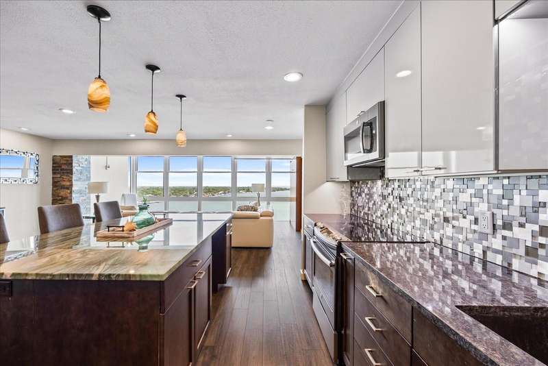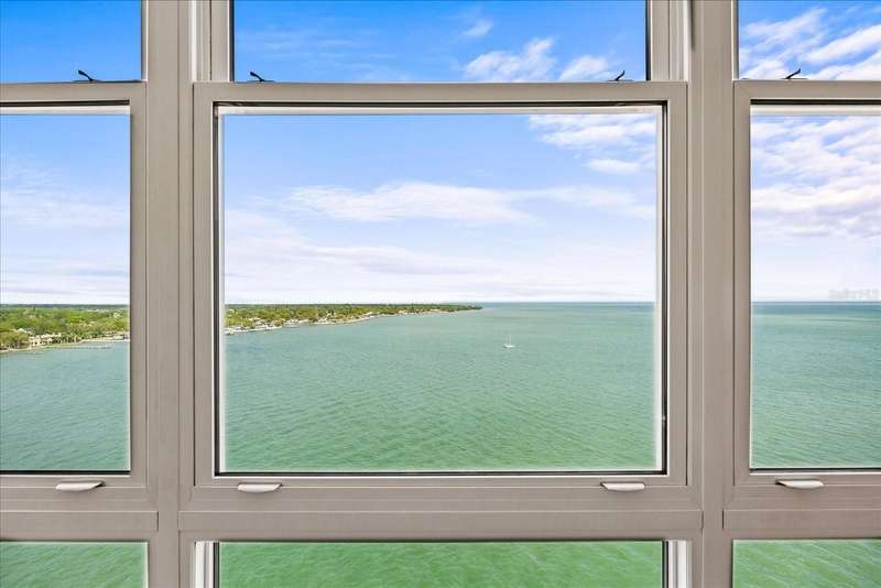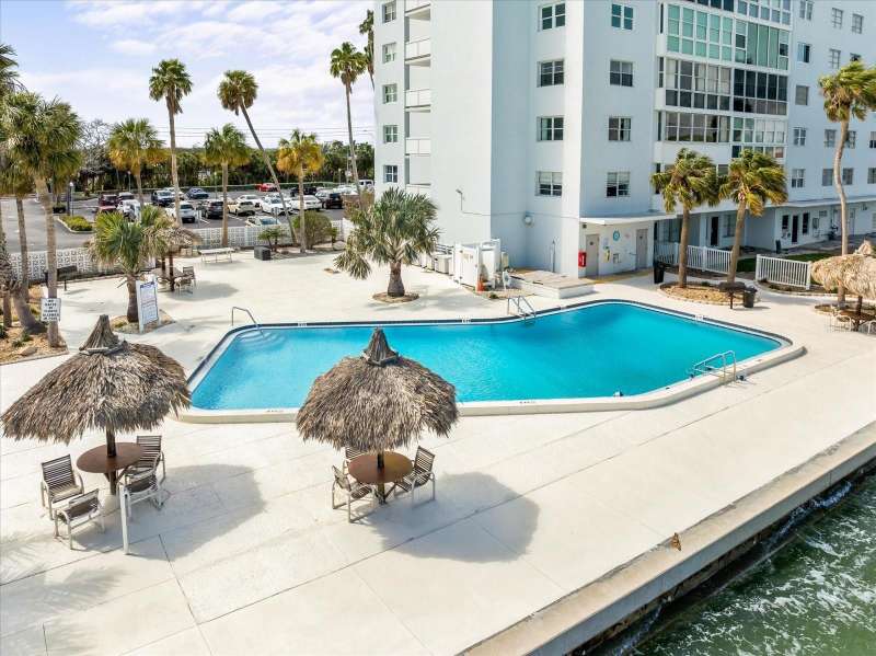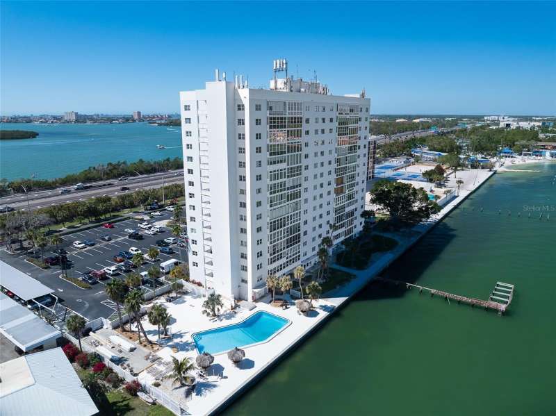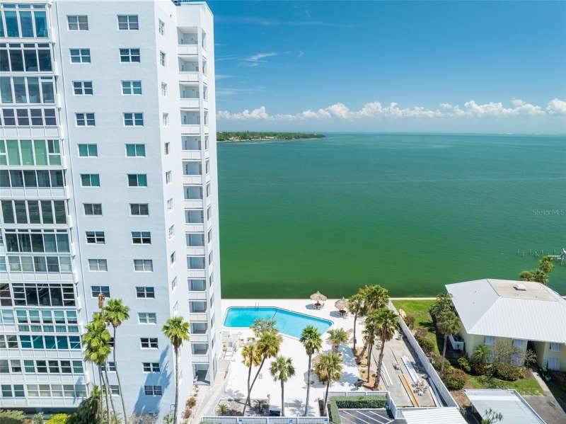 Under contract-accepting backup offers. Penthouse living with magnificent water views under $300,000!!!* From tranquil sunrises to a dazzling sea of stars, this penthouse condo offers an array of stunning Tampa Bay vistas waiting to be discovered. Welcome to an extraordinary retreat, one of the highest residences on Sunshine Skyway Lane, where modern elegance meets unparalleled panoramic views. This tastefully remodeled one-bedroom, one-and-a-half-bath home on the 16th floor boasts floor-to-ceiling windows that showcase 22 feet of remarkable eastward views of Tampa Bay, stretching from the vibrant downtown St. Pete skyline to the iconic Sunshine Skyway Bridge. Natural light pours throughout the home, enhancing the seamless open-concept layout. The kitchen is a delight, featuring ample storage, a sleek wine cooler, and a stunning oversized center island with seating for three. The combination of turquoise and gray hues in the quartzite countertop creates a stunning statement piece that doubles as a practical workspace—ideal for both cooking and entertaining. The spacious master suite is a private waterfront sanctuary, offering wall-to-wall closet space with functional built-in organizers and a practical fold-out desk perfect for remote works, uninterrupted bay views, and a luxurious ensuite bath with an in-unit washer and dryer. A Murphy bed in the living area provides a stylish and comfortable option for guests, while the additional half bath ensures convenience and privacy. With three storage closets inside the unit, every inch of space in this 900 sq. ft. condo has been maximized for effortless living. Additional features include a newer AC system (2022), PGT windows (2016), UV-protected automatic sunshades, LVP flooring, and high-end finishes. Beyond the unit, the building itself is rich in history and unmatched in structural integrity. Originally built by the Army Corps of Engineers, this solid cast concrete and steel residence has withstood the test of time and weather. Residents enjoy a wealth of resort-style amenities, including a waterfront pool, outdoor cooking areas, a fitness center, game rooms, lounges, bicycle storage, and private men’s and women’s locker rooms. The community has been undergoing enhancements since the storms, with a new dock and fishing pier, upgraded common area windows, and refreshed sidewalks set for completion in the coming months! Ideally located just minutes from Fort DeSoto, Maximo Park, marinas, Sunshine Skyway fishing pier, and the world-famous St. Pete Beach. This exceptional penthouse offers quick access to downtown St. Pete in under 10 minutes and the Bradenton-Sarasota area in just 20 minutes. Whether you’re a busy professional or someone who simply appreciates luxury and tranquility at an affordable price, this rare gem provides the perfect balance of urban convenience and serene waterfront living. Don’t miss your chance to own an AFFORDABLE piece of paradise with the most coveted views on Sunshine Skyway Lane.