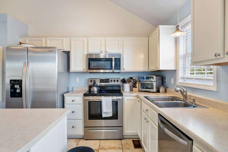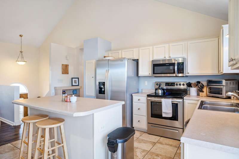 Welcome to the highly desired New River Village, boasting convenient proximity to the NRV mall and a mile to the Huckleberry Trail & Park. This extremely well-maintained split-level home is located on a corner lot and boasts 4 beds, 3 full baths, and attached 2-car garage. Enjoy vaulted ceilings in the open-concept kitchen, dining, & living area with hard surface flooring throughout. A deck with steps down to a fully fenced backyard offers ample entertaining options and views of beautiful sunsets. Additional features and updates include a new roof (2024), water heater (2022), HVAC & thermostat (2020), garbage disposal (2025), and fridge (2025). Front and rear decks refinished in 2025. Airbnb on the lower level has generated over $50,000 in income for current owners (contact listing agent for more info & special offer). House eligible for Verizon 5G home internet. A pre-paid membership with a reputable home services company & workmanship warranty for roof can convey to new owners.