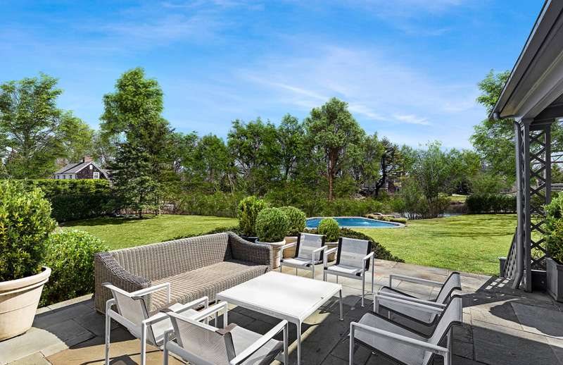 Hidden behind tall hedges and trees, this warm and inviting one-plus acre south of the highway house, opens to a covered patio overlooking lush landscaping and rolling lawns. This private and tranquil setting offers 5 bedrooms and 4.5 baths. A small bedroom, bath, and powder room are on the first floor. The second floor has a primary bedroom suite and a private study terrace. There is also a guest bedroom suite with a sitting area and two additional guest bedrooms that share a bath. The heated gunite pool looks onto the lily pads of Hook Pond. Close to the village of East Hampton and Main Beach. Available from August 22 thru September 5th or August 22nd thru September 30th, 2025 Listing ID:888630