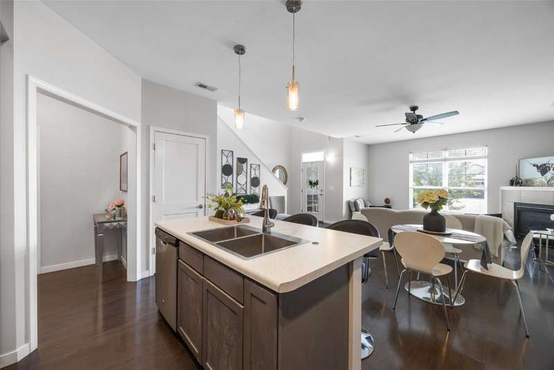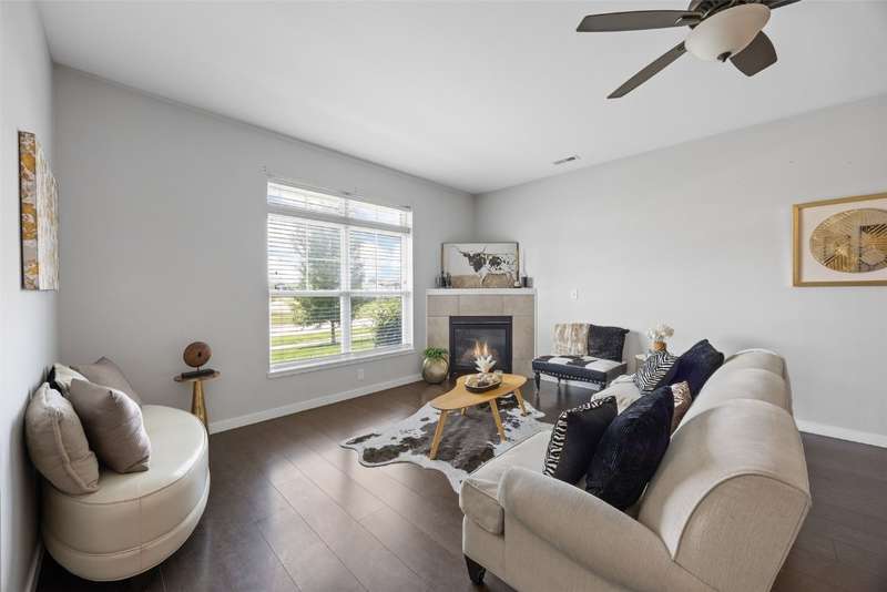 Welcome to this beautiful 3-bedroom, 2.5-bath townhouse-style condo offering comfort, style, and convenience. Step inside the impressive two-story foyer that fills the entry with natural light and sets the tone for the spacious open-concept layout. The heart of the home features a modern kitchen with stainless steel appliances overlooking the dining area and inviting living room with a cozy gas fireplace, perfect for relaxing evenings or entertaining guests. Upstairs, you’ll find a convenient laundry room and a serene primary suite complete with a trey ceiling, walk-in closet, and a private bath with a double vanity. Two additional bedrooms provide plenty of space for family, guests, or a home office. Come experience the perfect blend of warmth and functionality in this lovely condo—ready for you to move in and make it your own! $150 HOA start up fee will be Buyer responsibility.
