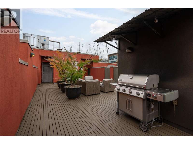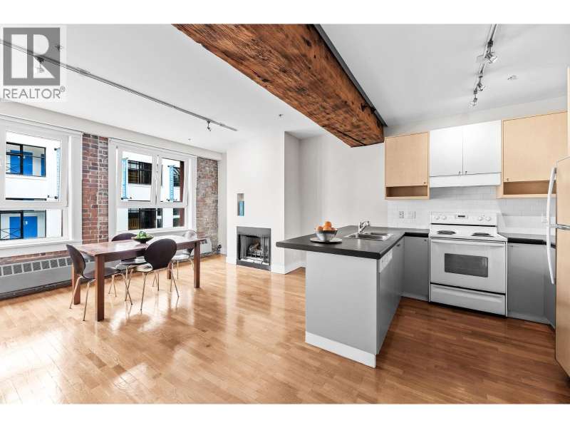 Wow! Incredibly rare opportunity to own a New York-style loft at The Hooper Building in vibrant Yaletown with the perfect common ROOFTOP TERRACE with stunning city & water VIEWS. This BRIGHT & SPACIOUS loft offers OVERHEIGHT CEILINGS, towering old growth fir beams & exposed 110 year old brick throughout. Efficient plan with open CHEF'S KITCHEN, breakfast bar, modern cabinetry & integrated appliances. GAS FIREPLACE, large living & dining, gorgeous hardwood flooring & over-sized windows. SPA-LIKE bath with deep soaker tub. Pristine, stylish building, originally built in 1910 and converted to lofts in 1999. Maintenance fee includes HIGH SPEED INTERNET! A quiet part of downtown but steps to The Seawall, Skytrain, shopping & Yaletown's best cafes, bars & restaurants. (id:58403)