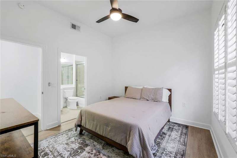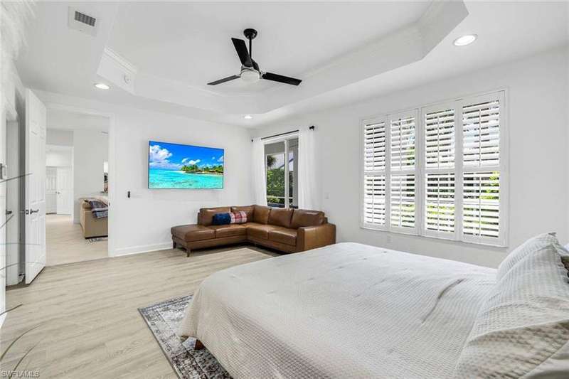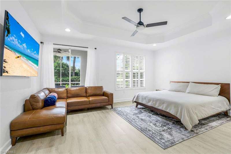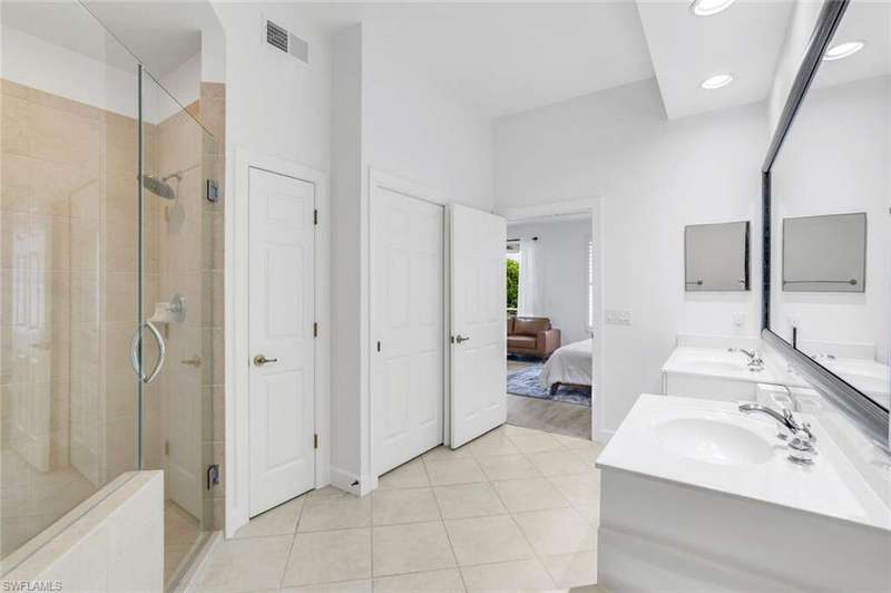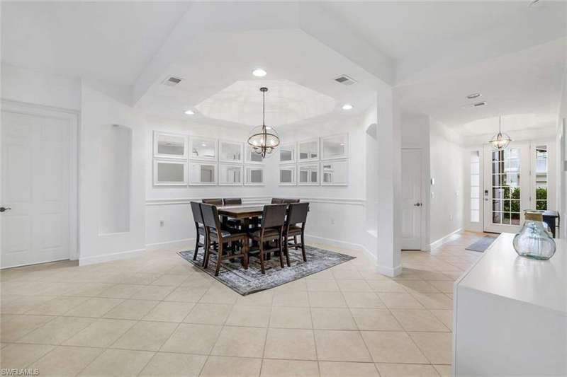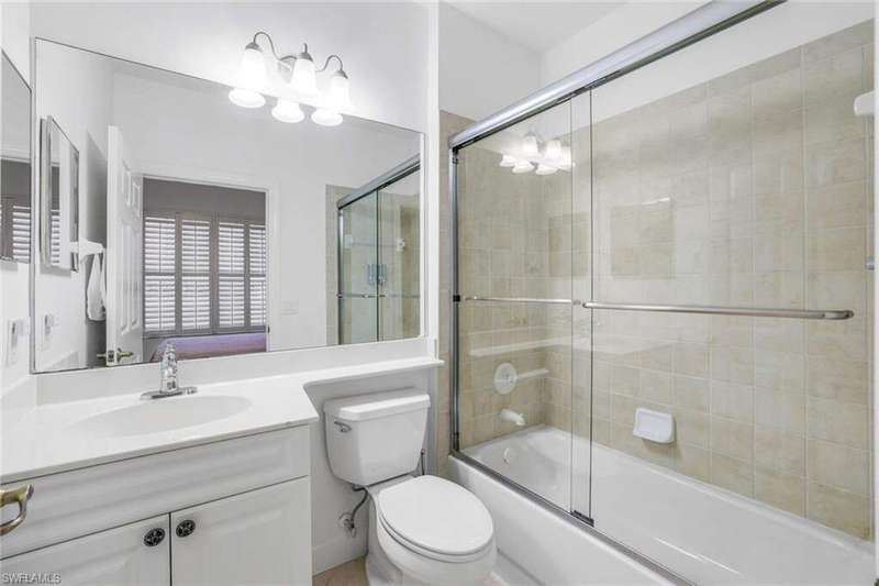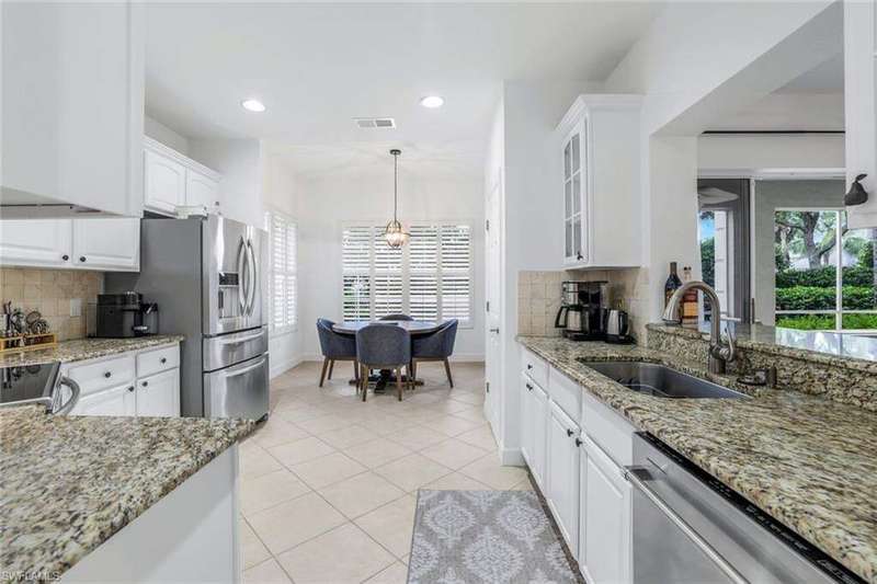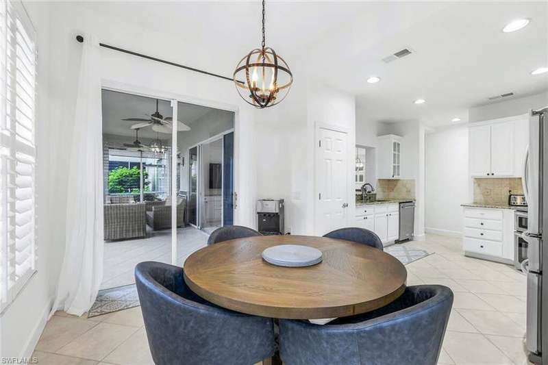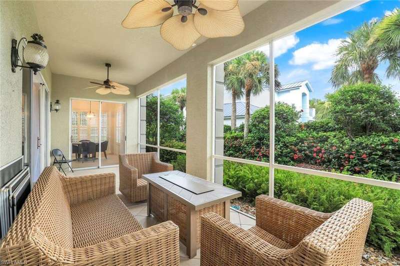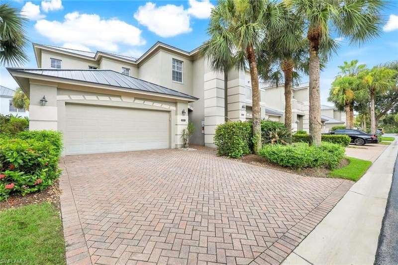 Step into refined coastal living in this beautiful first-floor coach home in upscale Osprey Pointe of Pelican Marsh. Offering over 2,060 sq. ft. of light-filled 3 bedrooms and 2.5-bath residence which lives like a single-family home with voluminous ceilings, 8 ft doors and attached 2 car garage. Bright and sunny southern exposure boast open floor plan with plantation shutters, and 8 ft sliders leading to the expansive screened lanai for year-round enjoyment. Kitchen boast a sunny eat in breakfast area with access to the lanai. The spacious primary suite includes oversized walk-in closet, and spacious bath with soaking tub and separate shower. The exterior is currently being freshly painted white which is complimented by the New gray metal roof/ 2025. Pelican Marsh is ideally located to the best beaches, plethora of shopping and dining at Mercato. Amenities include an onsite community center complete with open air restaurant, fitness center with a variety of classes, pickleball, tennis, onsite Pro, onsite Pro Shop, bocce courts and more! Private Pelican Marsh Golf Club also offers optional social memberships. The Audubon Certified 18-hole championship golf course was designed by world-renowned architect Robert von Hagge, and reflects his appreciation for natural setting with expertly designed practice facility and Learning Center featuring on-site PGA Golf Professionals.