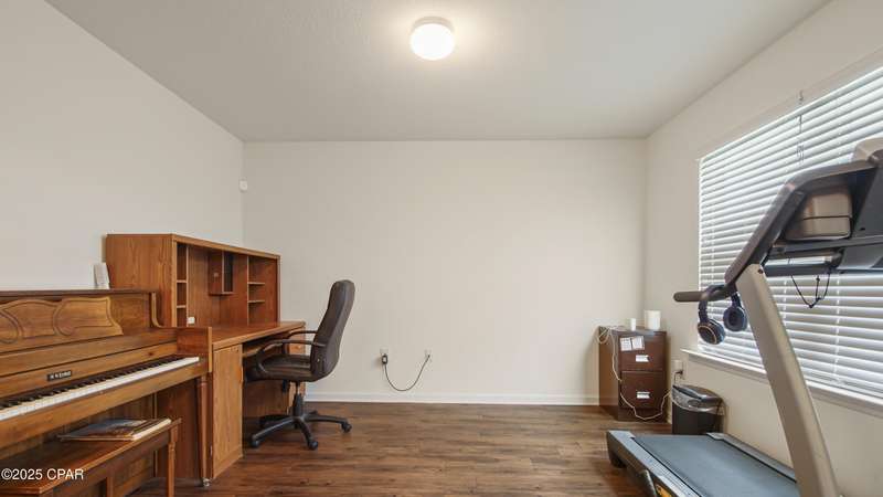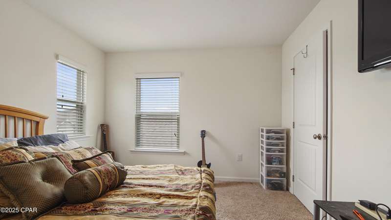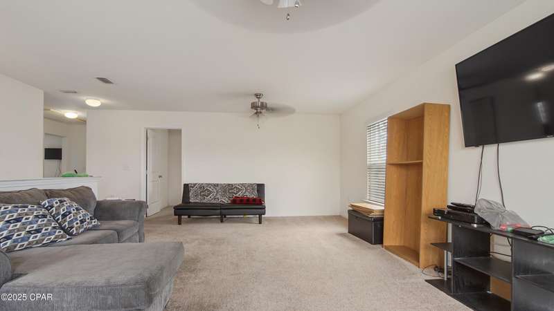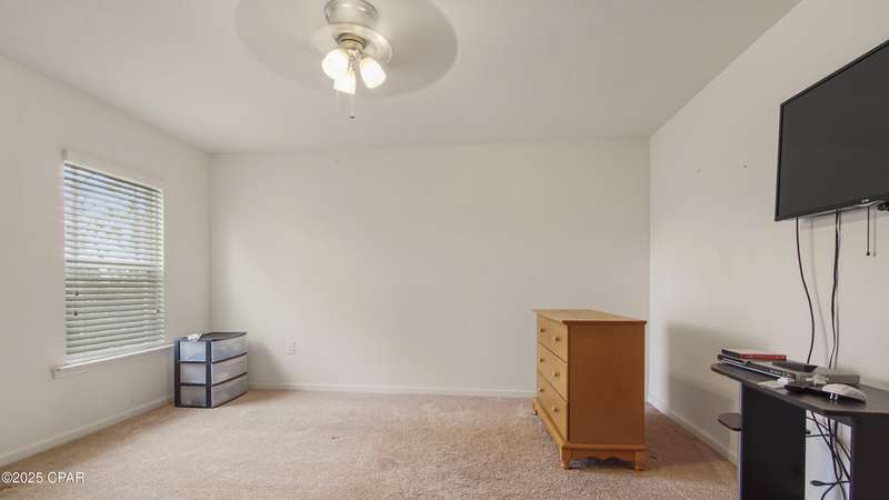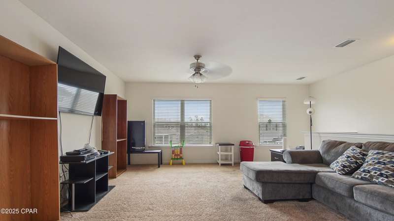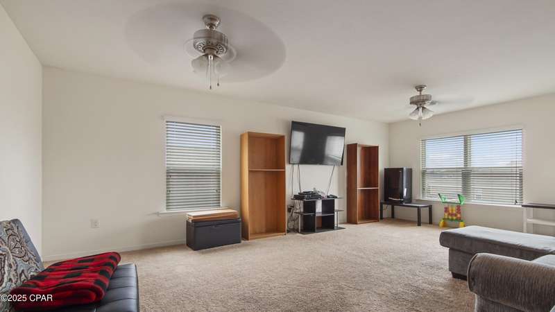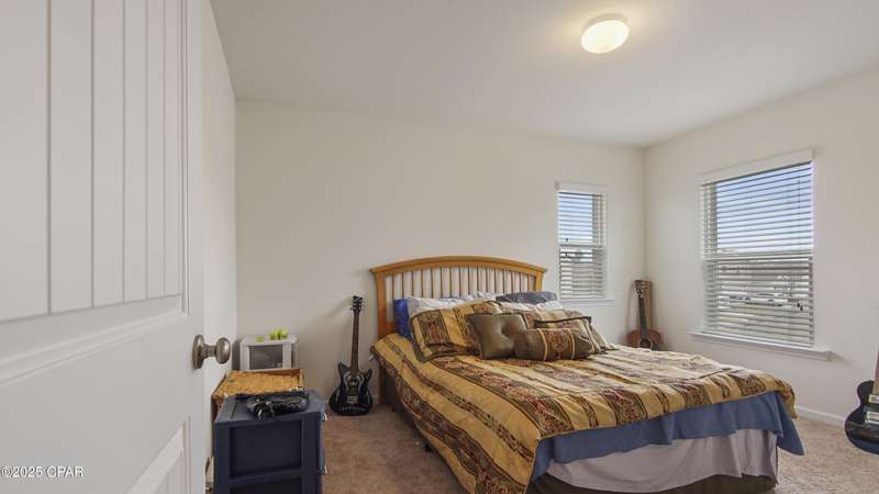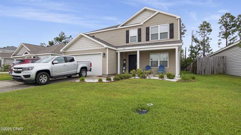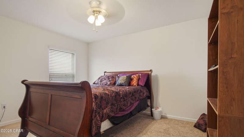 This home boasts the largest floor plan in Barrett's Park at 2744 Sq Ft. Barret's Park is only 10 miles north of the old Panama City Mall and 17 mile drive from Tyndall AFB. The home has 5 bedrooms with your master on the bottom floor and the additional 4 bedrooms on 2nd floor and features a 460 St Ft bonus/play area. The lot backs up to a pond that features bass and brim and the neighborhood is on a non outlet street.