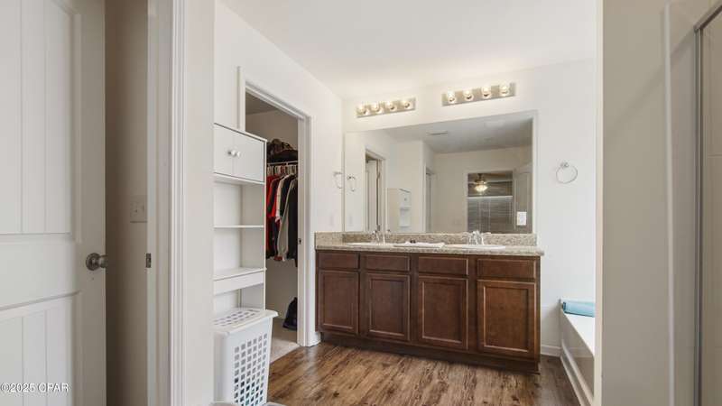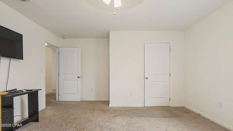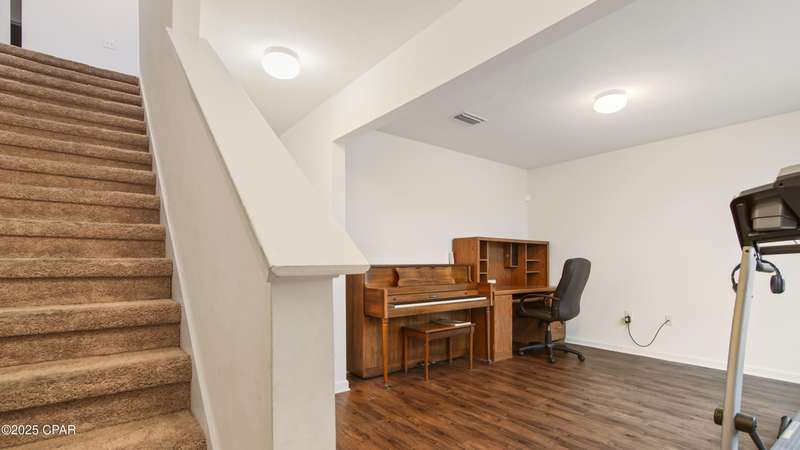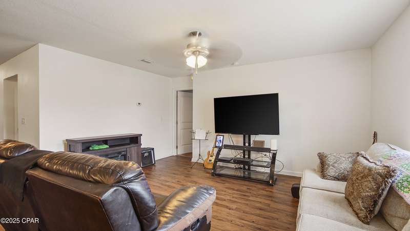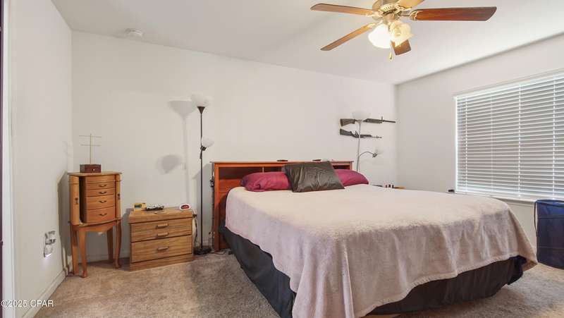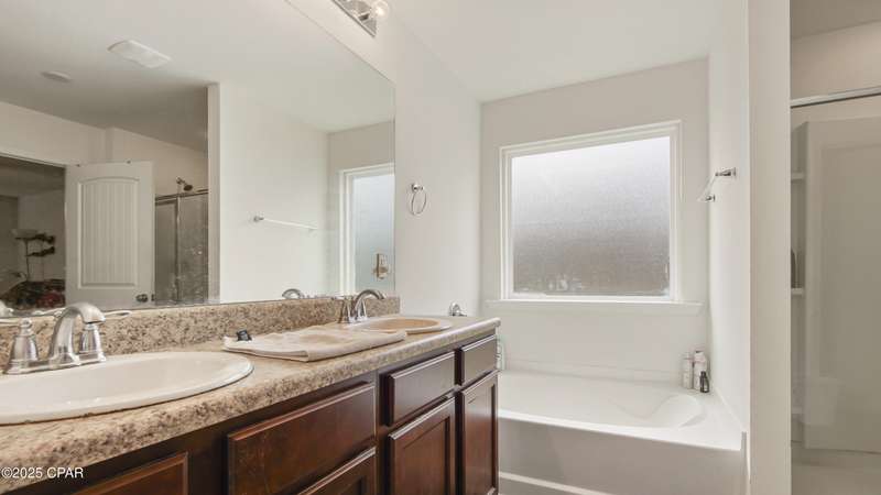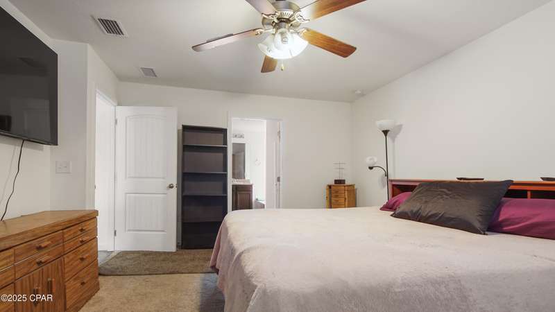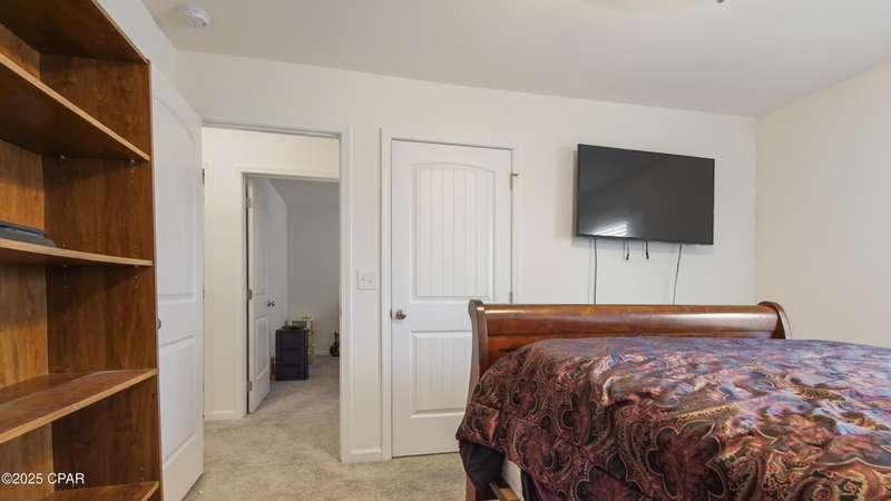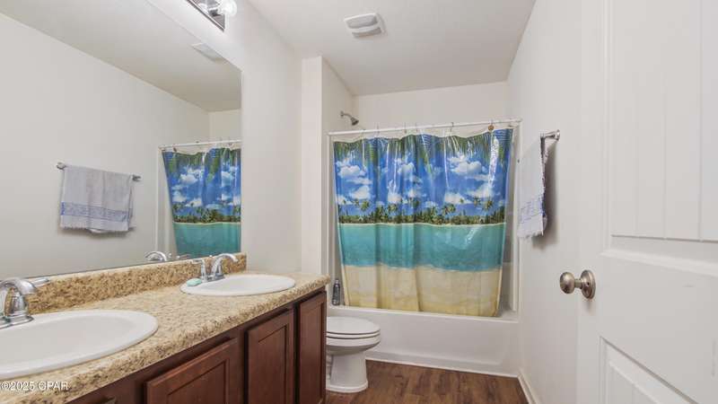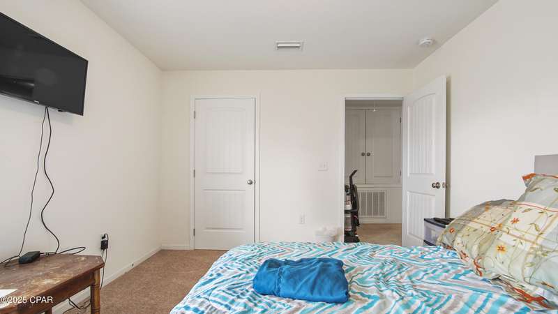 This home boasts the largest floor plan in Barrett's Park at 2744 Sq Ft. Barret's Park is only 10 miles north of the old Panama City Mall and 17 mile drive from Tyndall AFB. The home has 5 bedrooms with your master on the bottom floor and the additional 4 bedrooms on 2nd floor and features a 460 St Ft bonus/play area. The lot backs up to a pond that features bass and brim and the neighborhood is on a non outlet street.