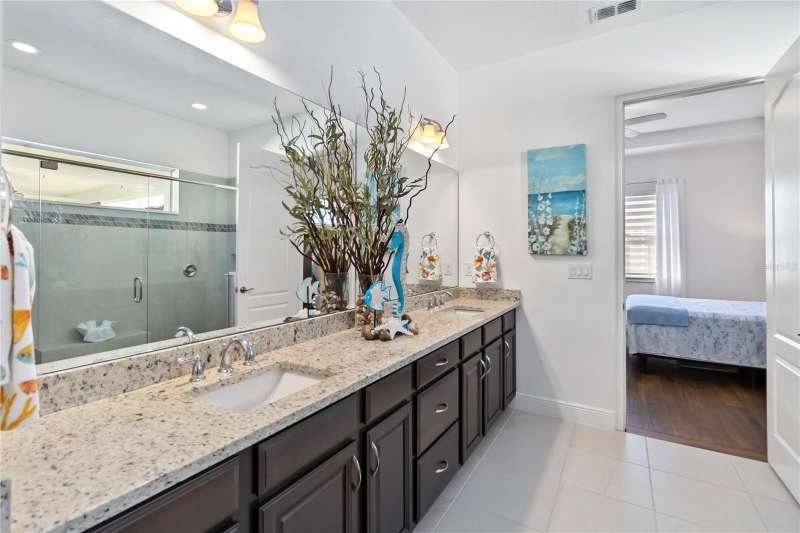 Gorgeous 3 Bedroom 2.5 Bathroom with Den/Office Cocoa floor plan located in the well sought-after active Del Webb Twin Lakes 55+ community. Seller says bring your offer! Seller also willing to leave some of the furniture. Foyer features glass door insert at front door, Custom tray ceiling and light. Whole house is professionally painted, Beautiful ceramic tile flooring throughout, just professionally cleaned, Open and spacious Kitchen features Gourmet kitchen package, upgraded wood cabinets with crown molding, custom backsplash, custom pull out drawers, large, curved granite island can seat 6. Custom hood fan, gas cooktop, upgraded microwave and oven combination, walk-in pantry. Living room ceiling fan and light. Laundry room has lots of cabinets and a walk-in pantry. Security system. Sliding glass doors with blinds lead to scenic screened Lanai, relax and enjoy the breeze with your morning coffee. Master bedroom walk-in closet. Master bedroom bath boasts a large walk-in tile shower with frameless glass doors that looks brand new, double rain shower heads and custom with built-in tile bench, and separate private water closet. Granite vanity and dual sinks. Office/Den area. Some furniture may be included. Amenities include a Resort style pool and Lap Pool, and 3rd pool on the carriage house side, 20,000 square foot Gorgeous Clubhouse, State of the art Fitness Center, Flex room, Tennis Courts, Putting Green, Walking Trails, Pickle Ball Court, Fishing, and Pontoon Boats and Jon boat to use on Live Oak Lake! The community has many active and socializing activities to keep you VERY busy!! All of this in a GREAT gated community located in Central Florida close to Lake Nona Medical City, Orlando, Orlando International Airport, Theme Parks, and Brevard Beaches! Do not delay making your appointment to view this home today!!