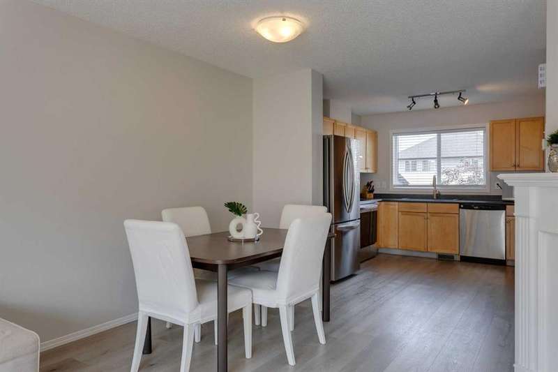 Welcome to this charming townhome nestled in the coveted Mosaics of McKenzie Towne. From the moment you step inside, you’ll love the new vinyl plank flooring, neutral tones, and an abundance of natural light beaming in through the windows. The thoughtfully designed main level has a modern open concept floorplan that seamlessly flows from the living room, to the dining area and on to the kitchen creating an inviting atmosphere that’s perfect for both relaxation and entertaining. The kitchen features newer stainless steel appliances, natural maple shaker cabinetry, new silgranit sink and faucet (ideally overlooking the backyard) and a separate pantry. Upstairs you’ll find 2 large bedrooms, on opposite ends of the hallway, each with their own walk in closets, and conveniently separated by a 4 pc bathroom offering plenty of counter space and large linen closet (or extra storage). The 2nd floor is rounded out by an additional “flex” area, perfect for a home office, reading area or play room. The lower level features a large utility room and laundry area as well as access to your attached garage. This is no ordinary single garage….it may have a single door, but the inside measures larger than some double garages…allowing for lots of extra storage (bikes / sports equipment), a work bench and a vehicle / motorbike or both! What sets this unit apart from most other townhouses is the private fenced backyard ….the perfect place to unwind after a long day! And if that isn’t enough….this home is in an ideal location within walking distance to schools, parks and playgrounds and a wide array of dining and shopping options, while also providing easy access to major roadways making it a breeze to get around. This townhouse offers a great opportunity to live in a thriving community, with everything you need at your fingertips. Be sure to book your showing today!